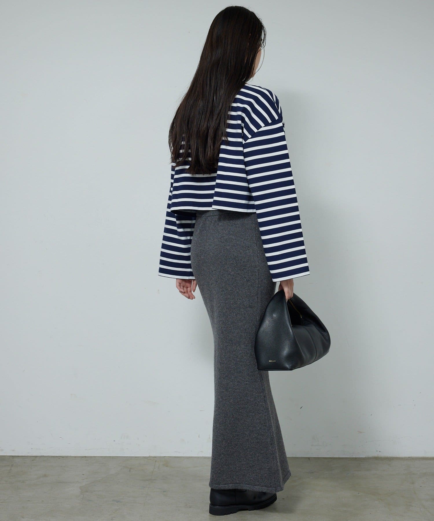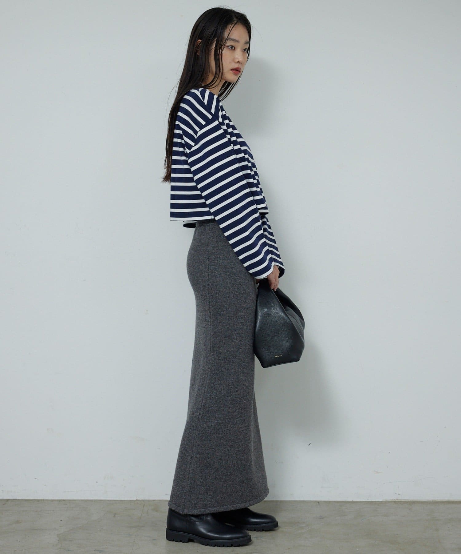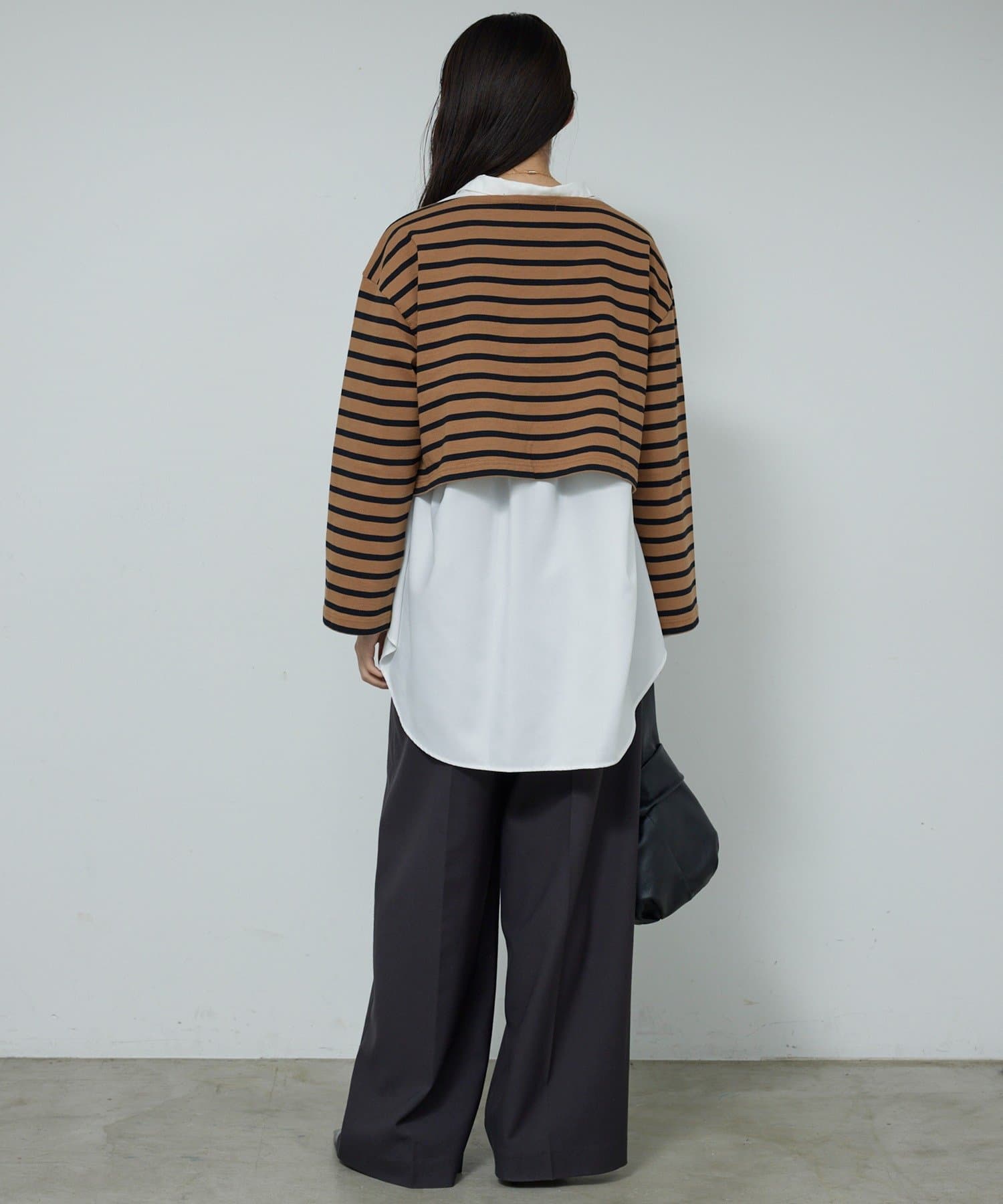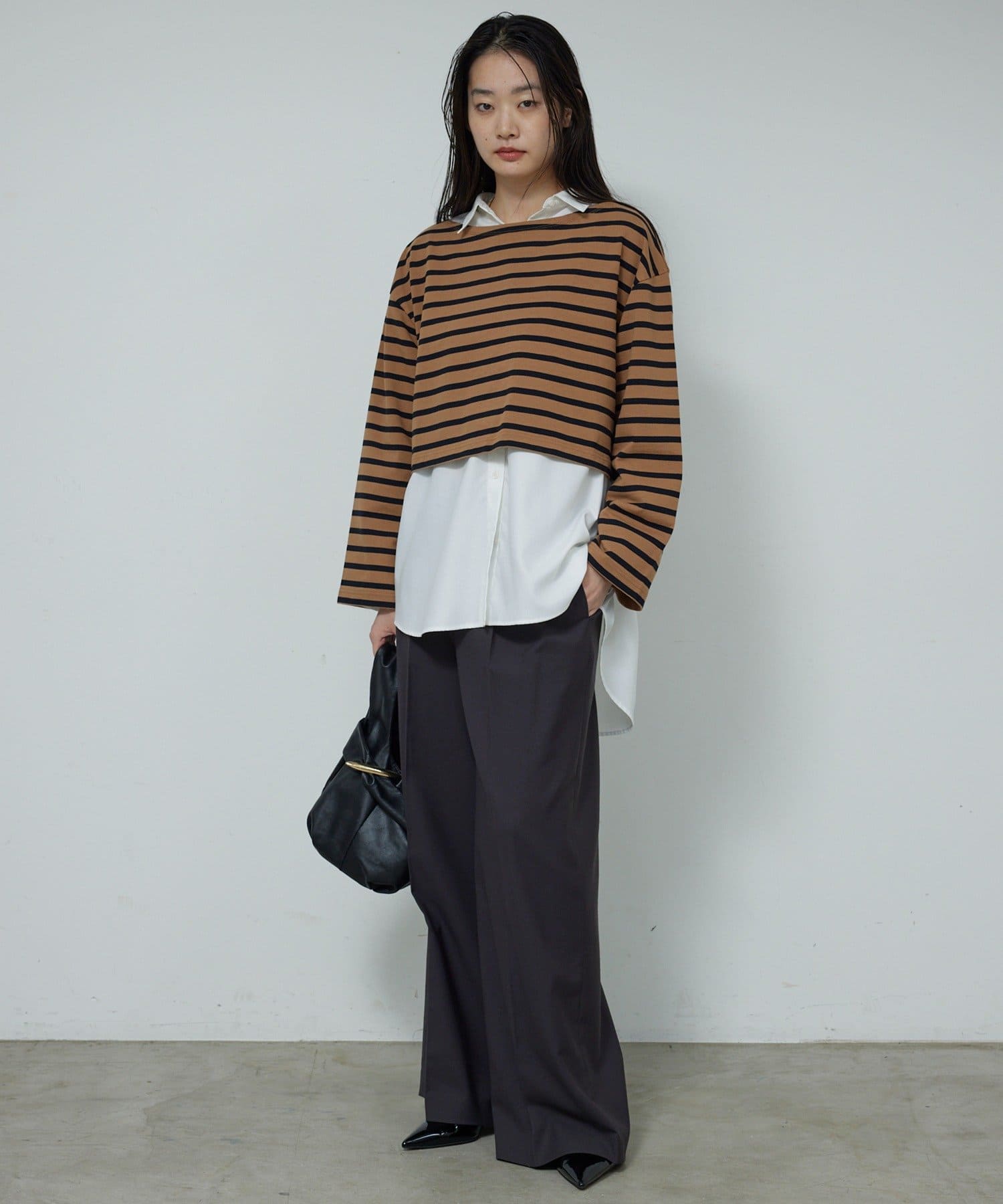 ●1枚でもはもちろん、程よい短丈を生かしたレイヤードスタイルもおすすめ。