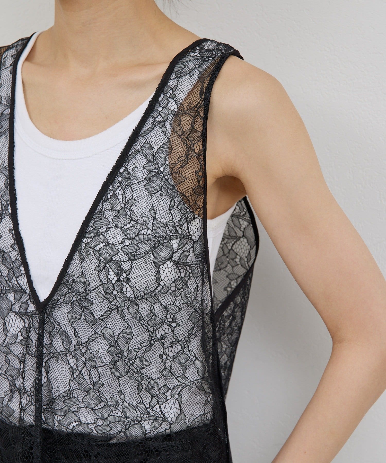 ●繊細な印象のレースはいつものコーデを女性らしく新鮮にアップデート。