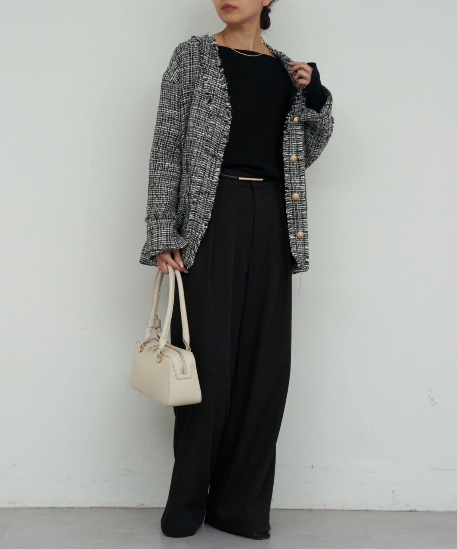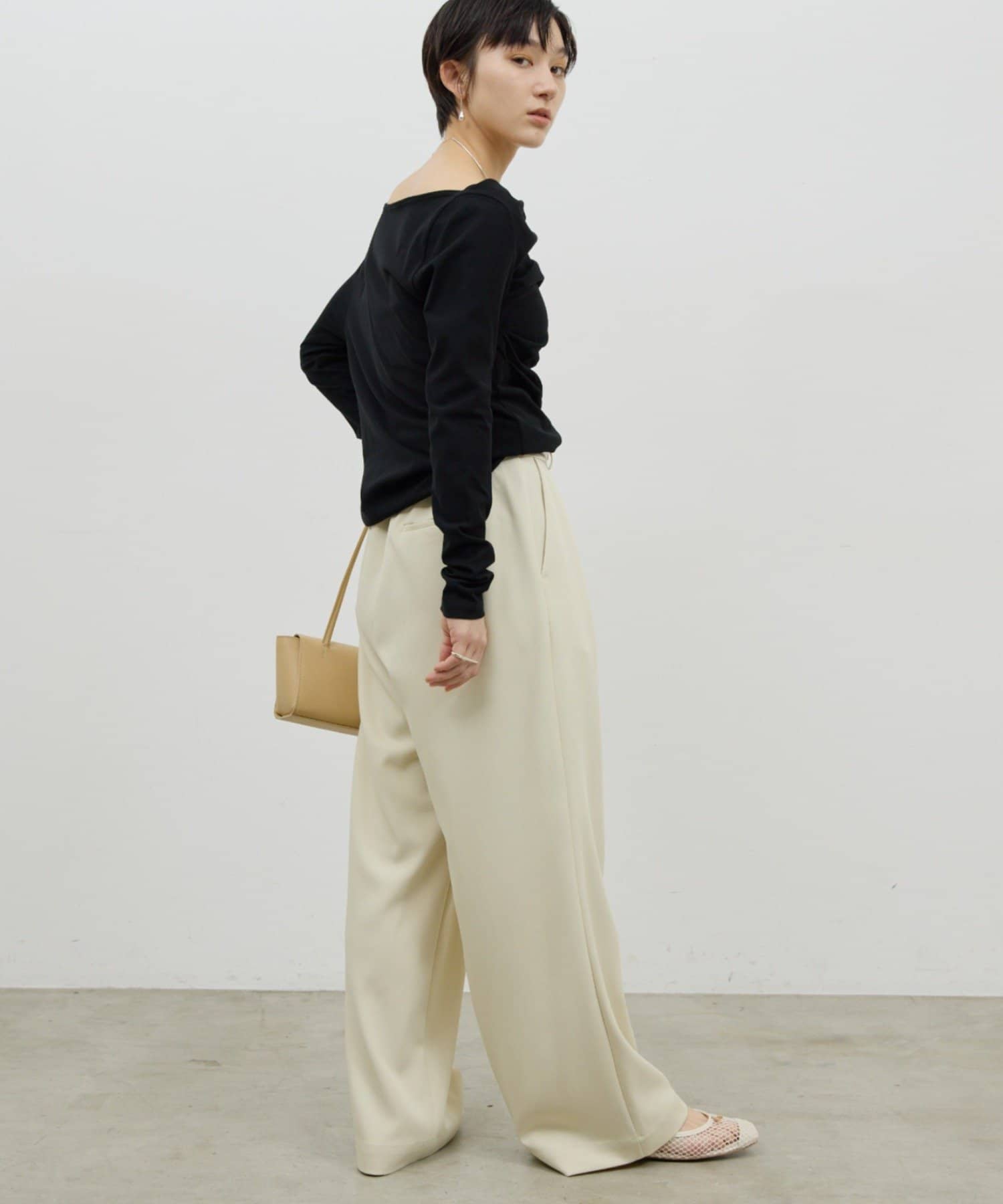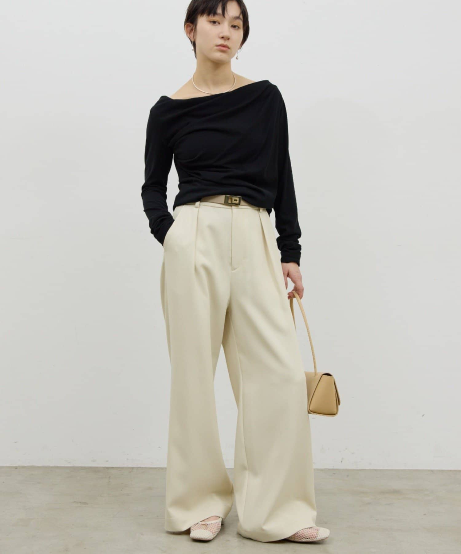 ●ゆとりのあるシルエットにタックを効かせ、リラックス感と美しいラインを両立。