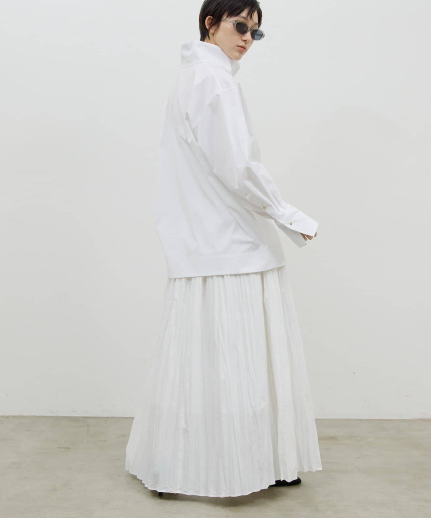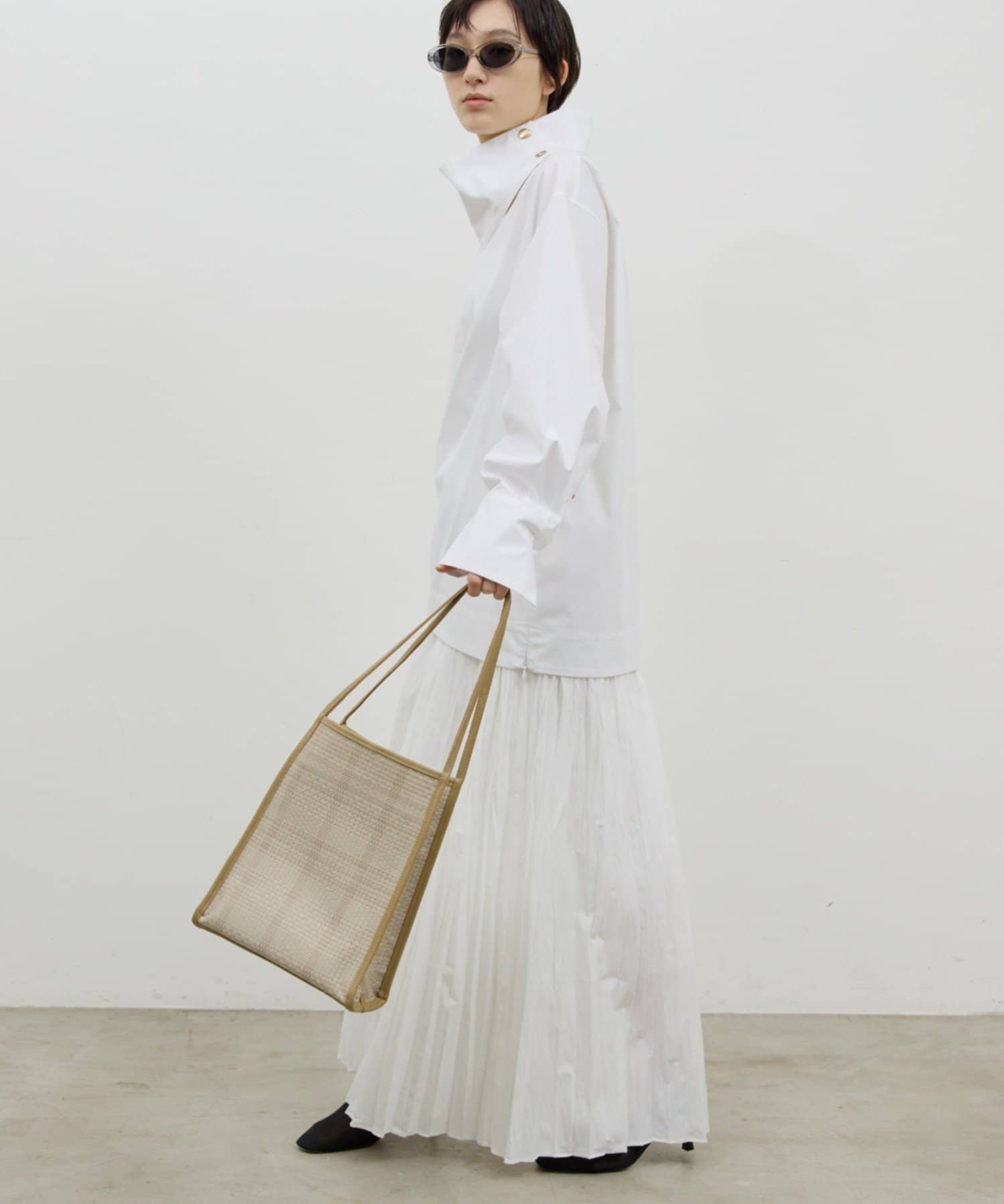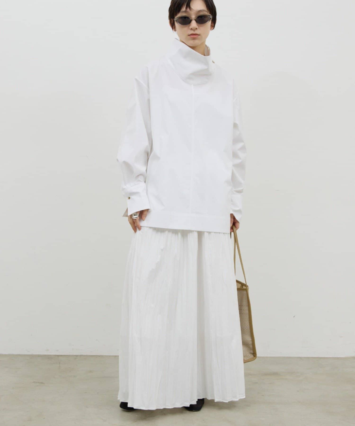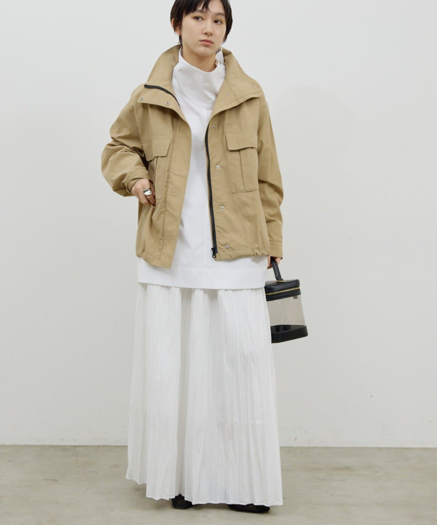 ●シャリ感のある生地は、素材合わせを選ばずロングシーズン活躍。