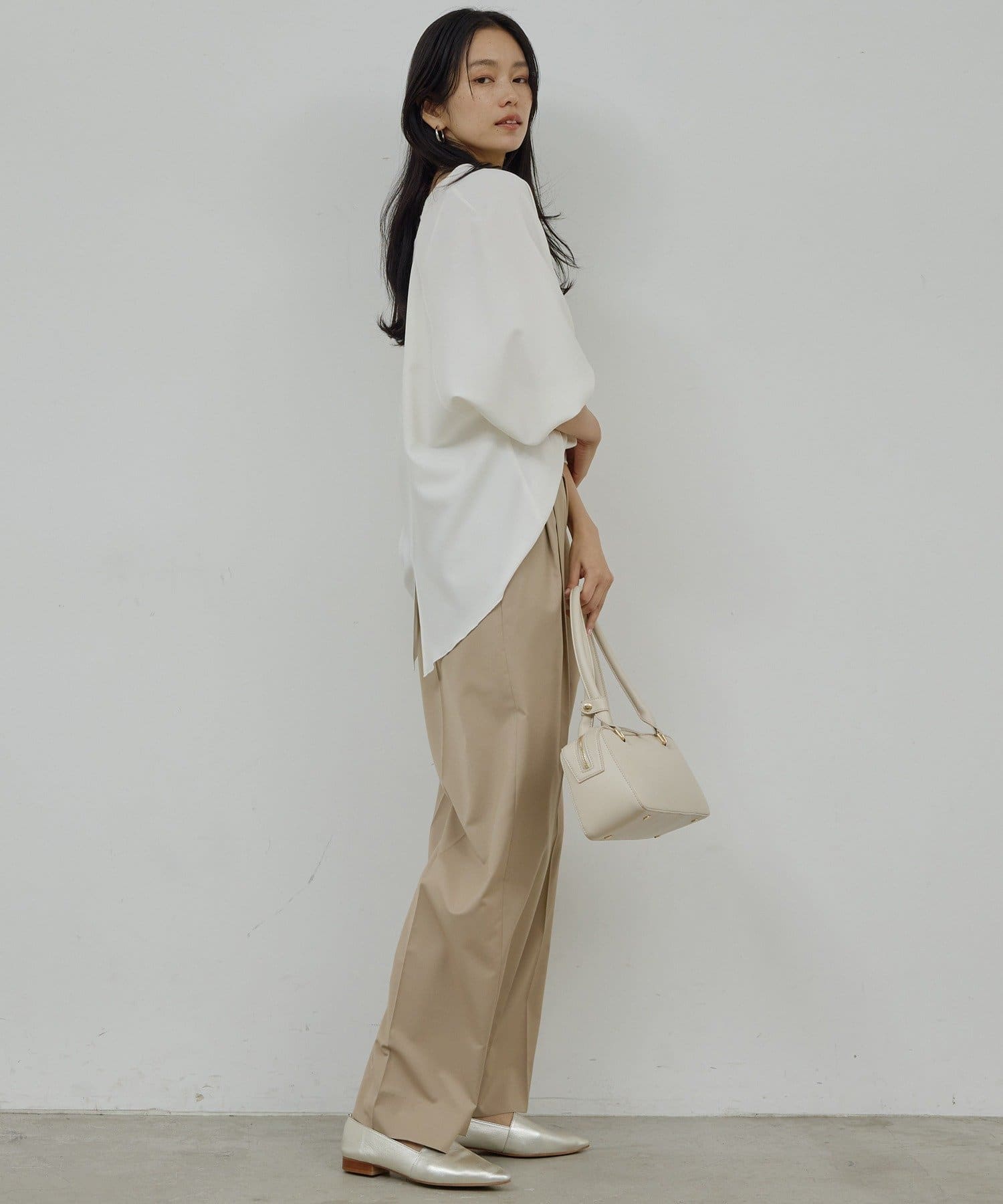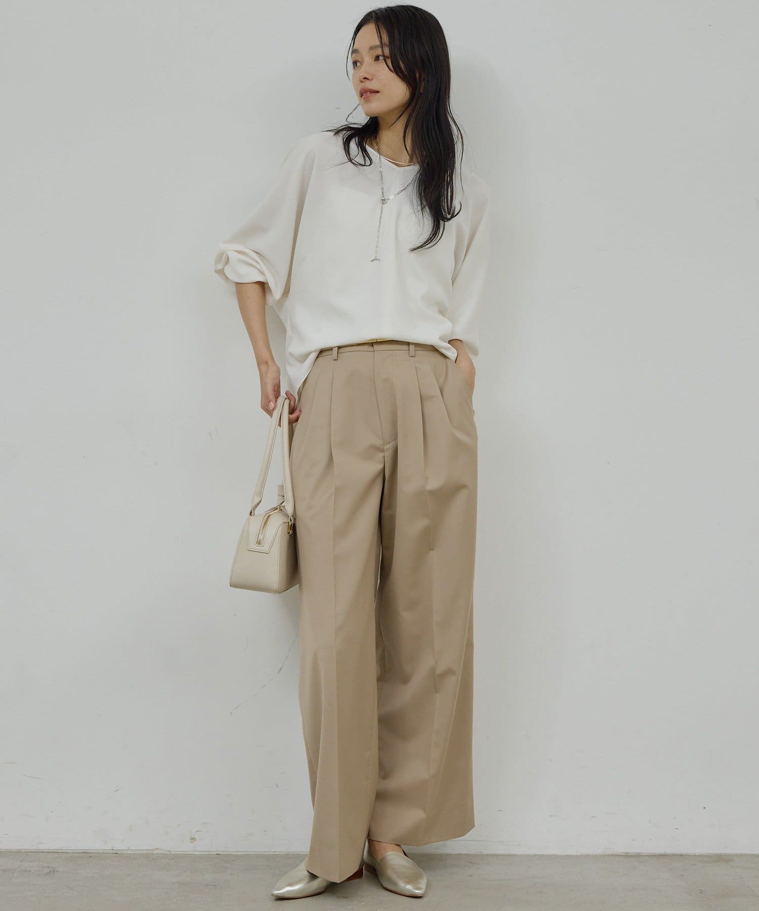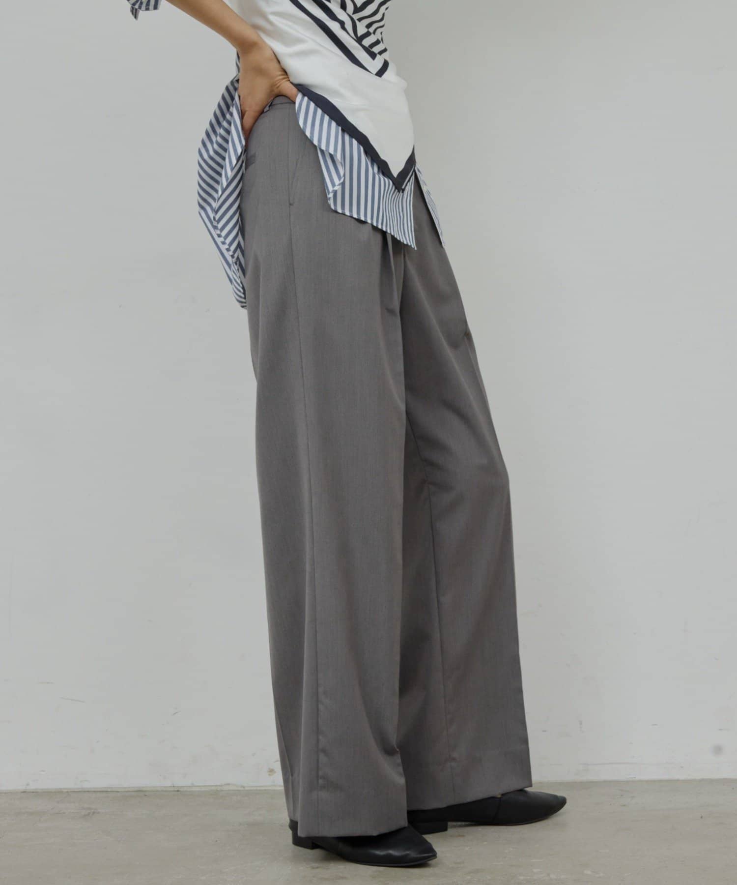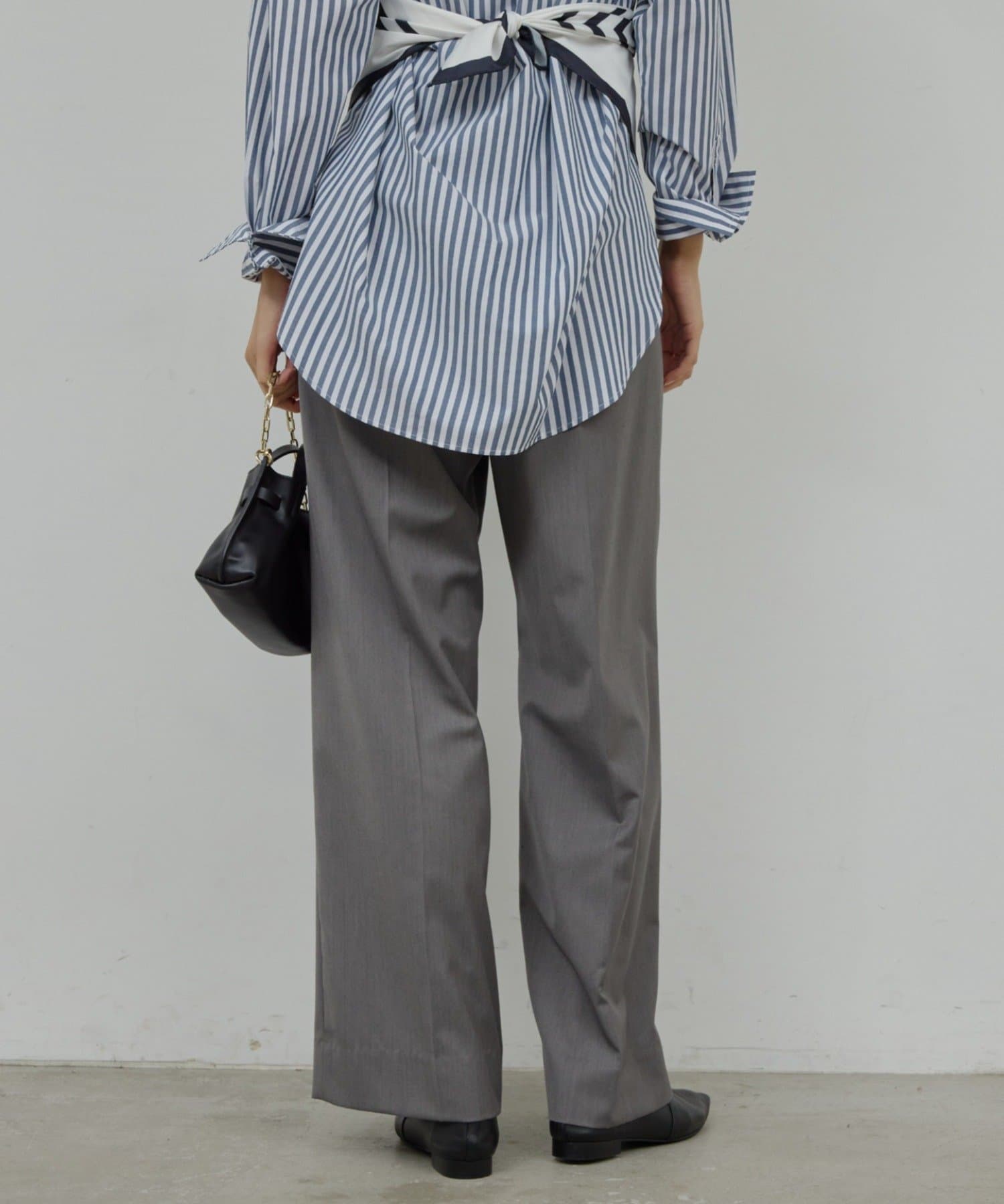 ●フロントタックが縦のラインを際立たせ、すらりとした印象に導くストレートパンツ。