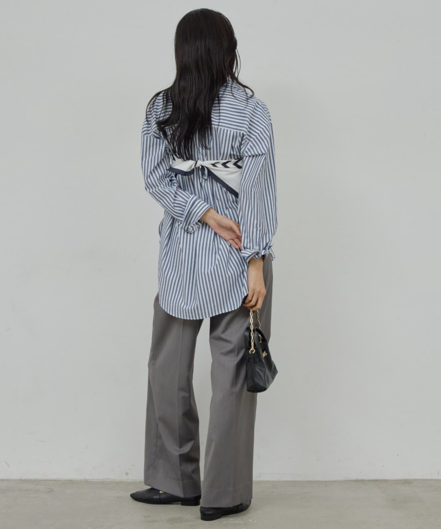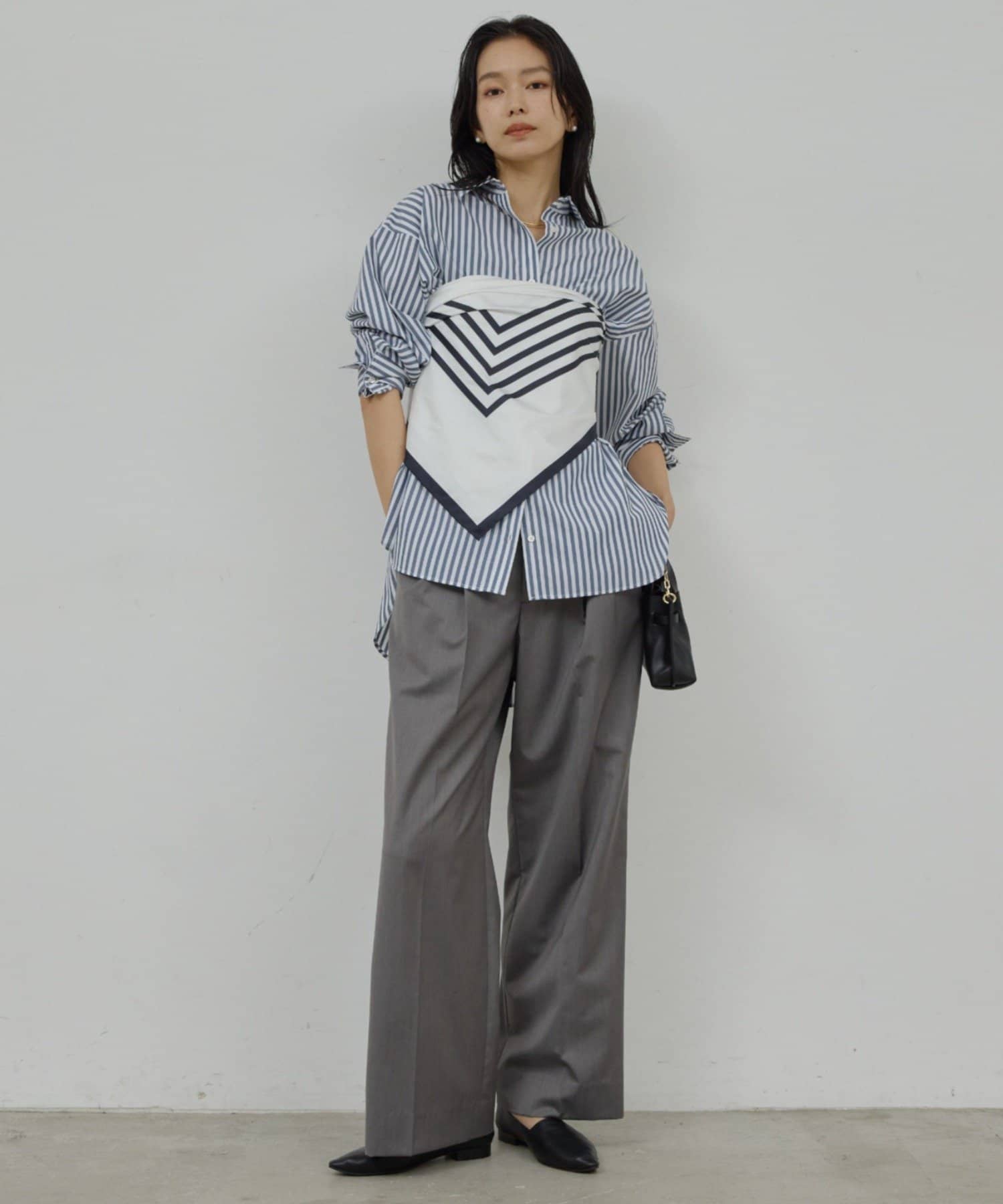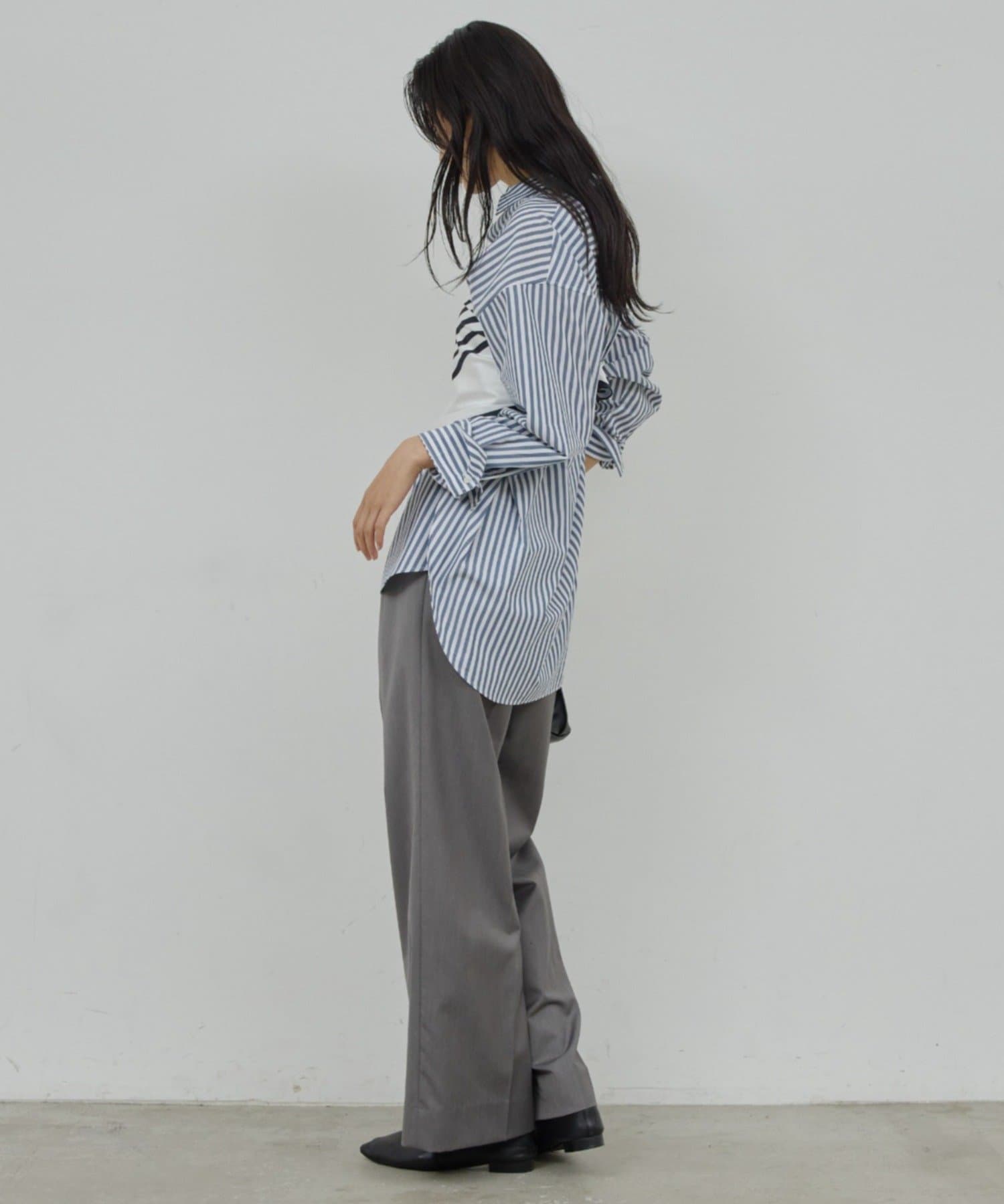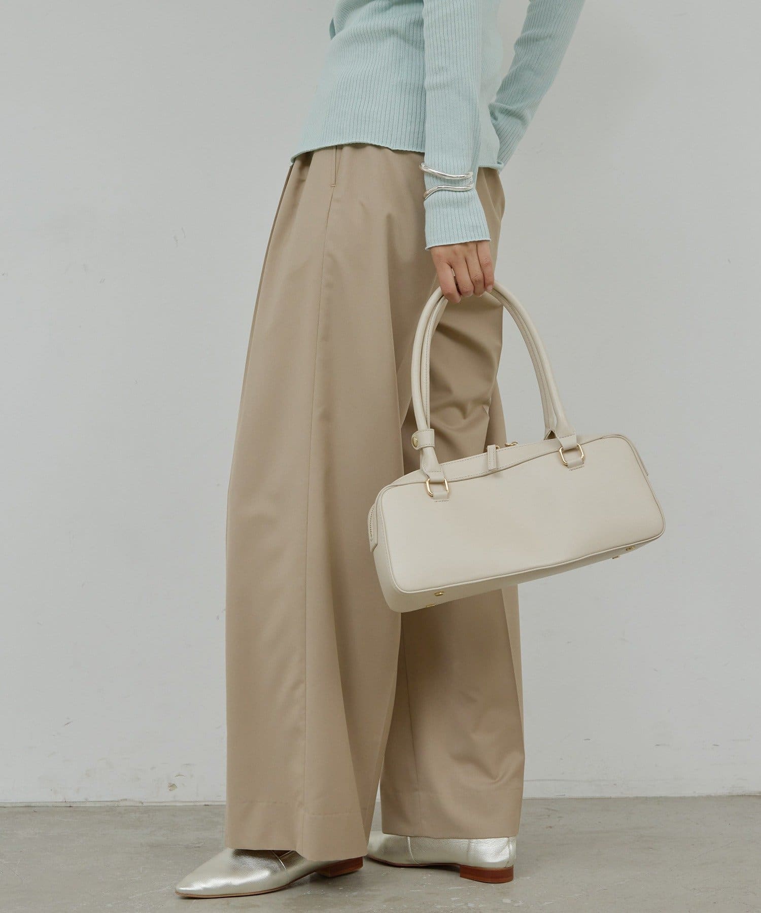 ●フロントタックが縦のラインを際立たせ、すらりとした印象に導くストレートパンツ。