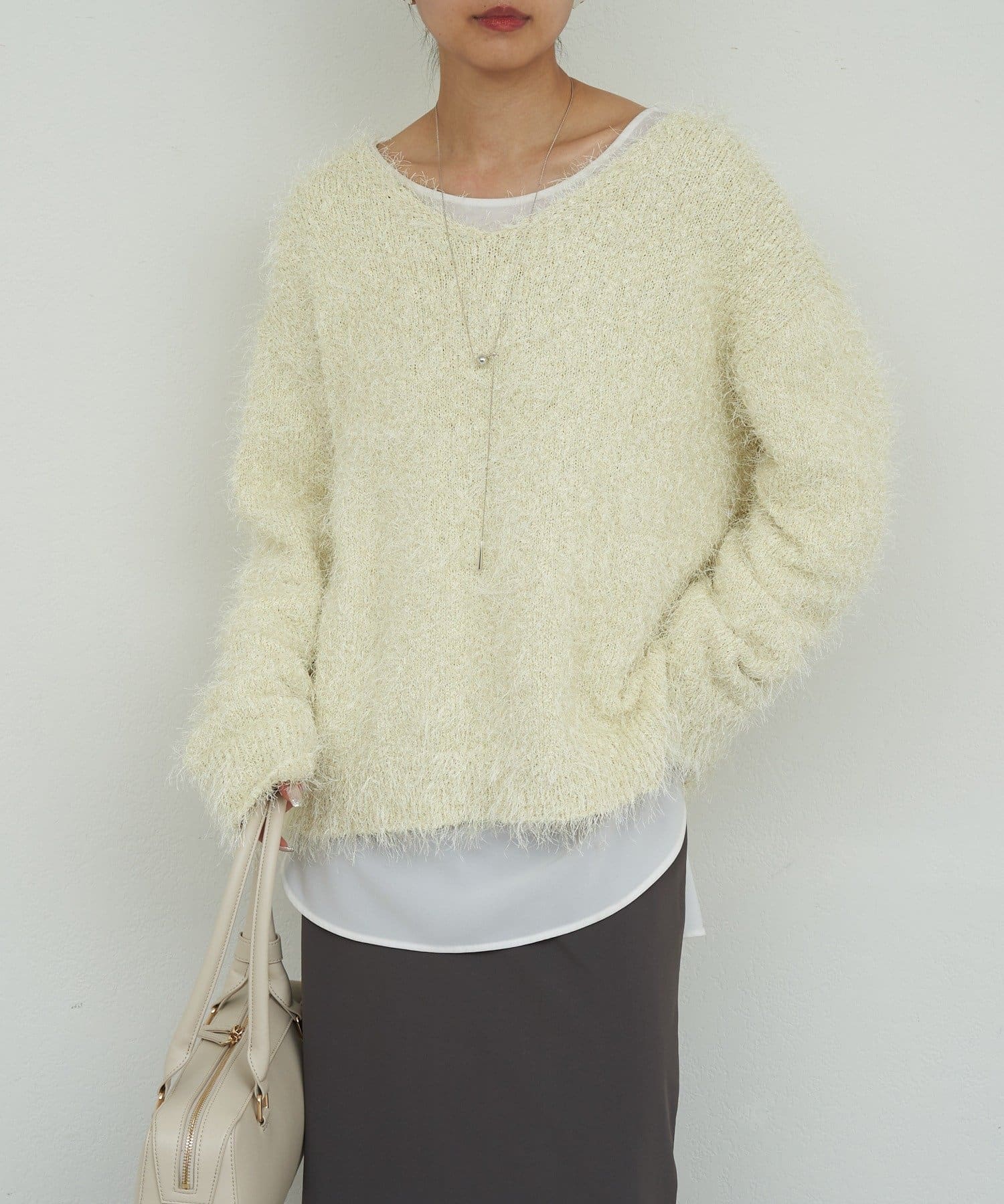 【11/19(水)10:30~予約開始】【品良く着映える】フェザーヤーンニットプルオーバー