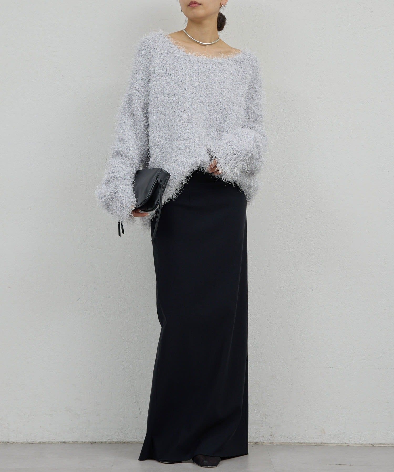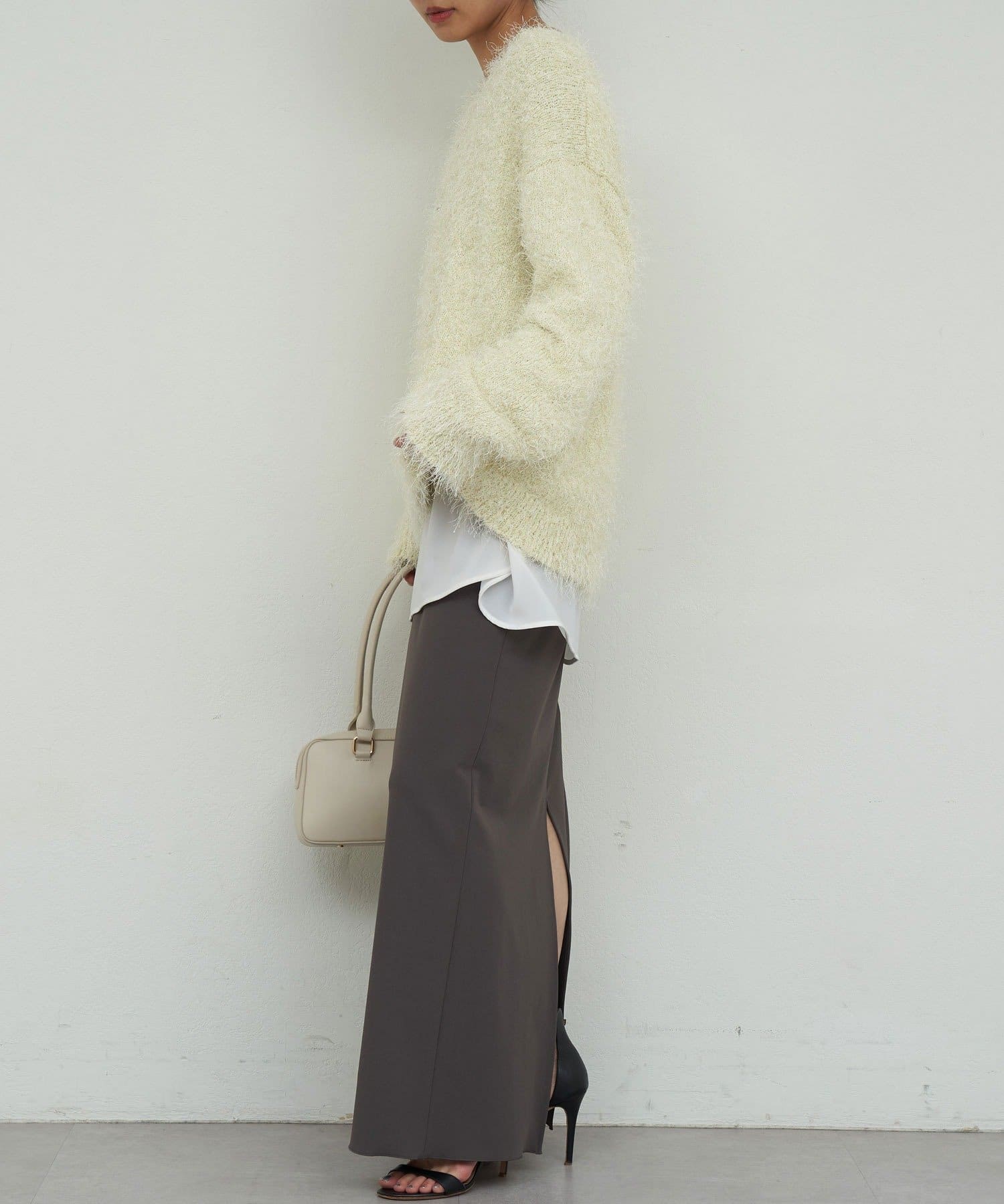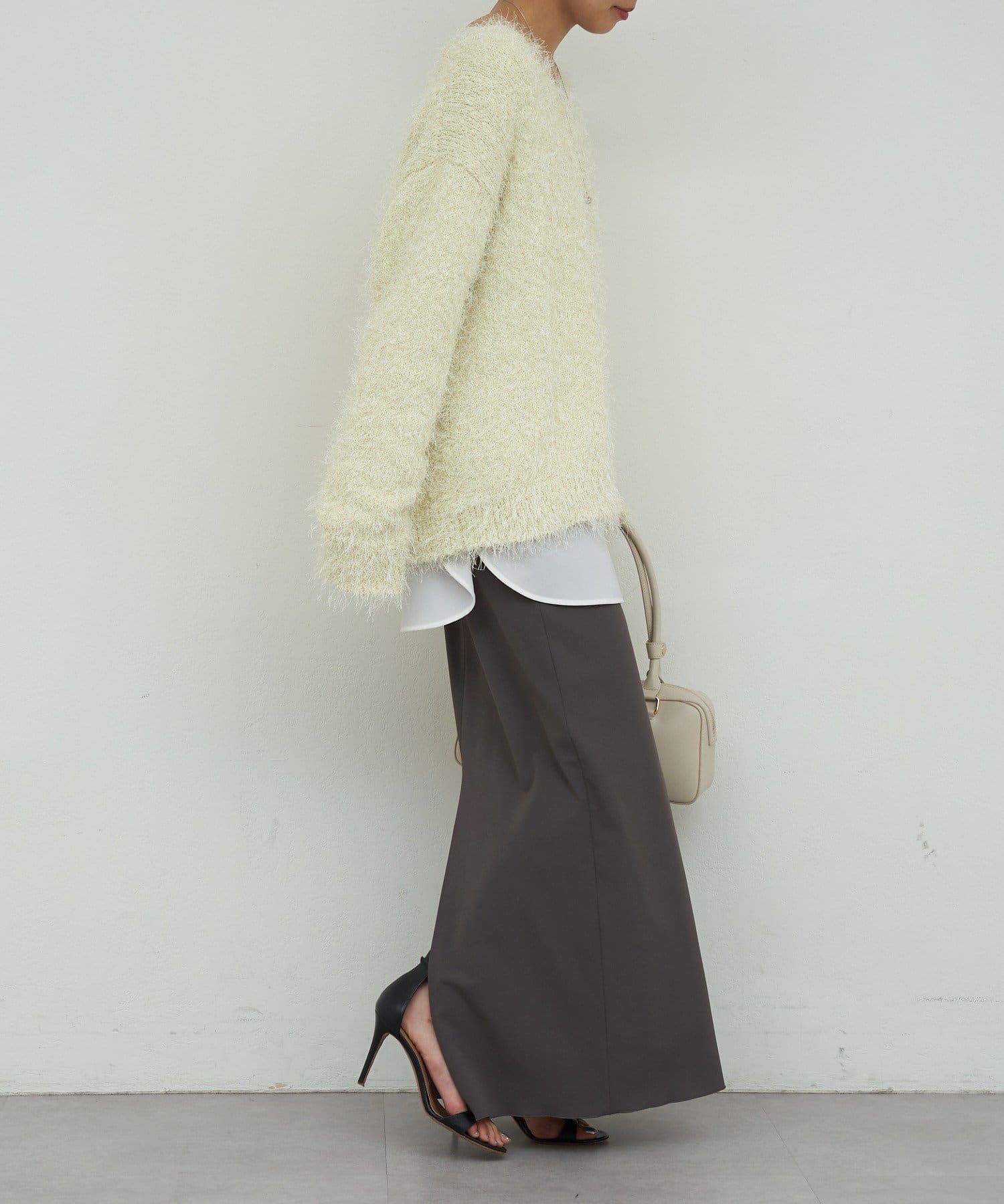 ●ライトな素材感のニットで、冬から春先までロングシーズン活躍。