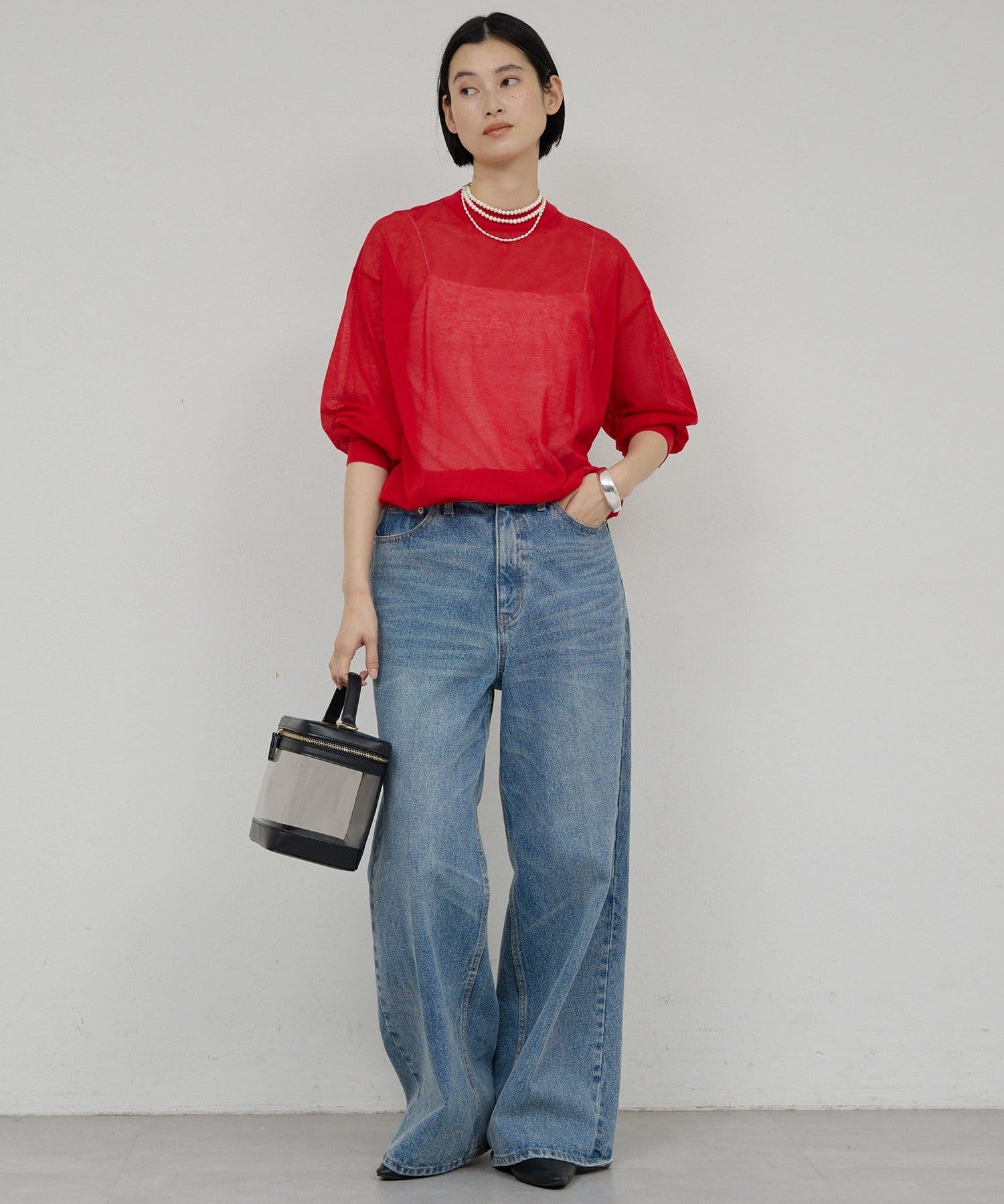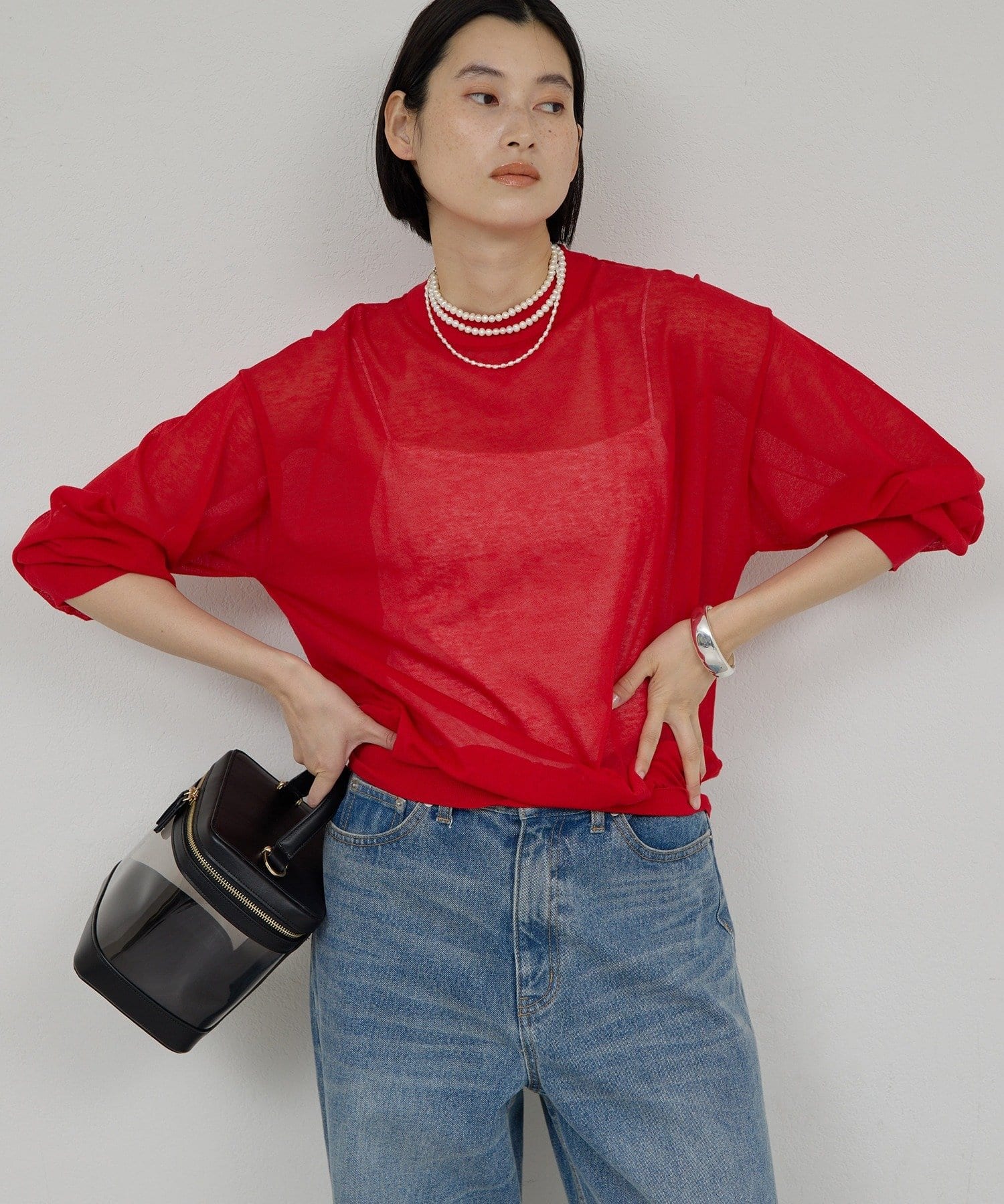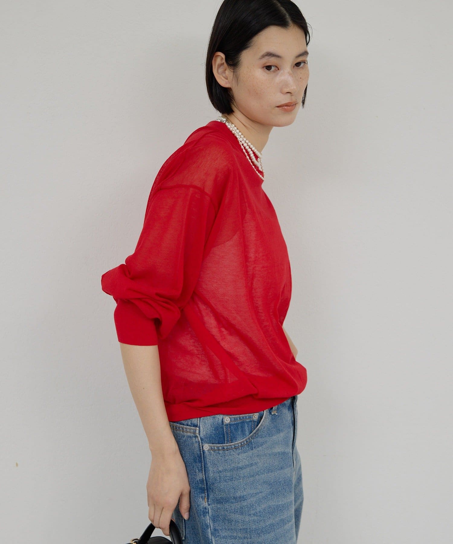 ●軽い素材感とほのかな透け感が、エレガントさをプラスするニット。