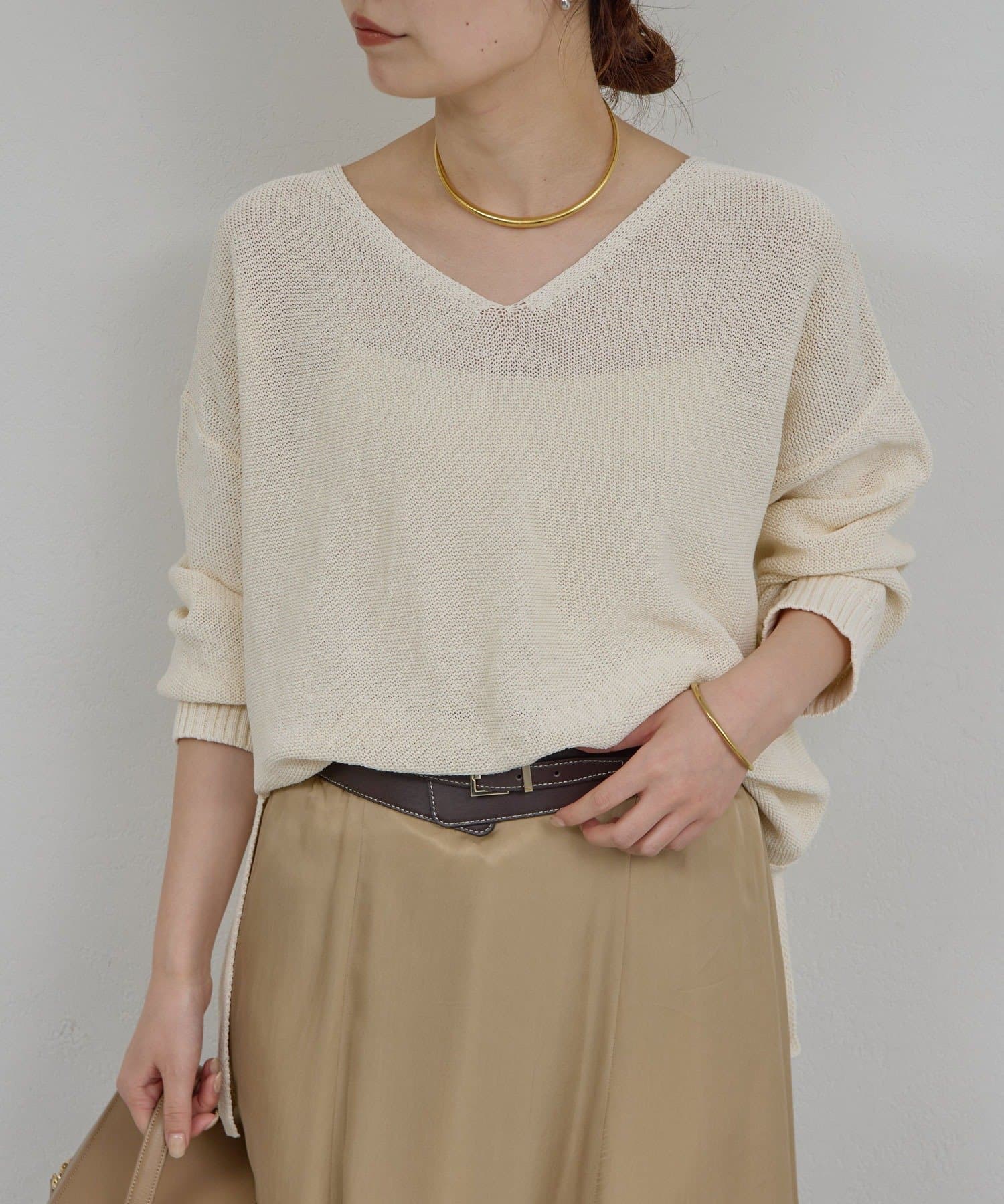●ベーシックなデザインなので合わせるボトムを選ばず着回せる1枚。