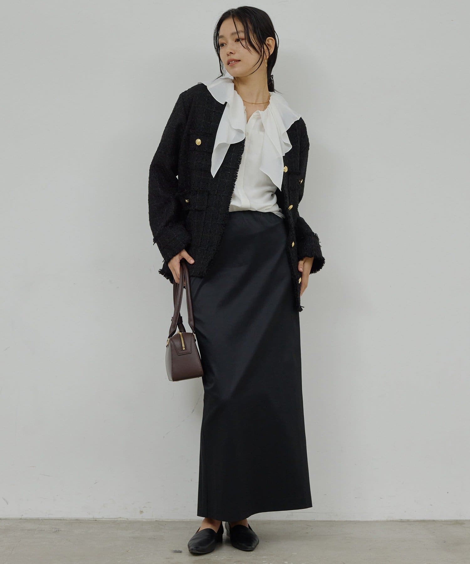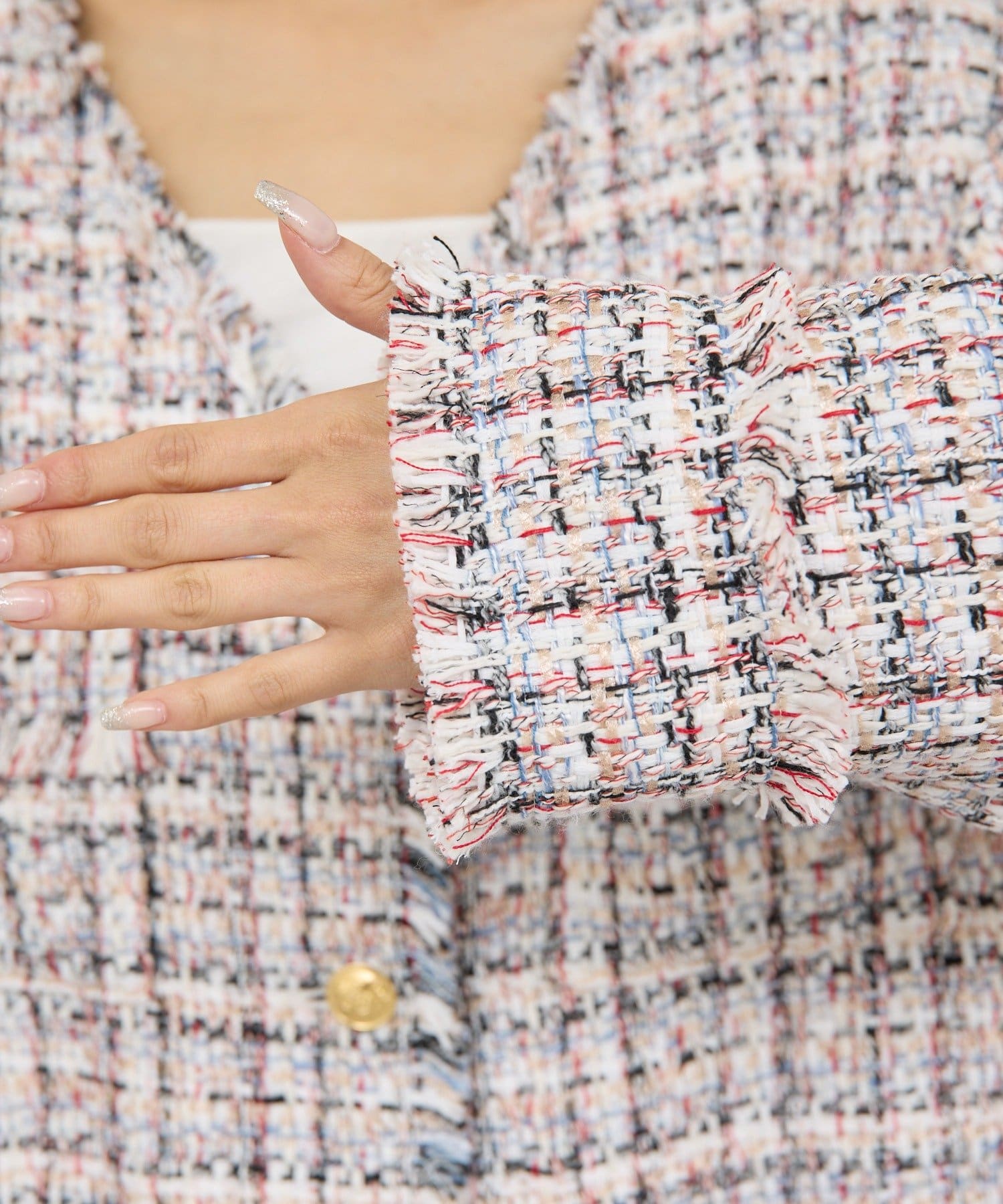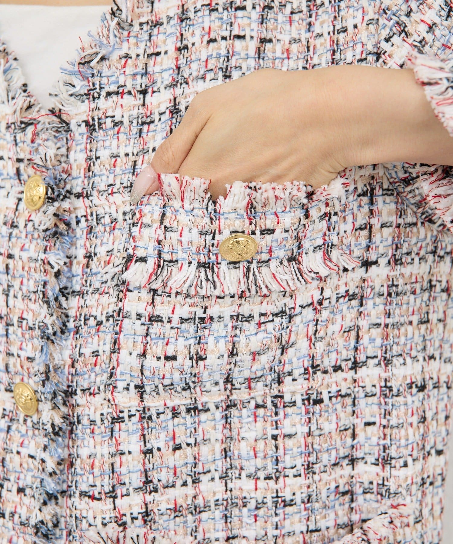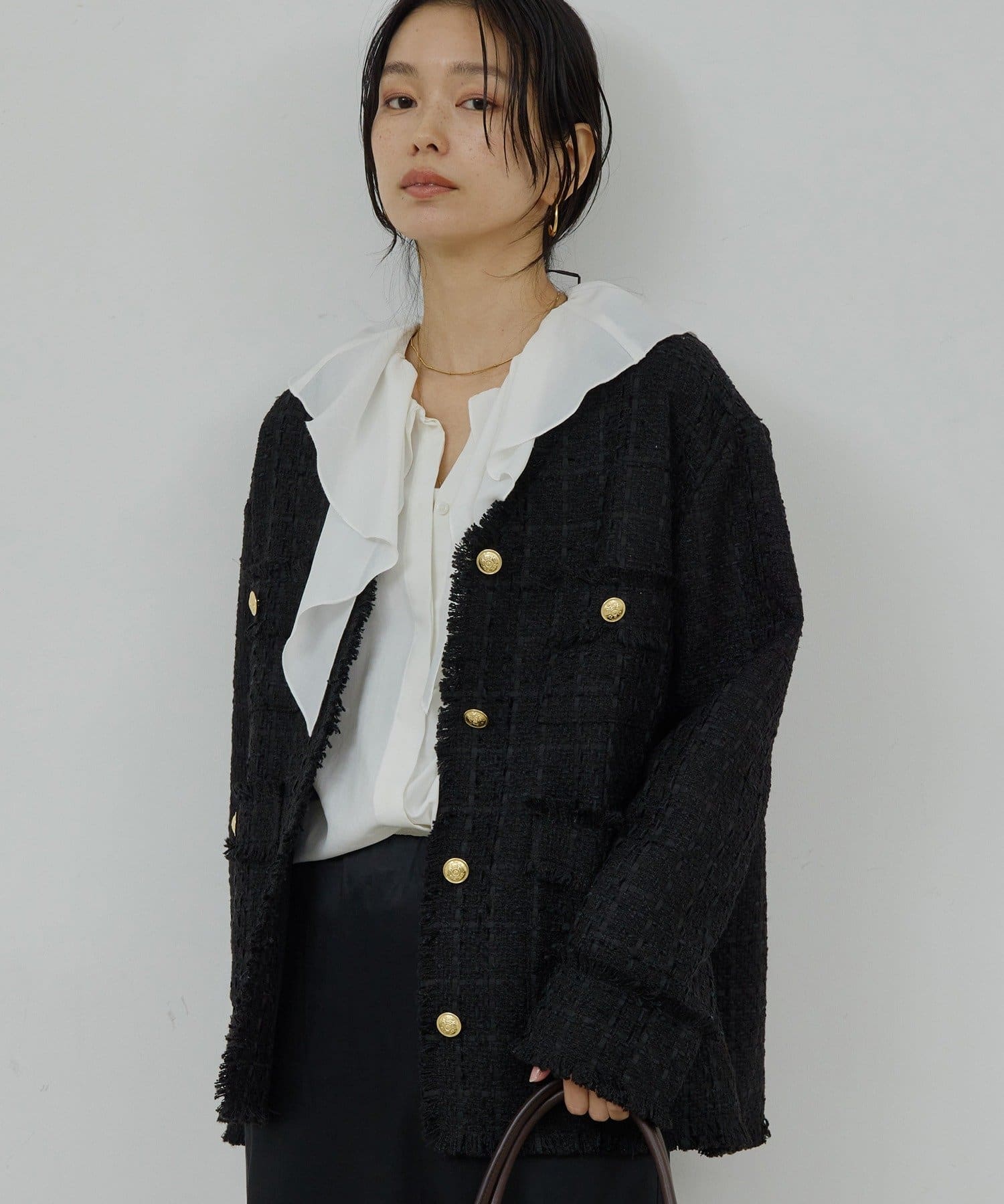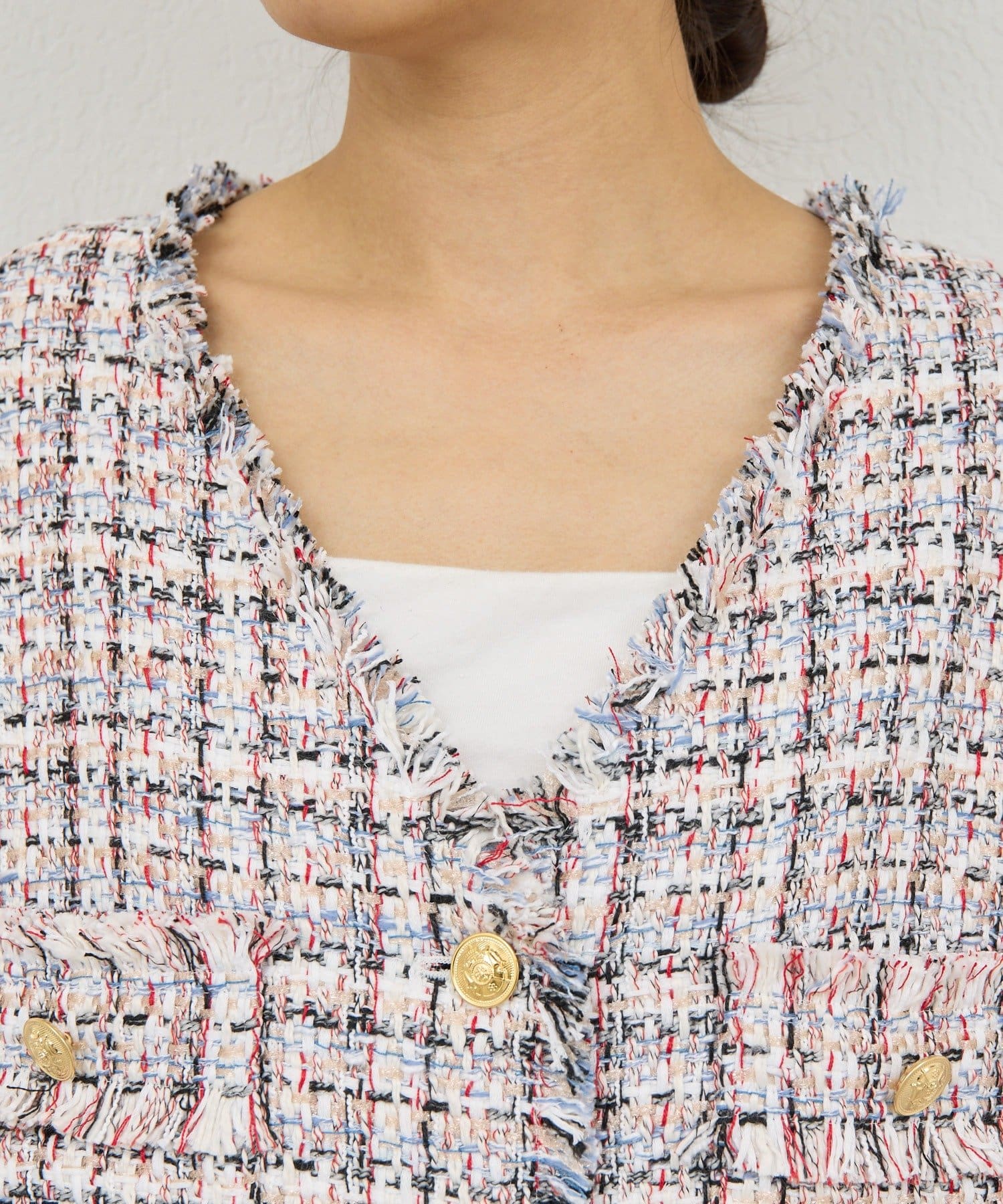 ●女性らしい温かみのあるツイード生地が魅力の1着。