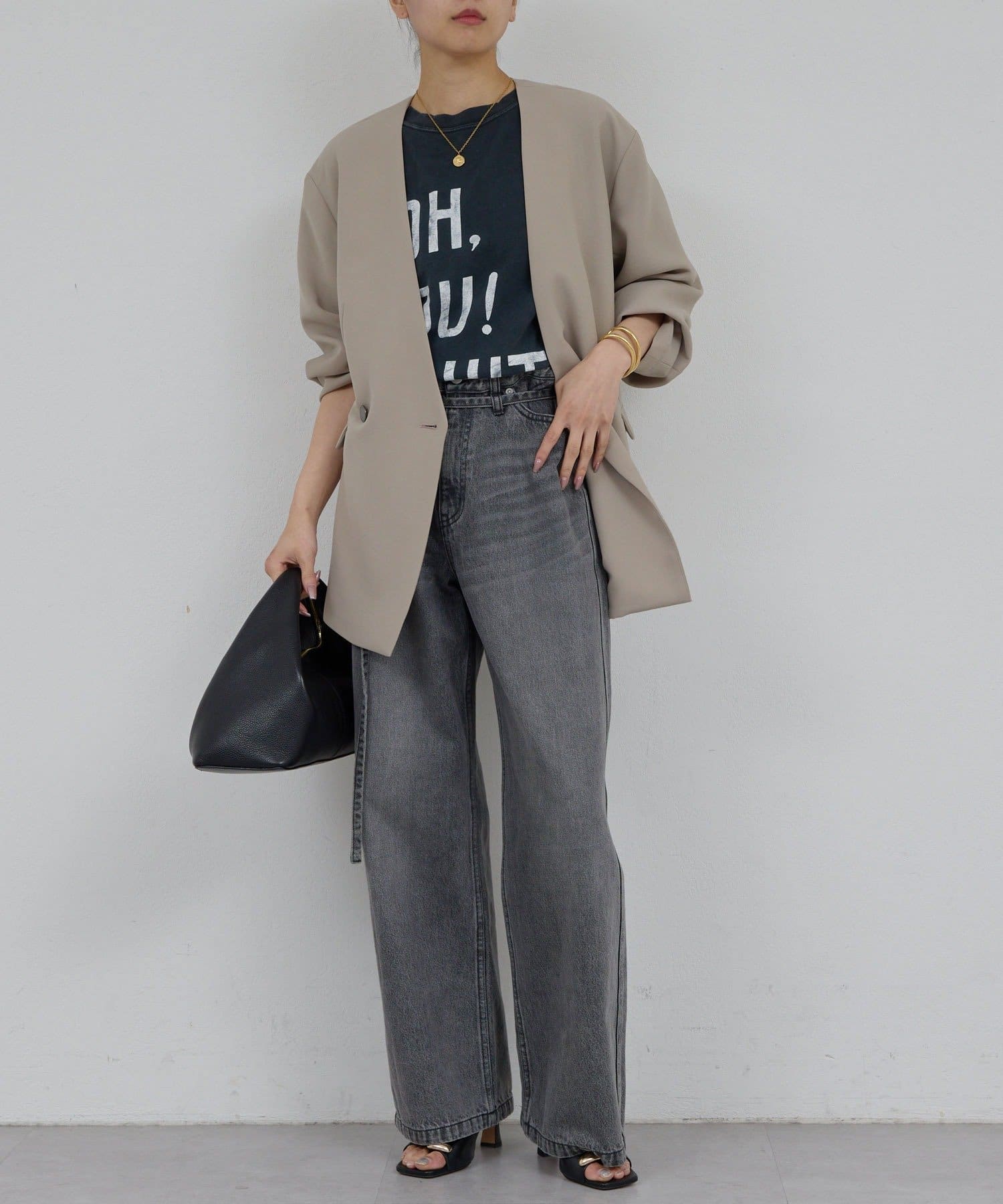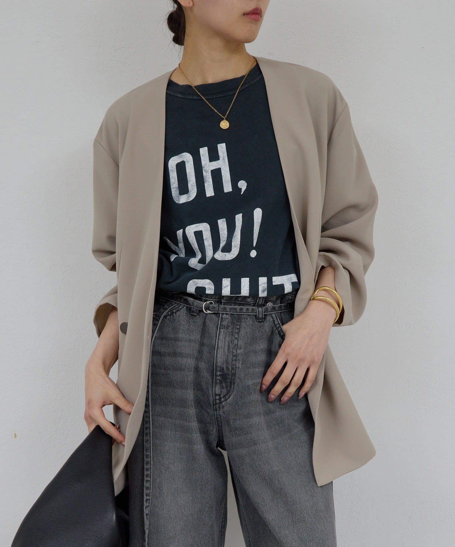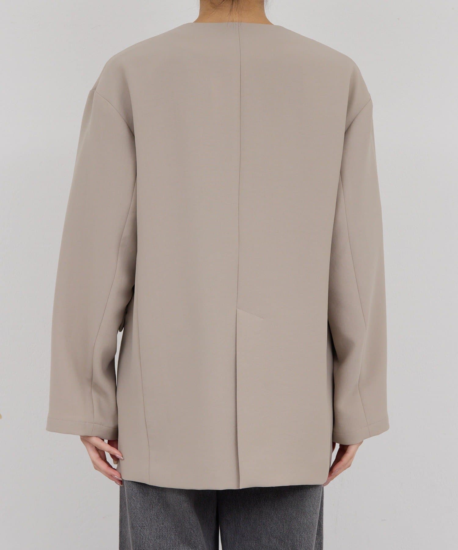 カーディガン感覚でさらりと羽織れるノーカラージャケット。