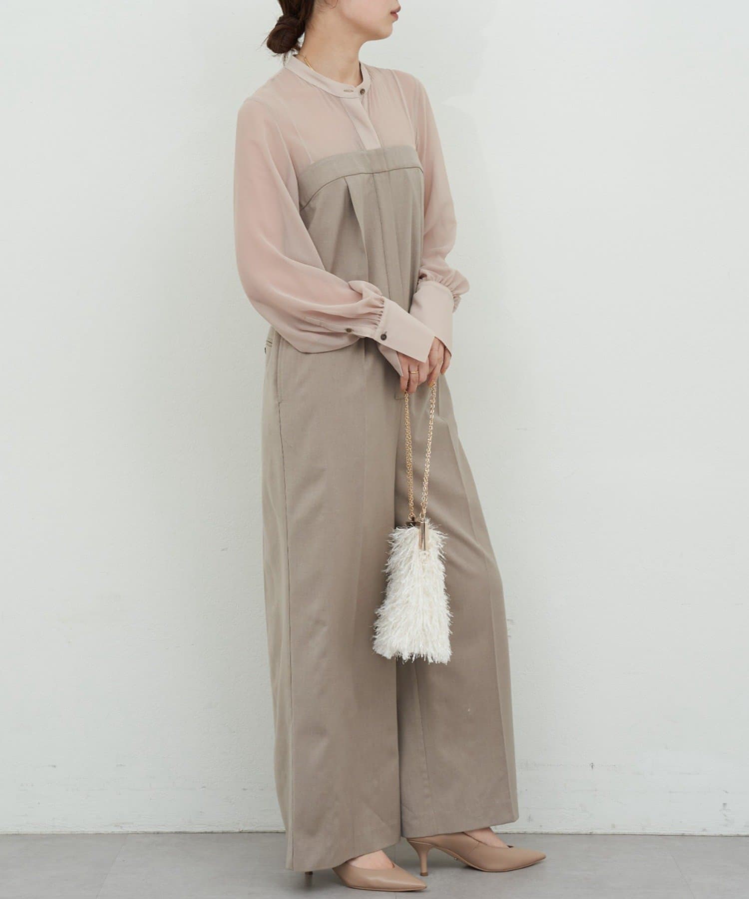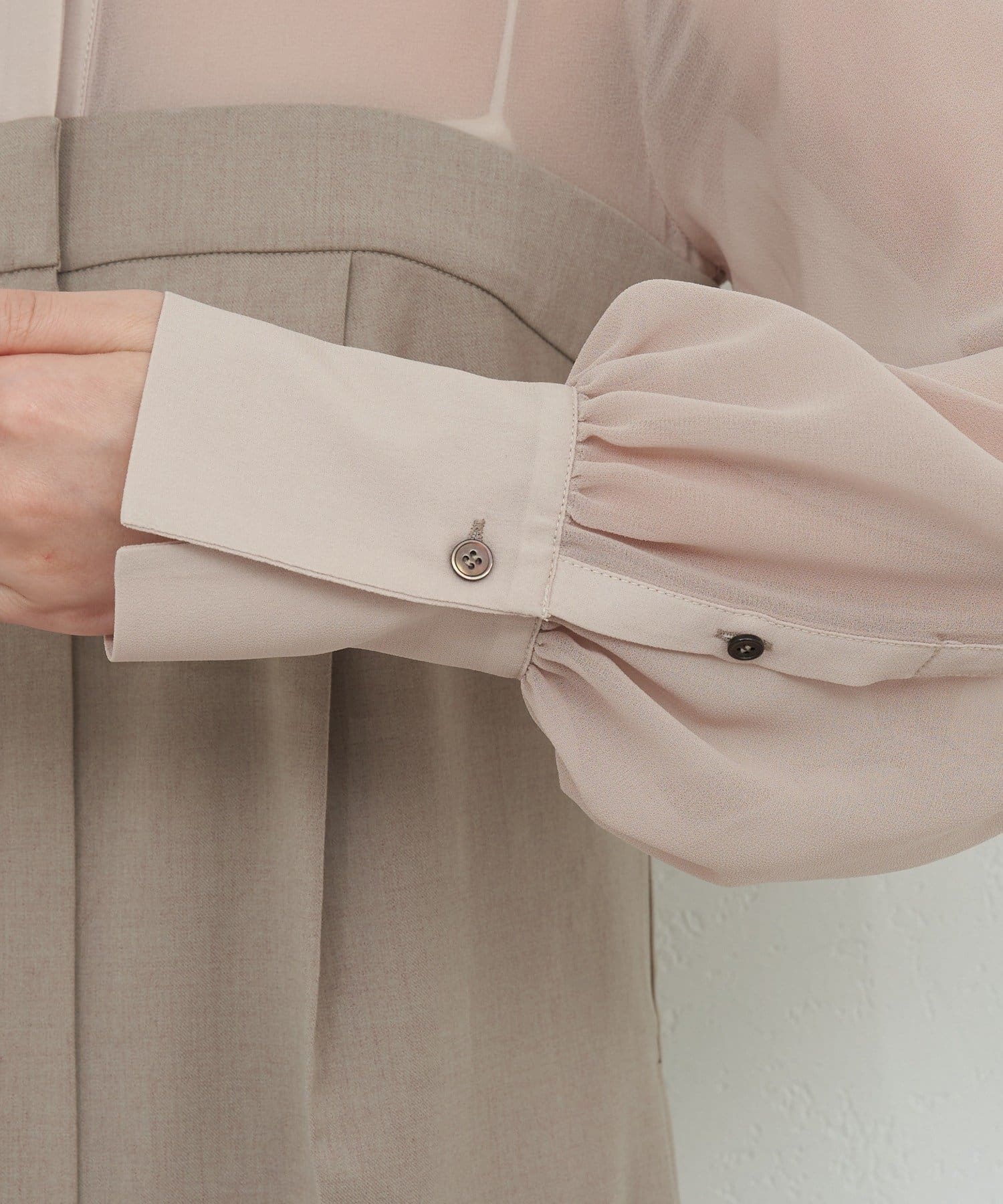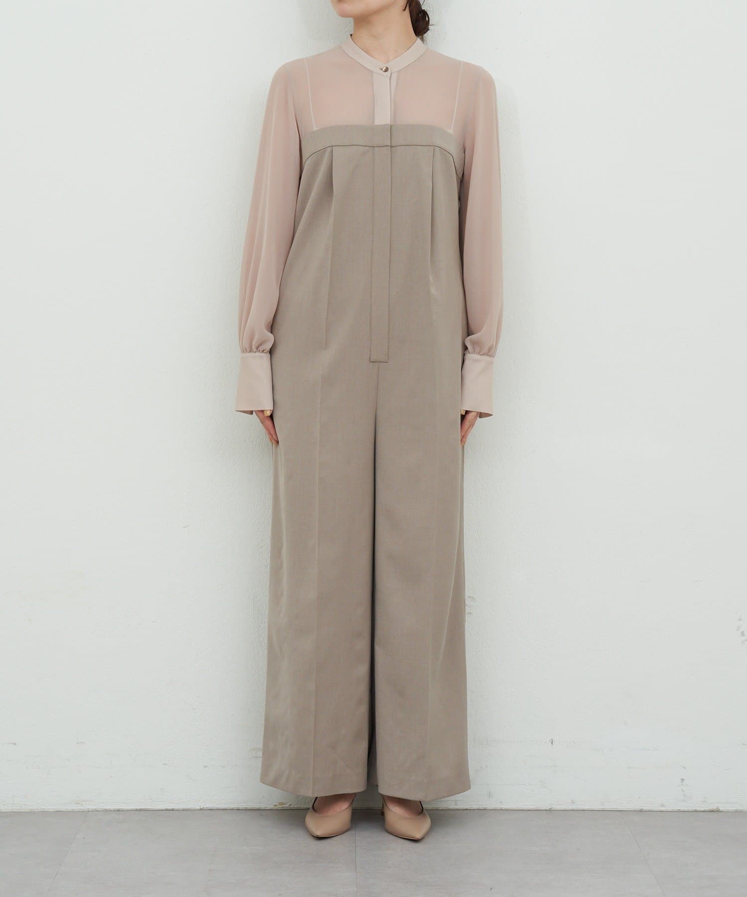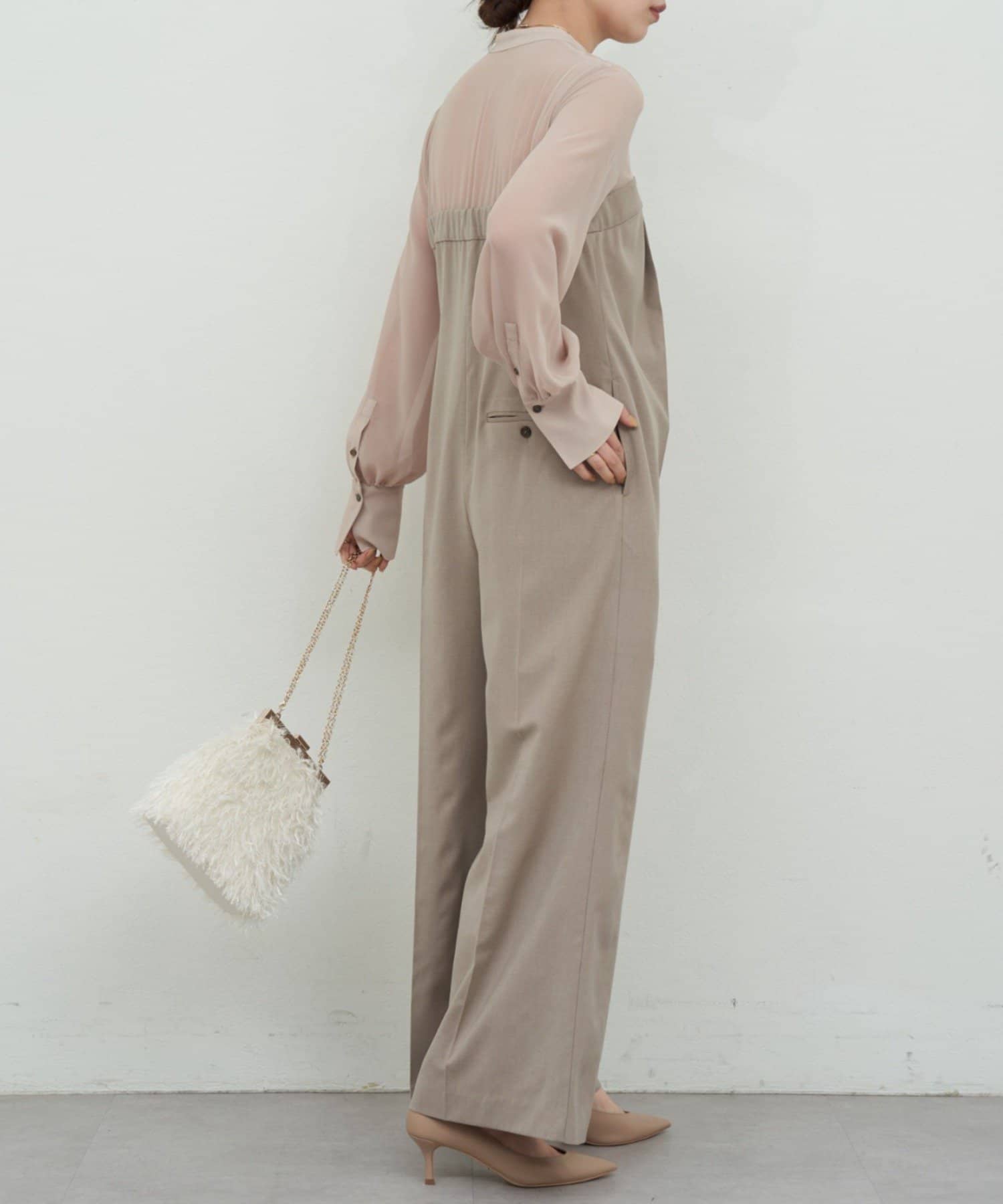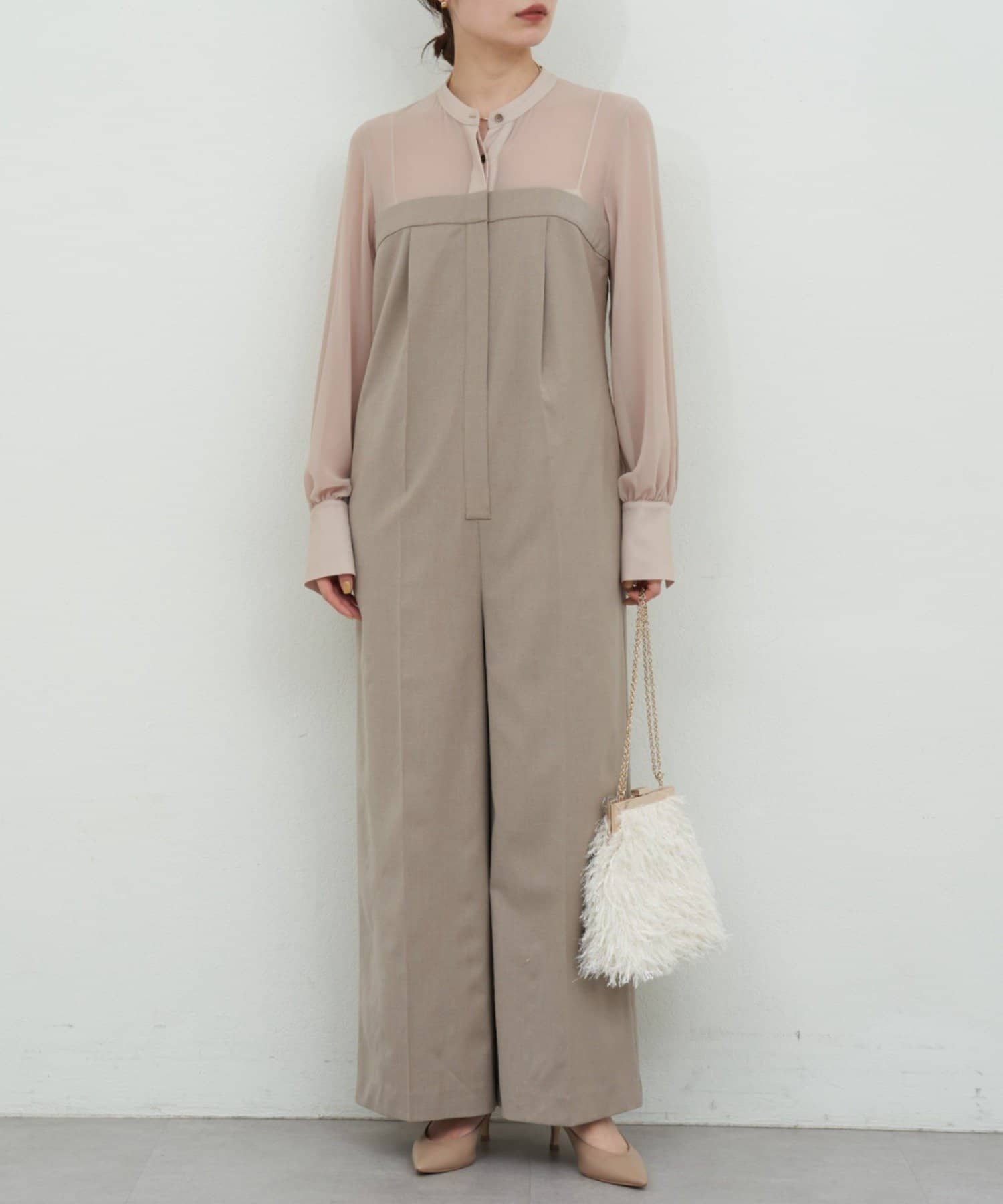●シアーシャツにコンビネゾンをドッキングしたようなデザイン。