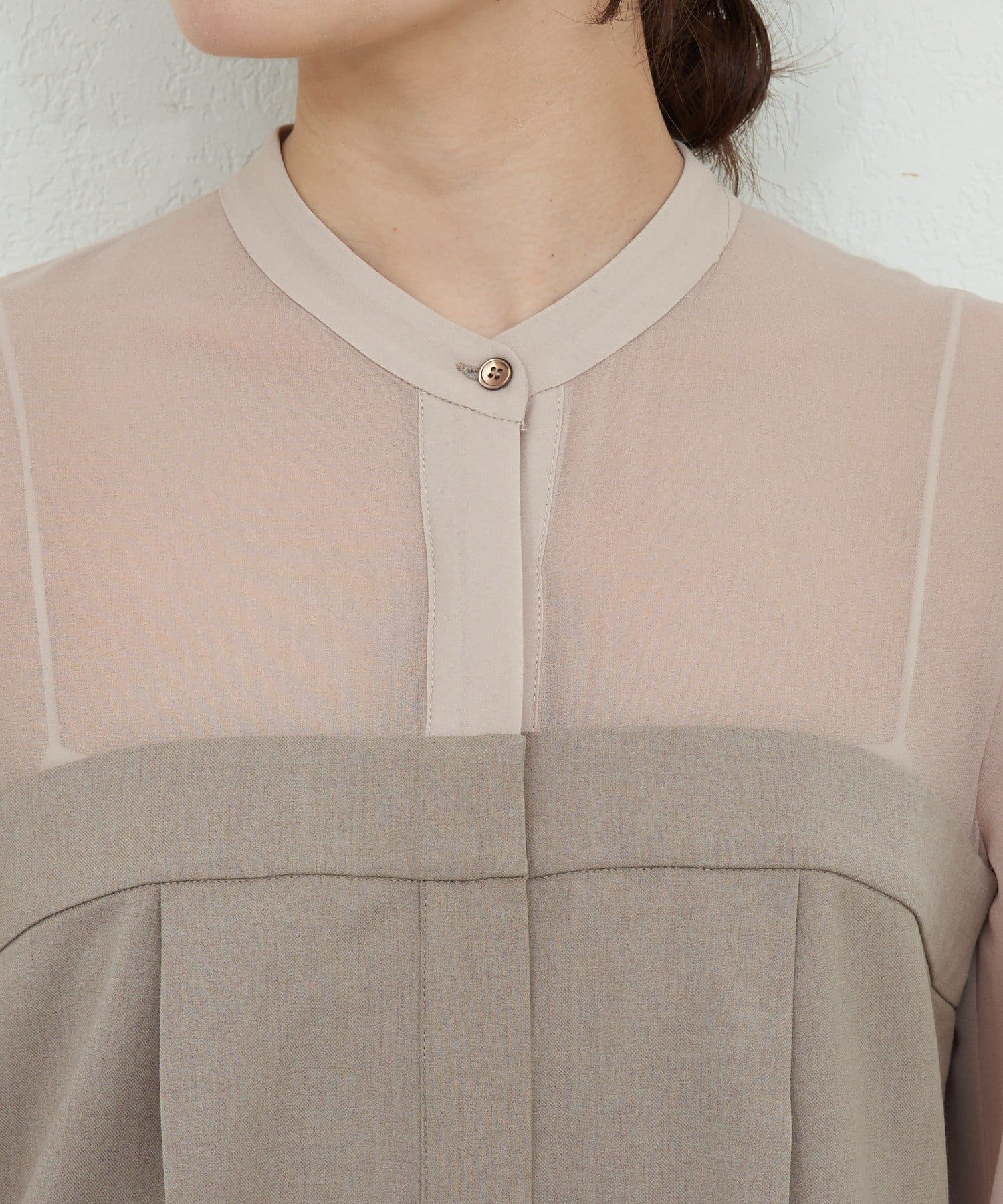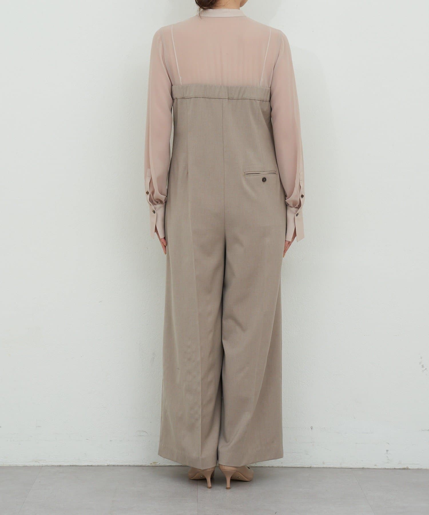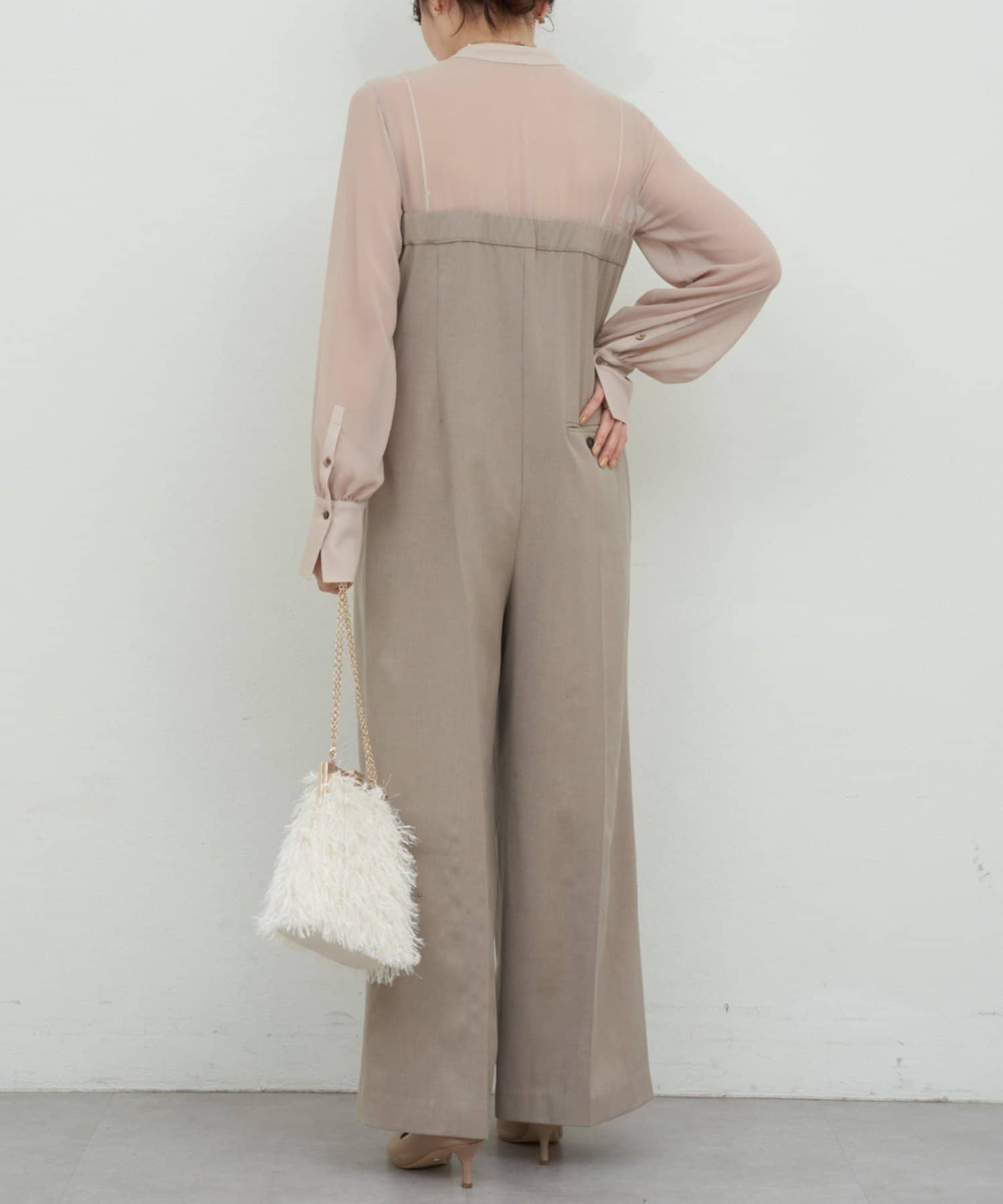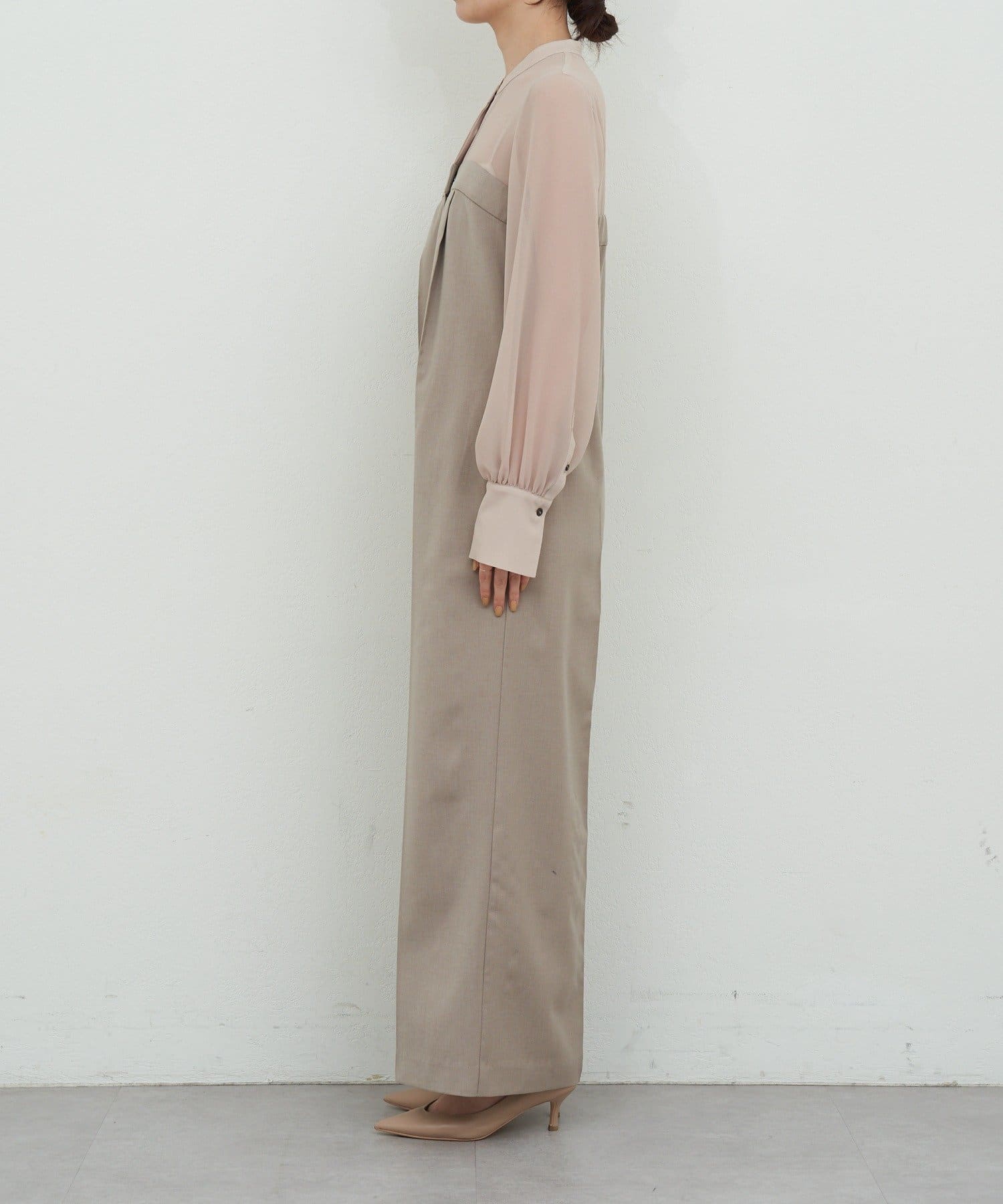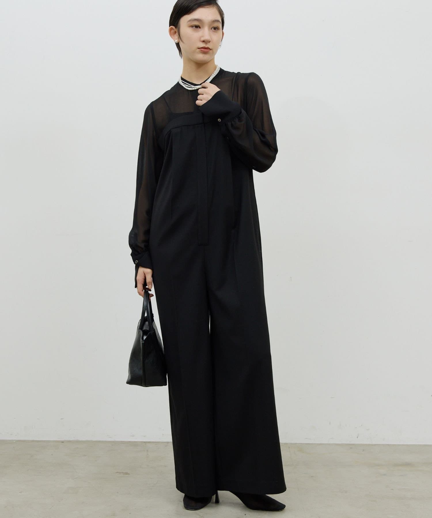 ●シアーシャツにコンビネゾンをドッキングしたようなデザイン。