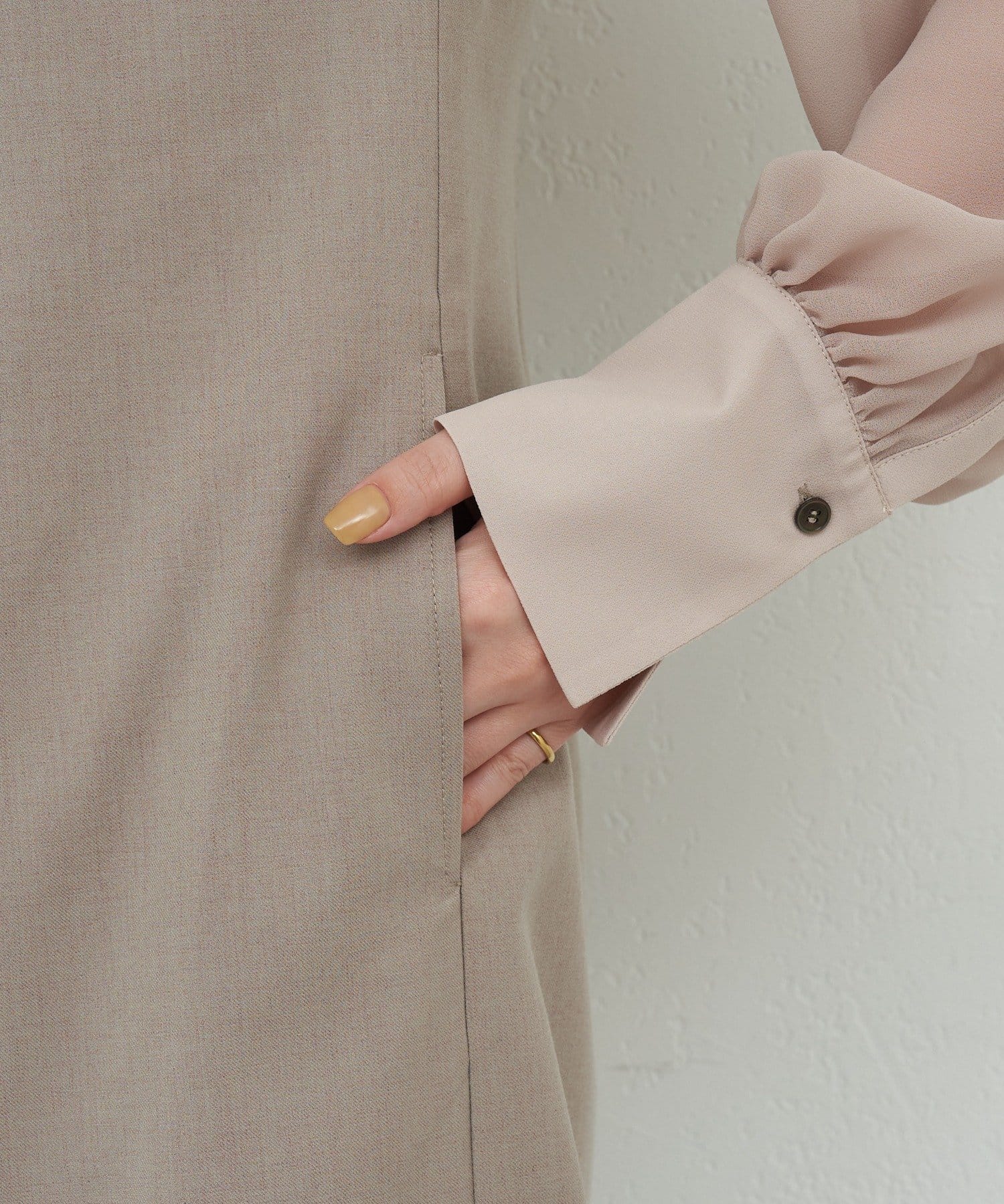 ●程よいシアー感と細部のギャザーが、上品でエレガントな印象に。