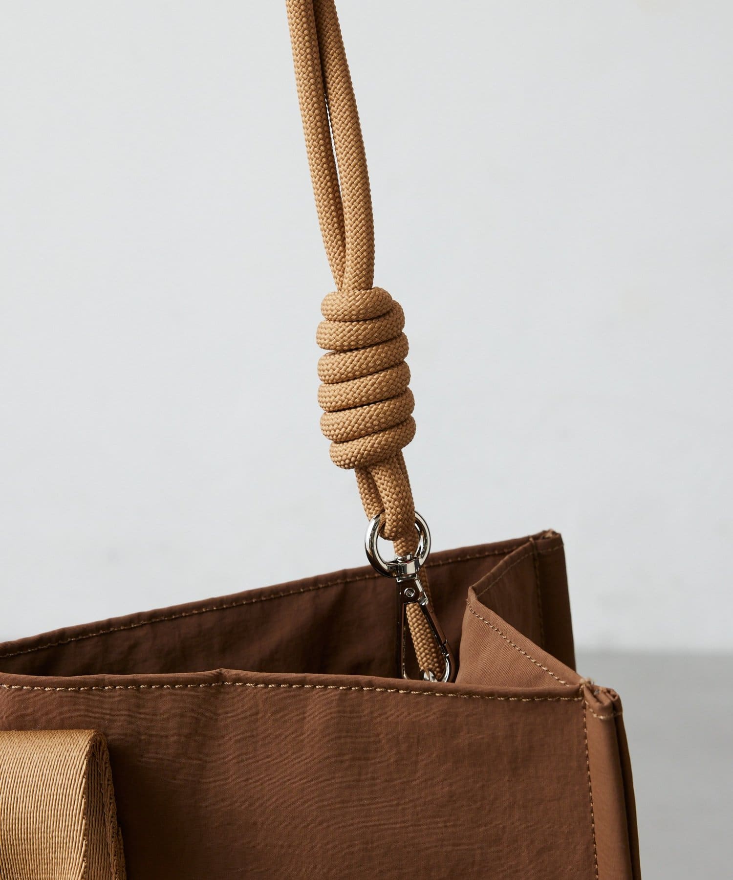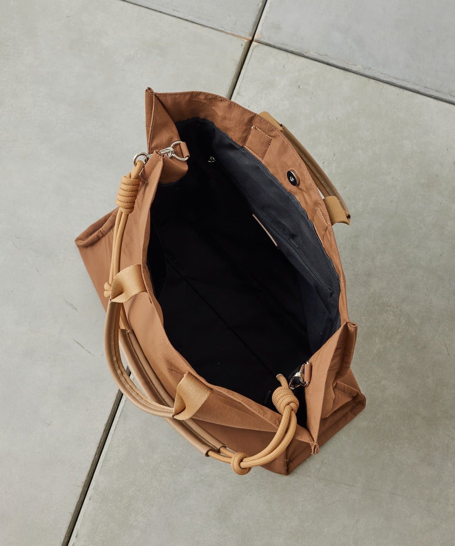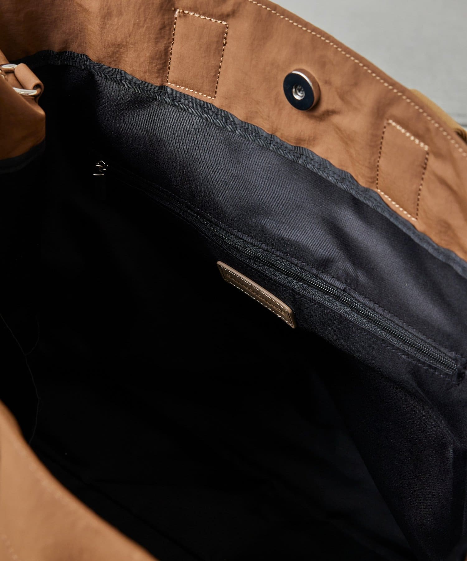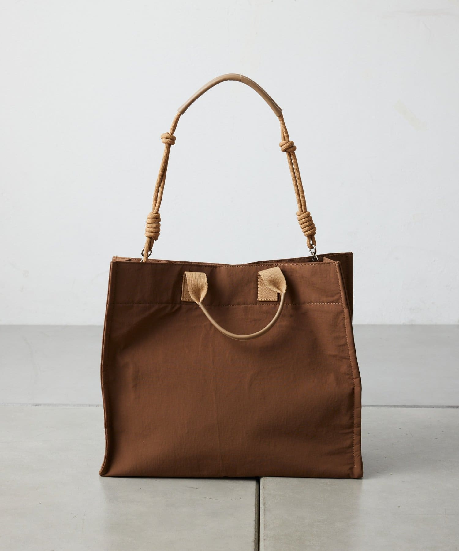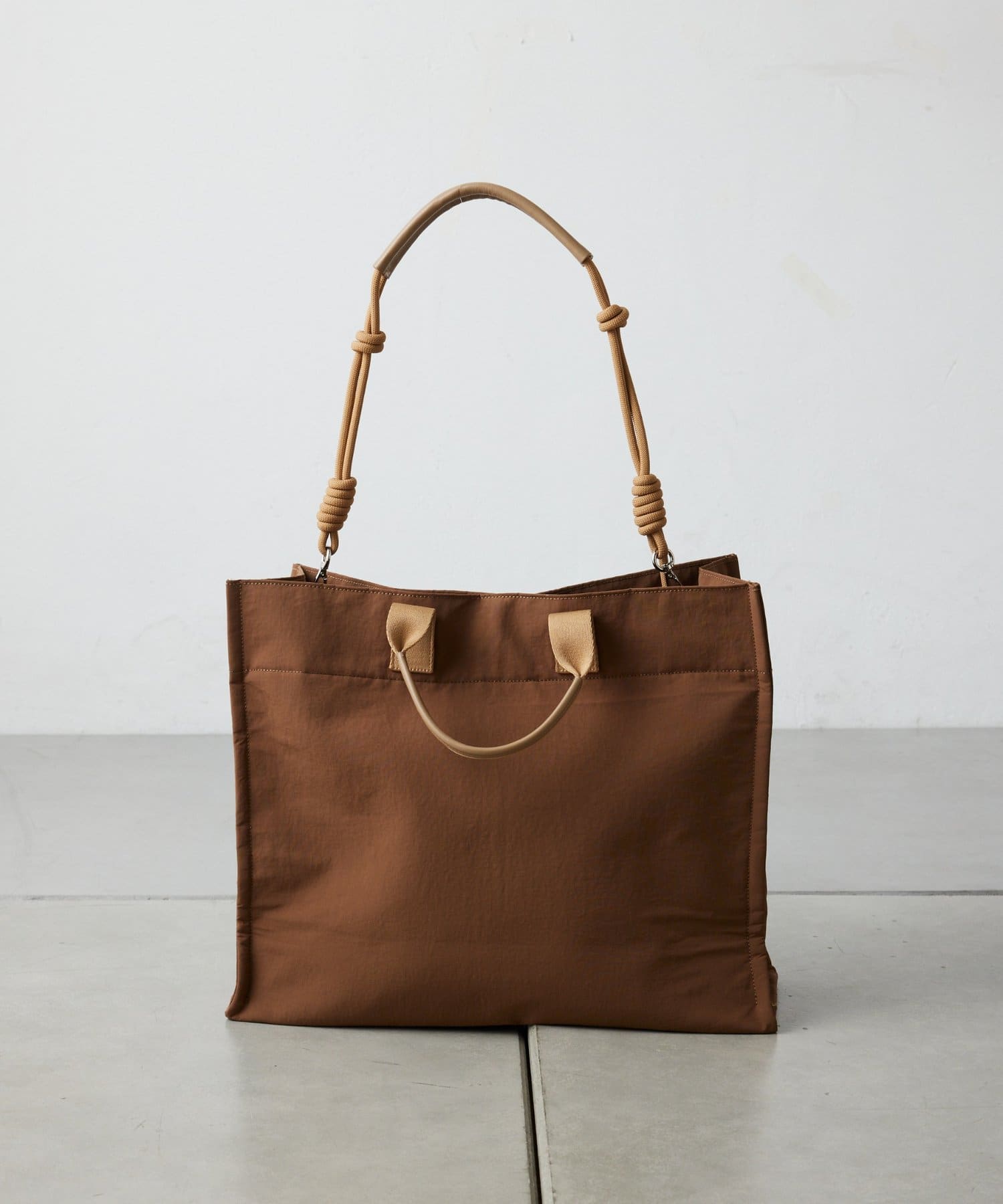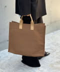 ●レザー付属のハンドルがエレガントさを演出するナイロントート。