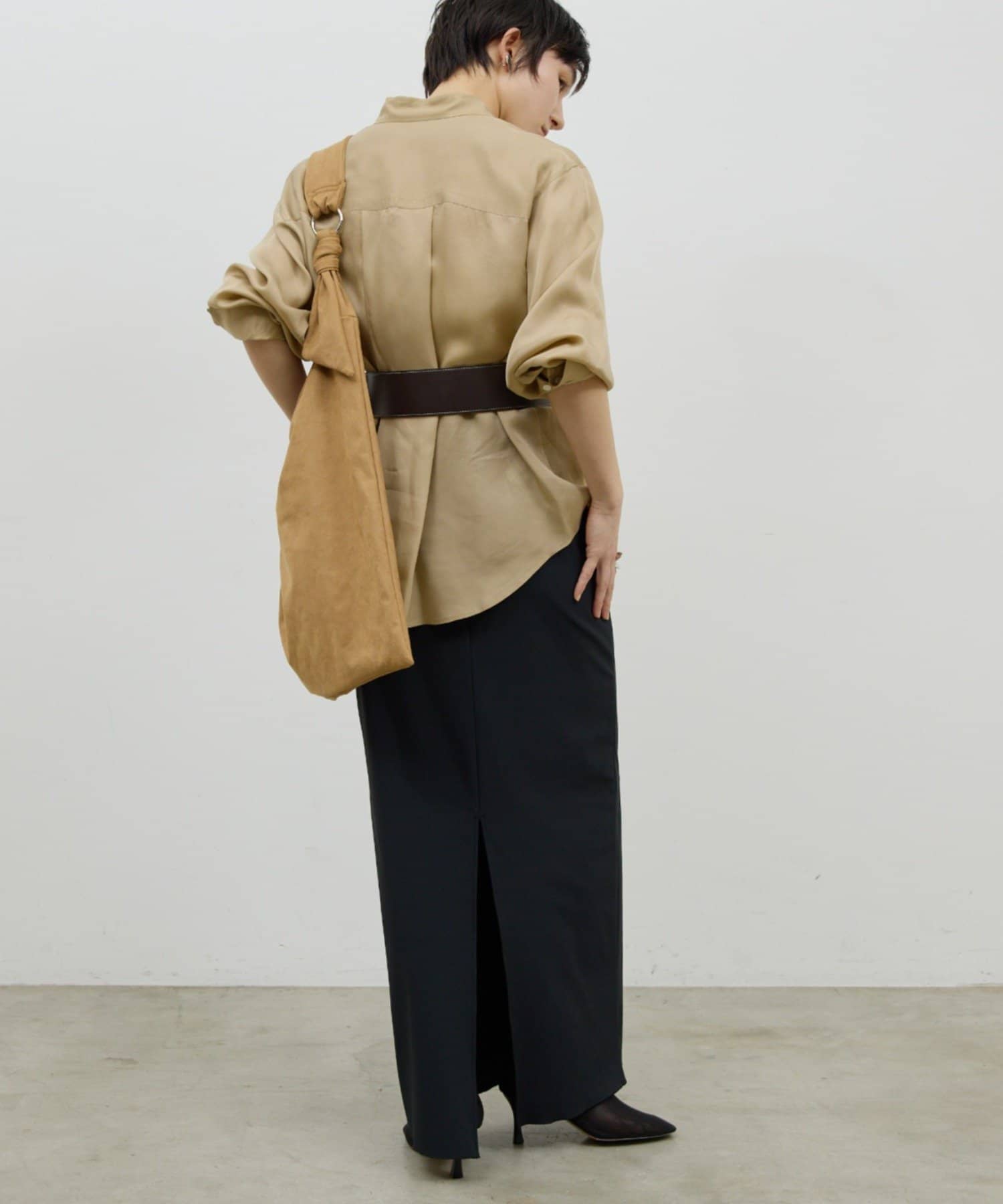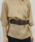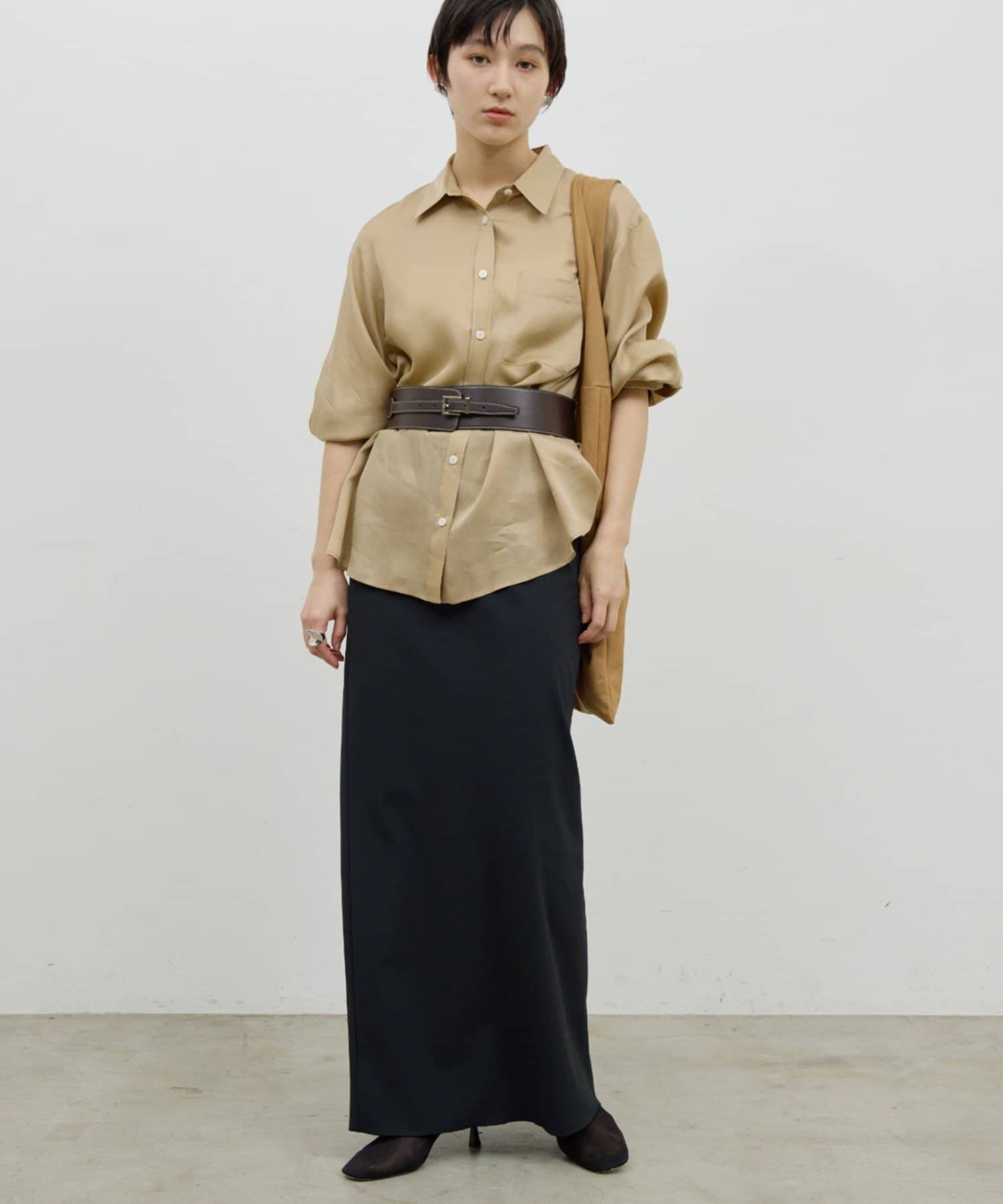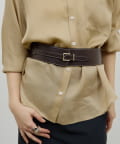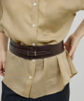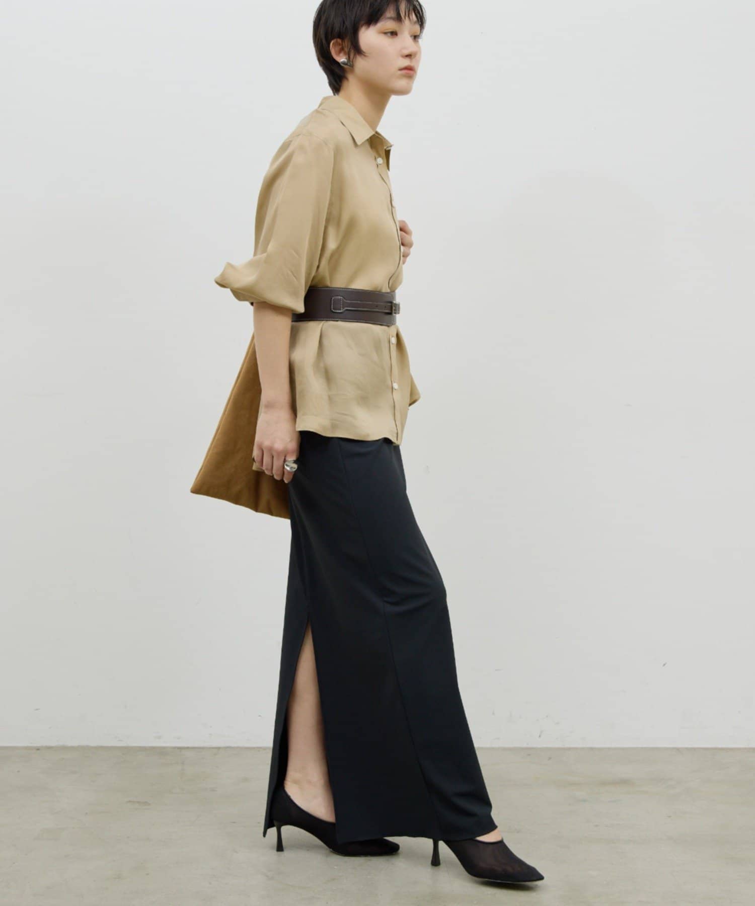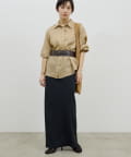 ●ワンピースやジャケットの上からベルトマークするとトレンドライクな着こなしに。