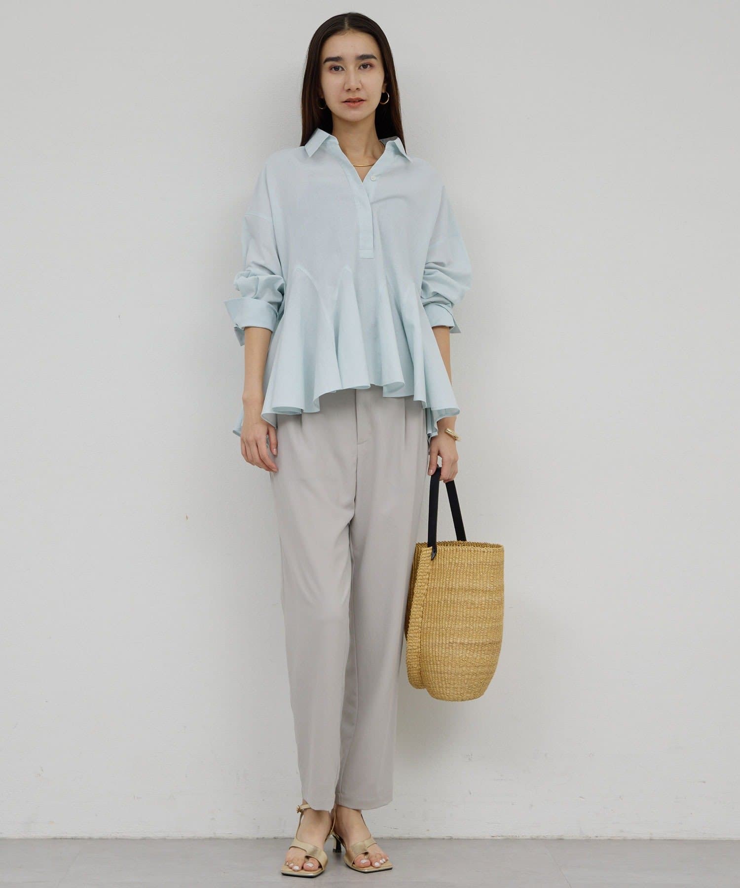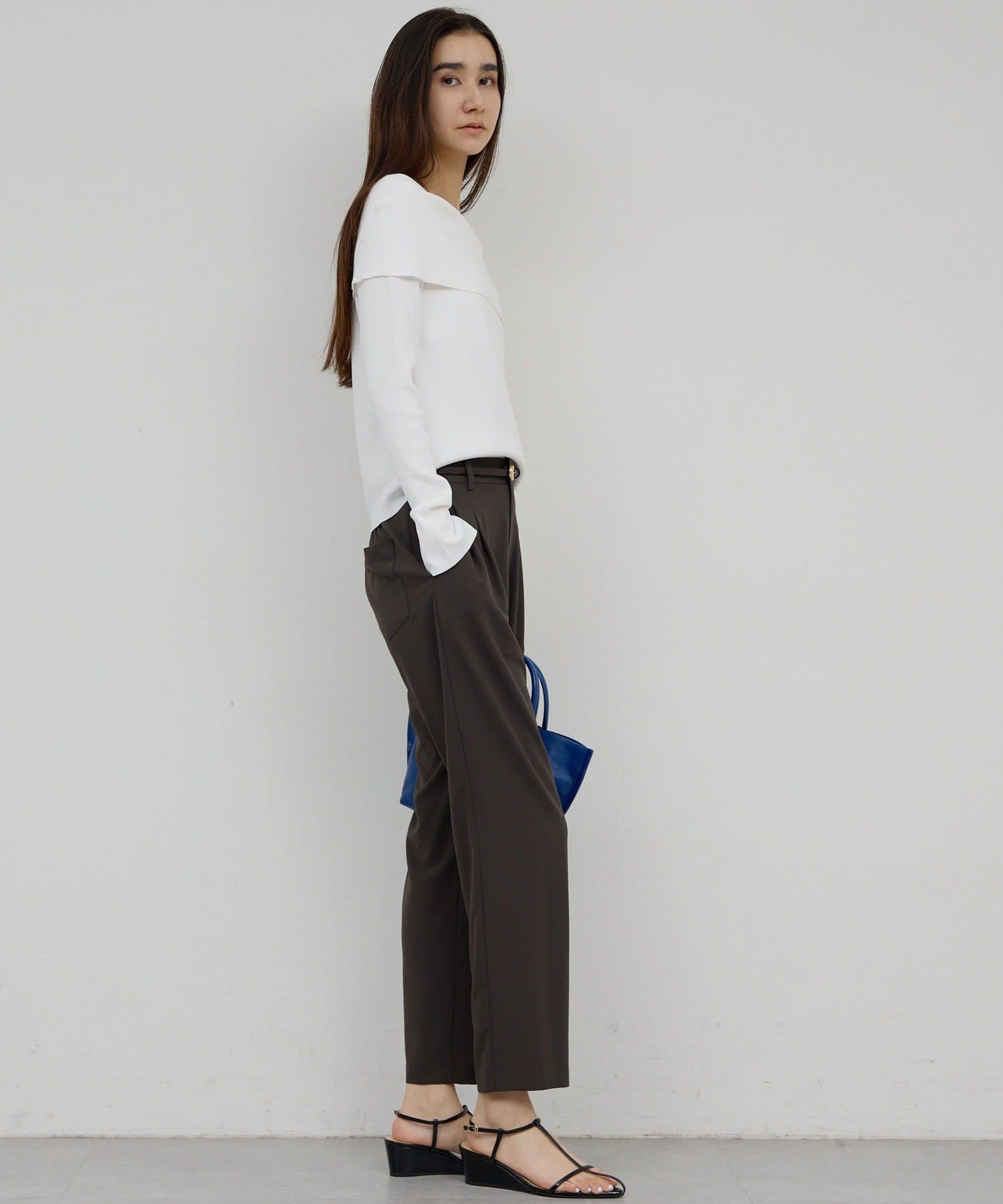 購入場所:パルクローゼット一昨年も購入し、少しくたっとしてきたので新調しました。やっぱりどんなボトムスともぴったりと合うし、真夏も、綺麗に着こなせるパンツです!