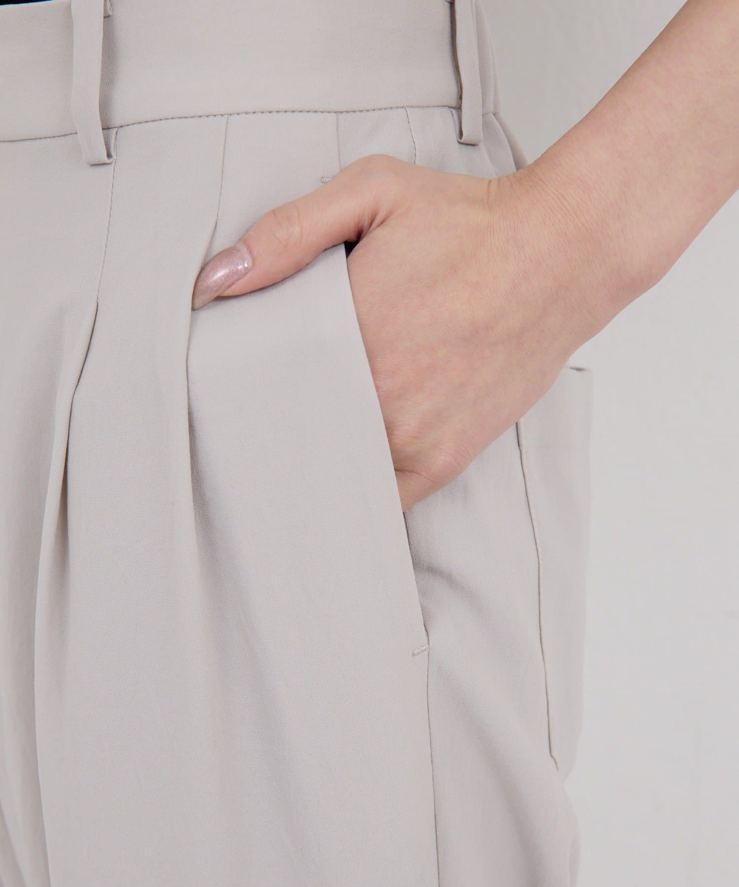 ●腰回りをすっきり見せるタック入り。