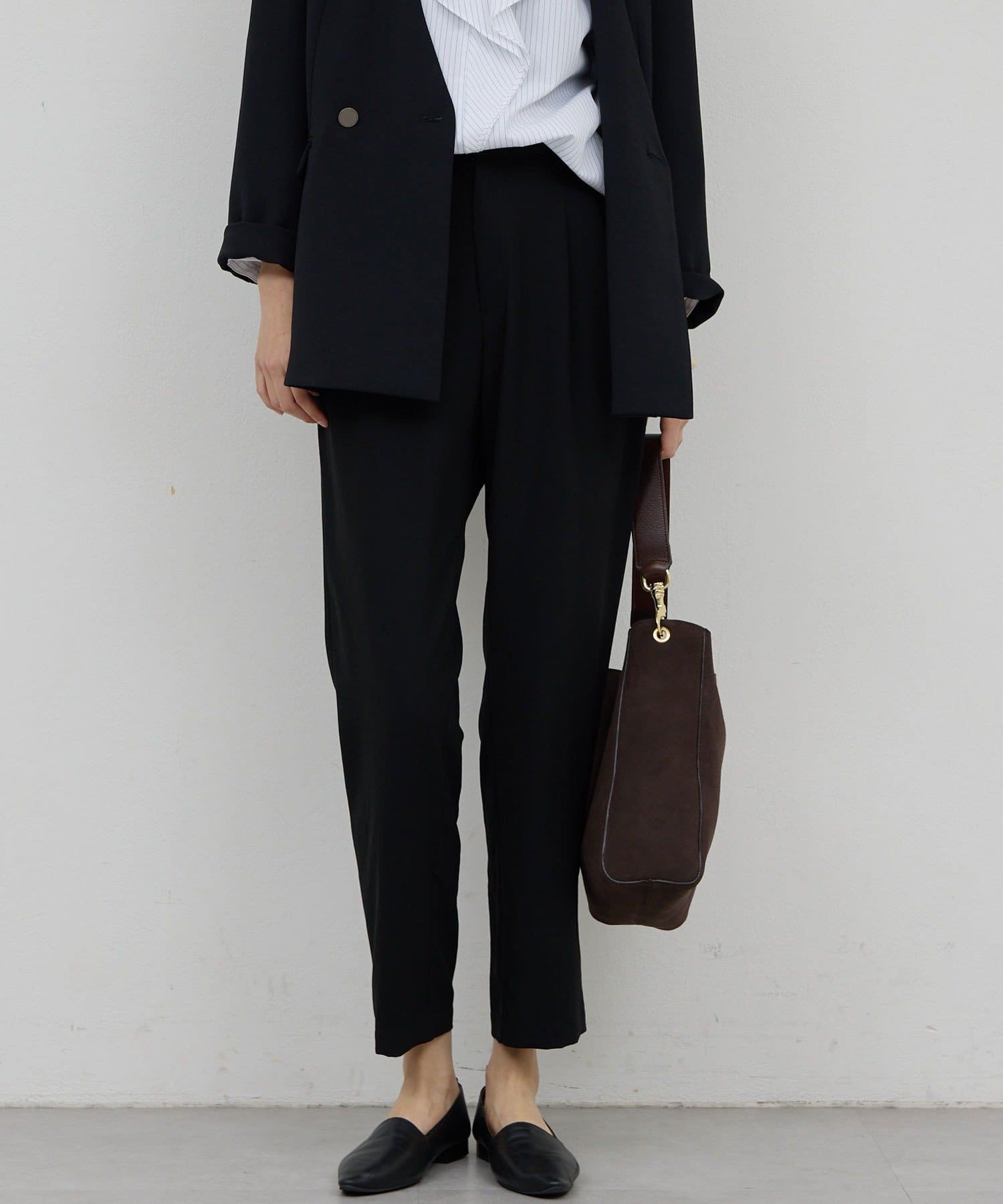 model:175cm 着用サイズ:1 すっきりとしたテーパードシルエットは着痩せ効果抜群 -
