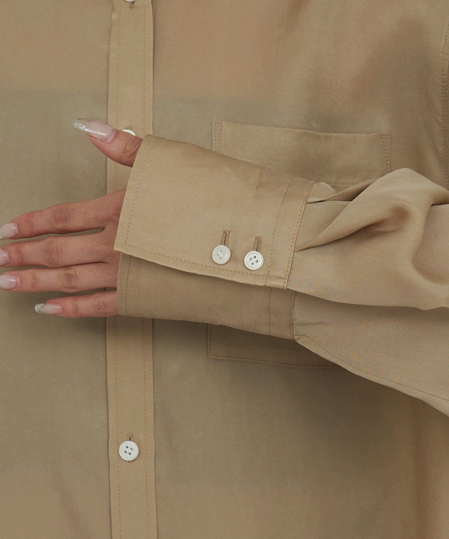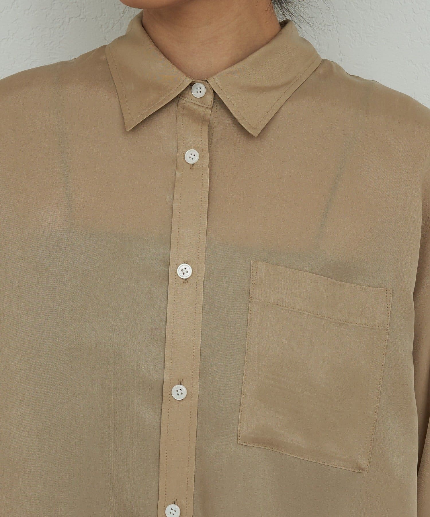 ●落ち感のある微光沢素材が都会的な印象のブラウス。