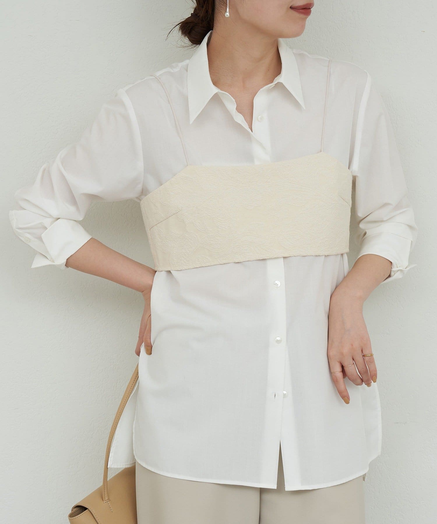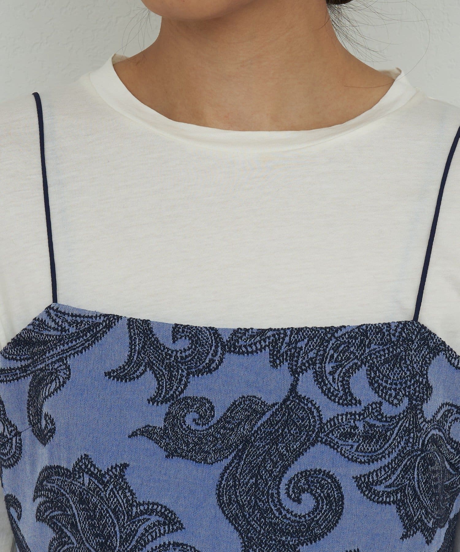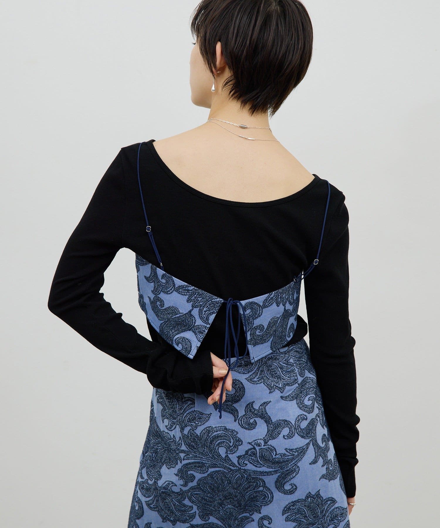 ●立体感のある素材が華やかな印象を与えるキャミソール。