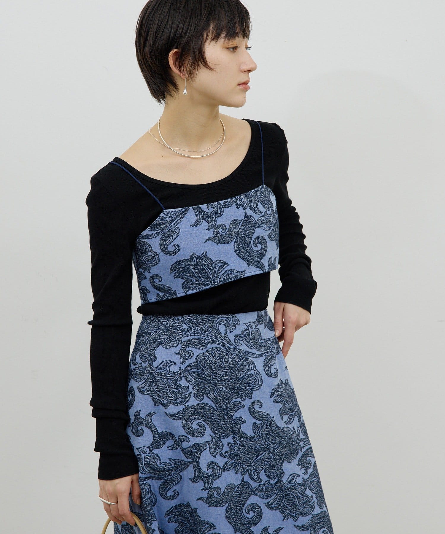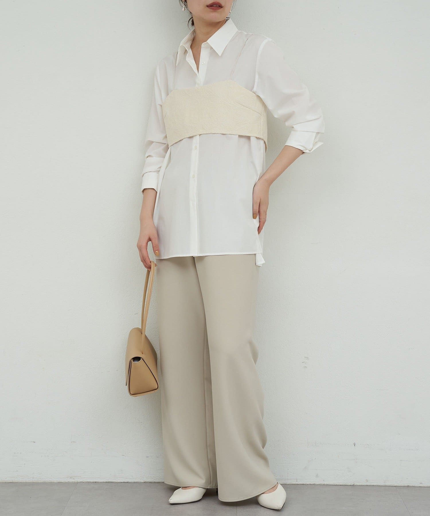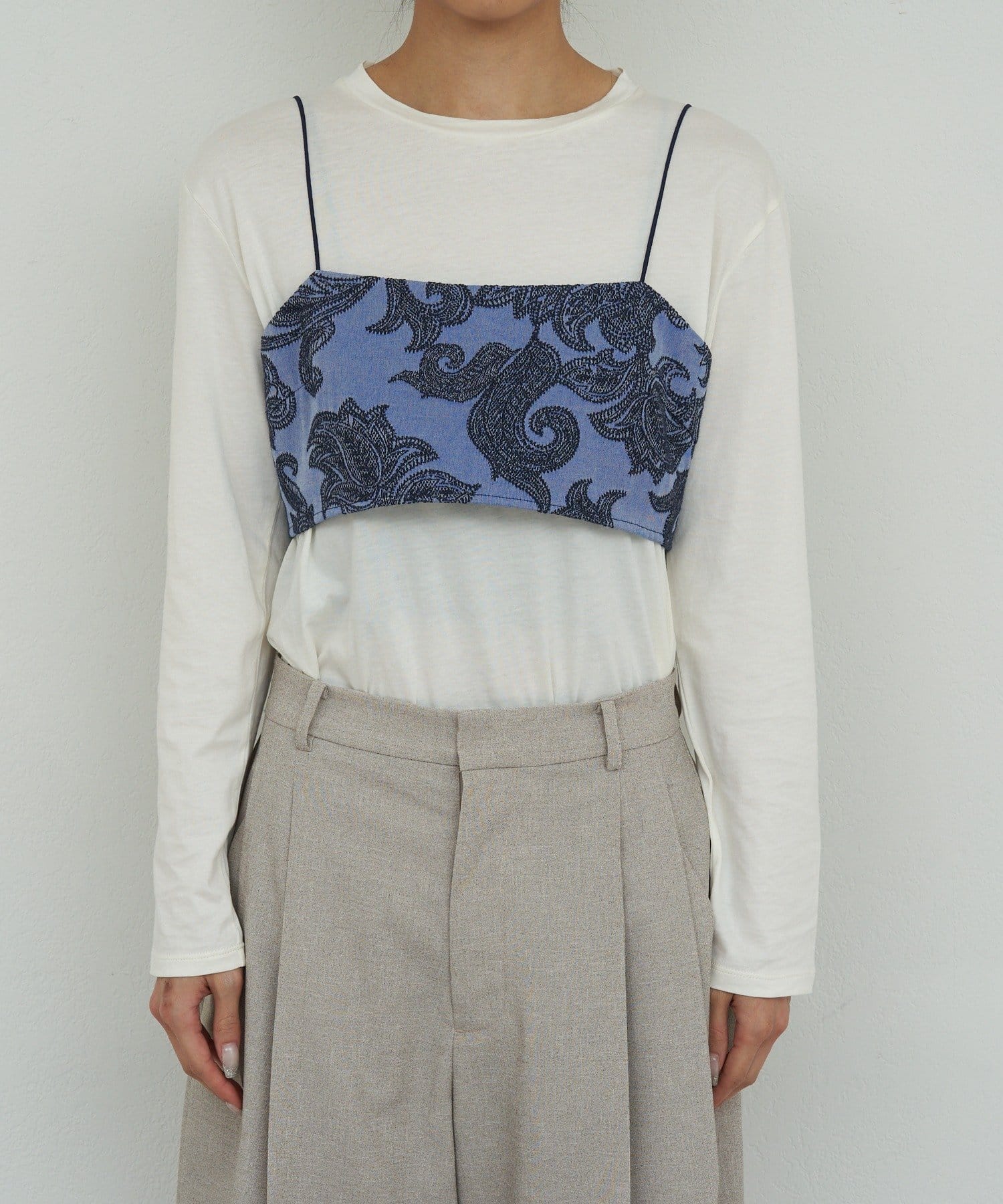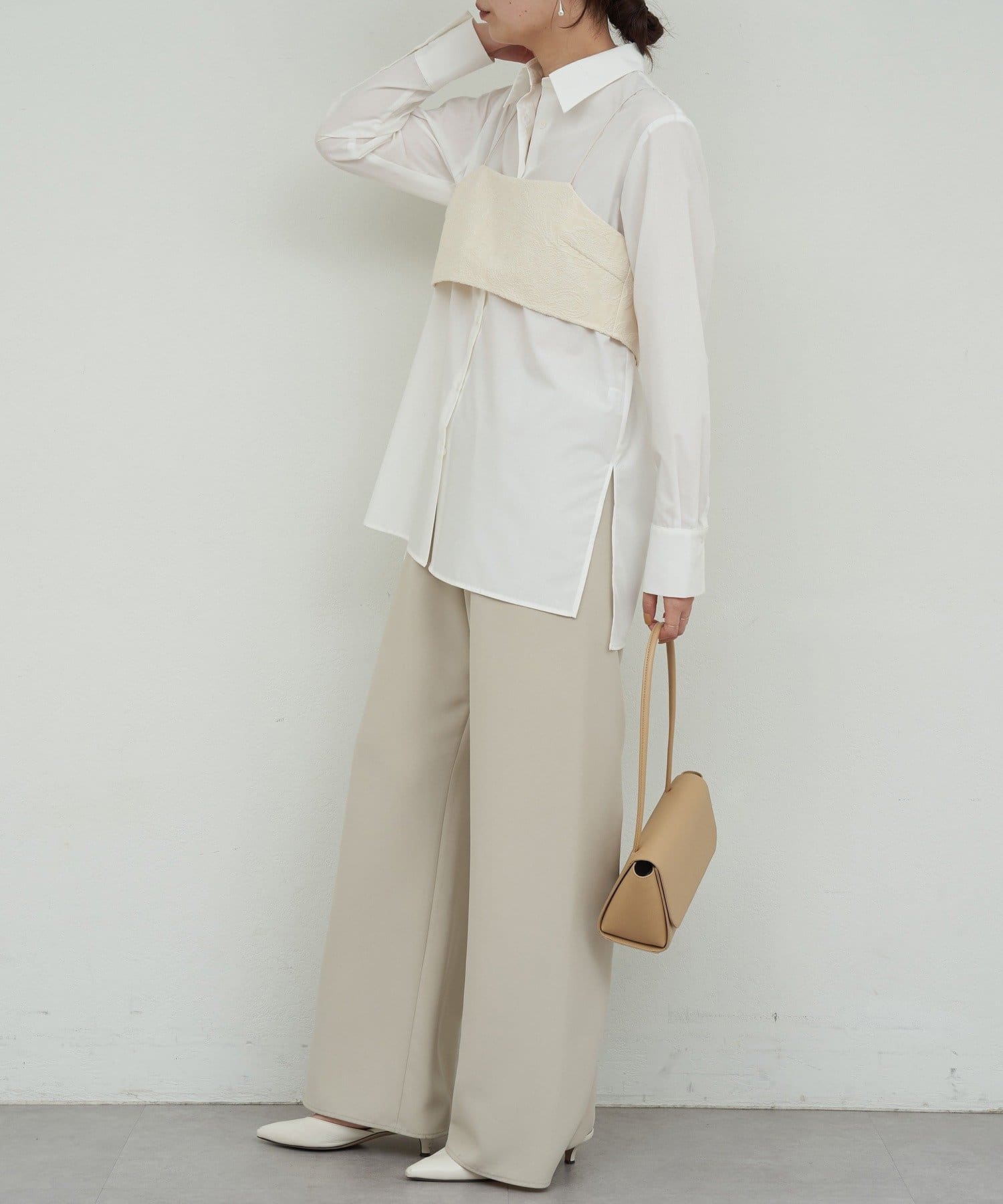 ●立体感のある素材が華やかな印象を与えるキャミソール。