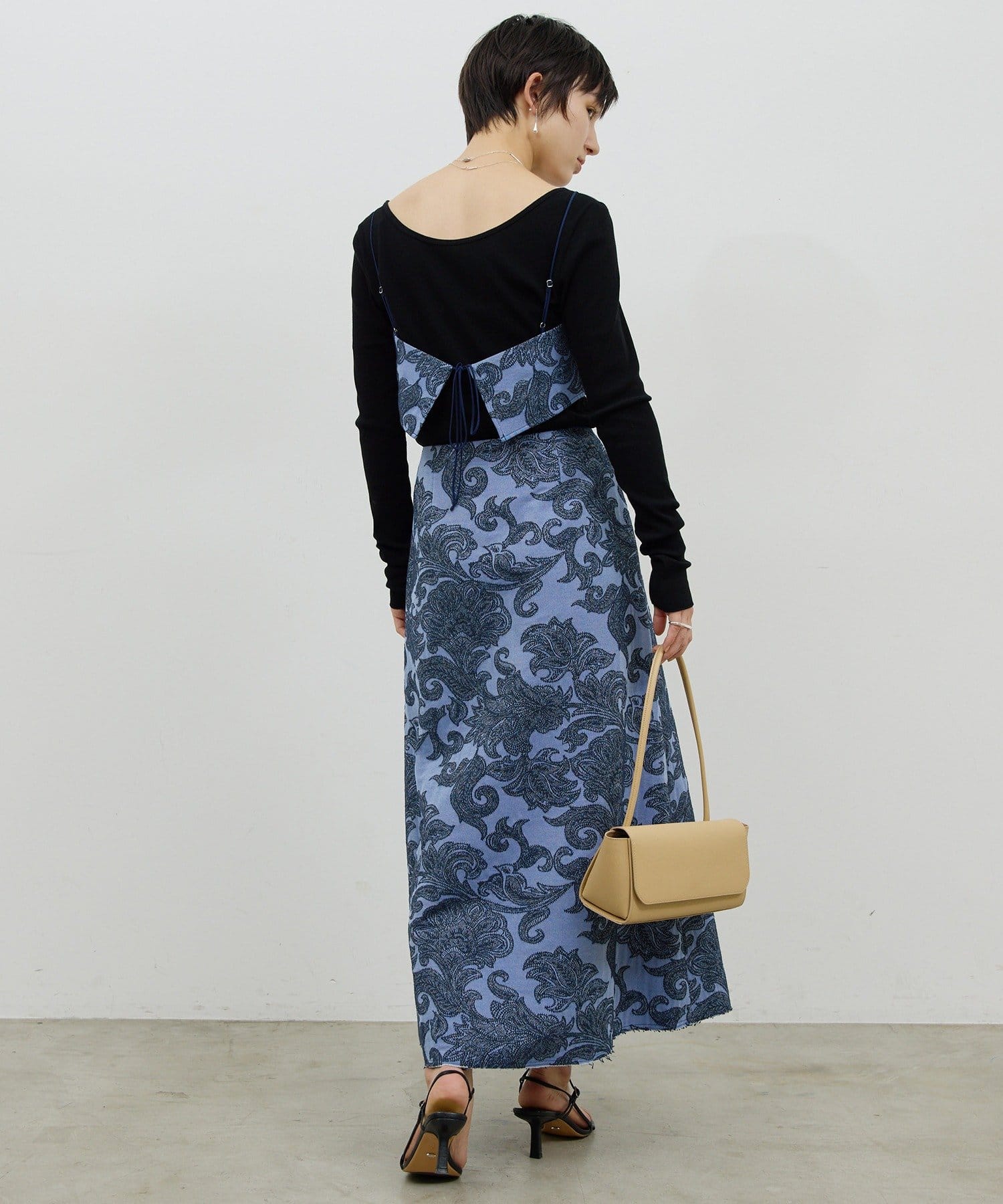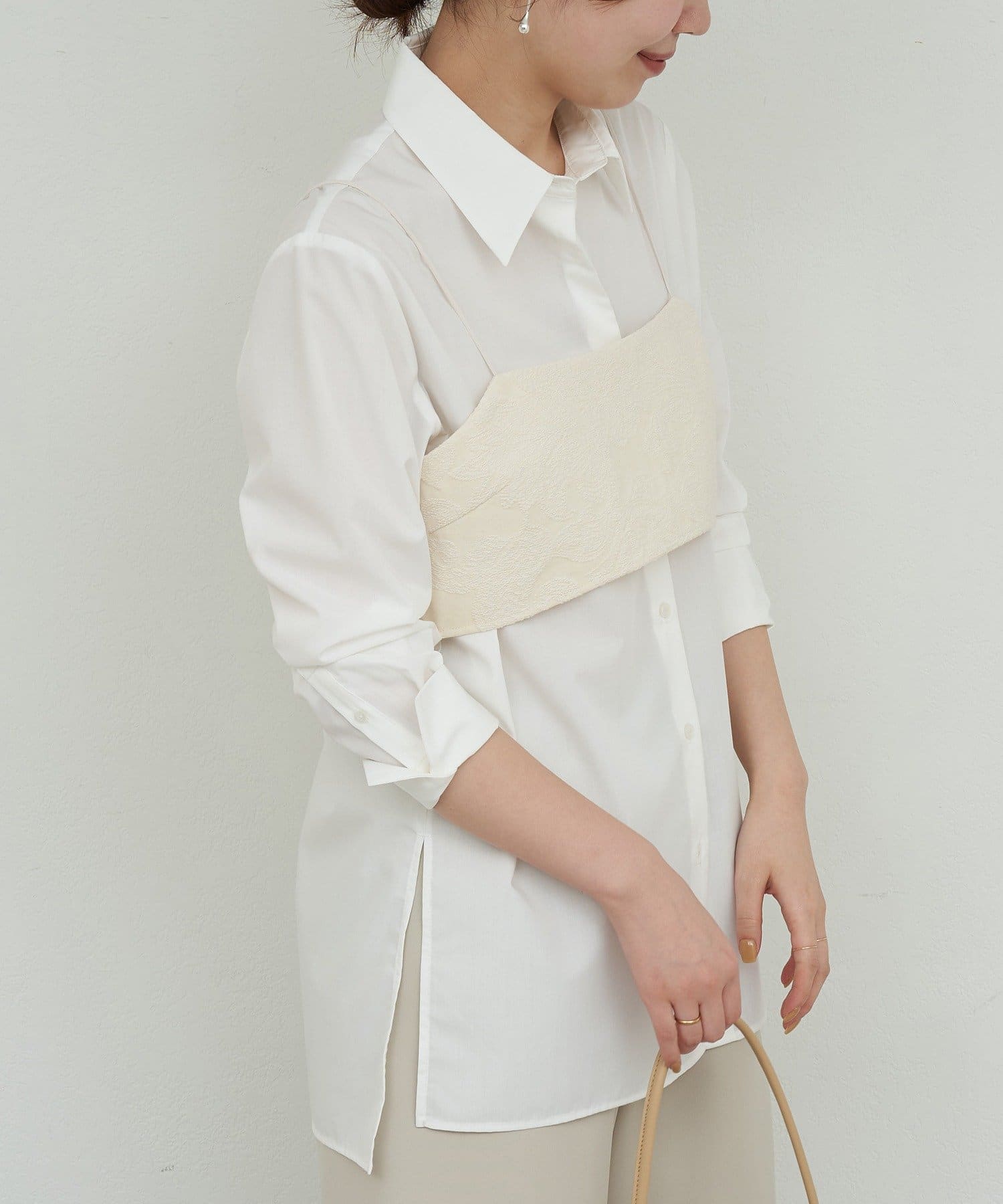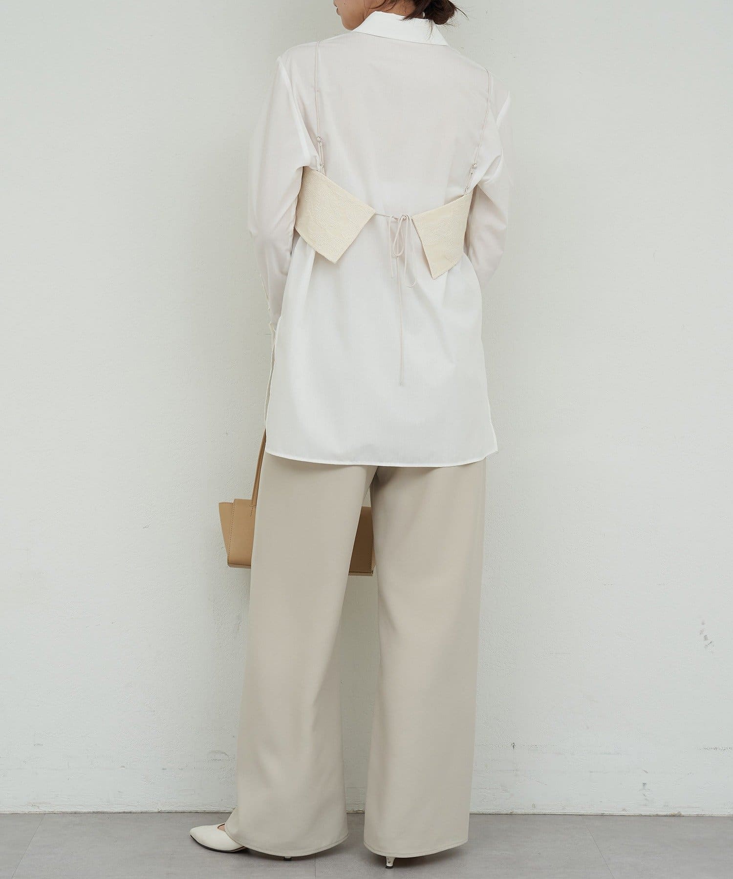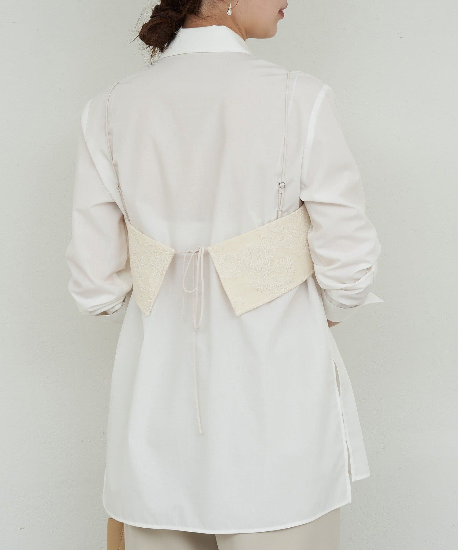 ●華奢で女性らしい肩紐とバックリボンで長さの調節が可能。
