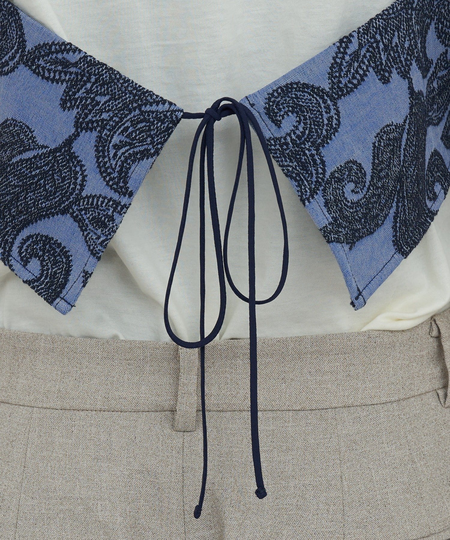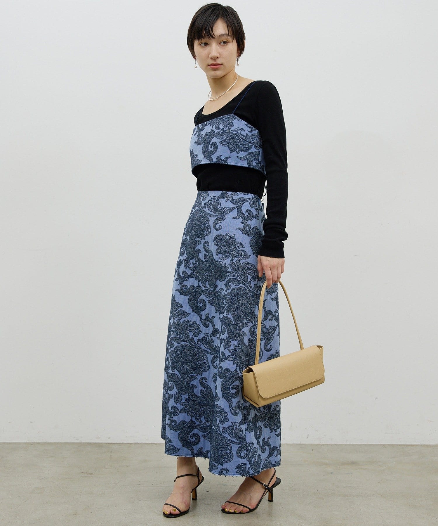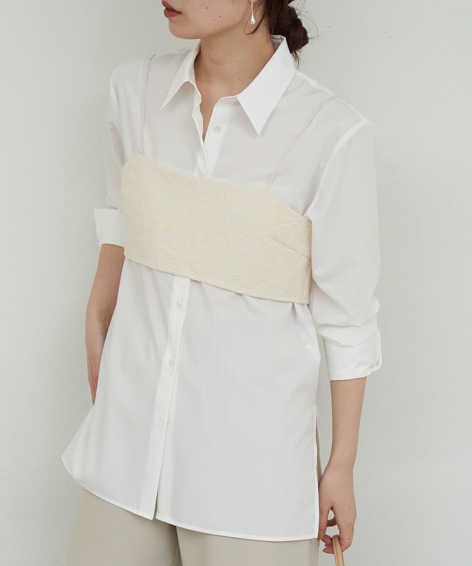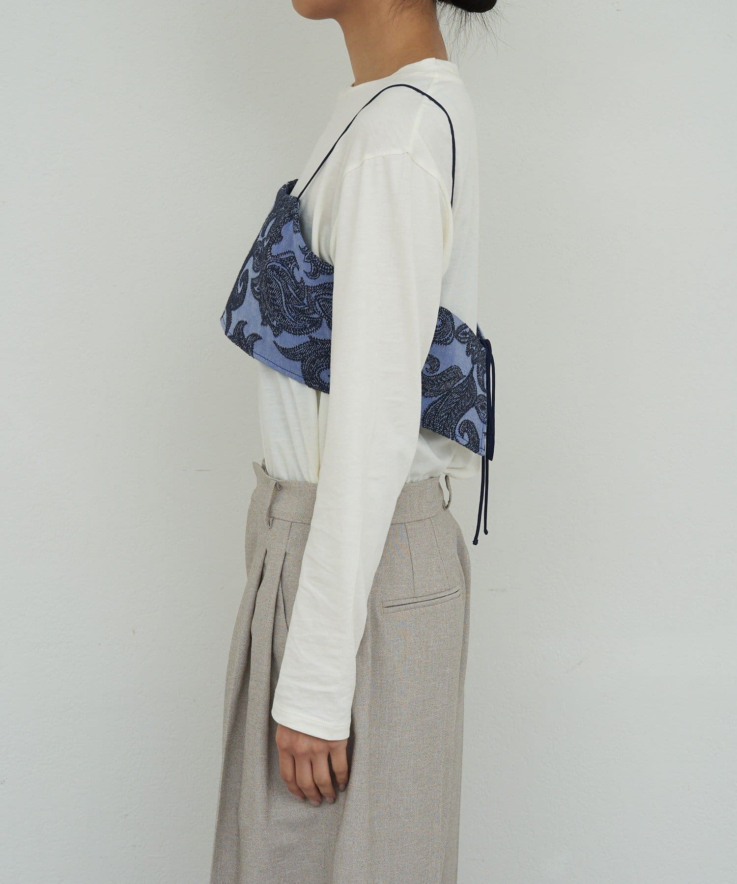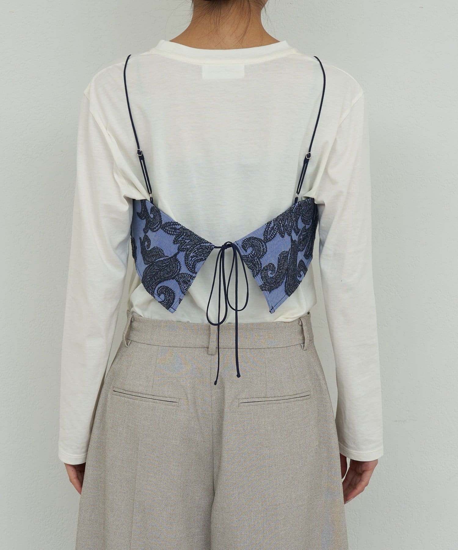 ●華奢で女性らしい肩紐とバックリボンで長さの調節が可能。
