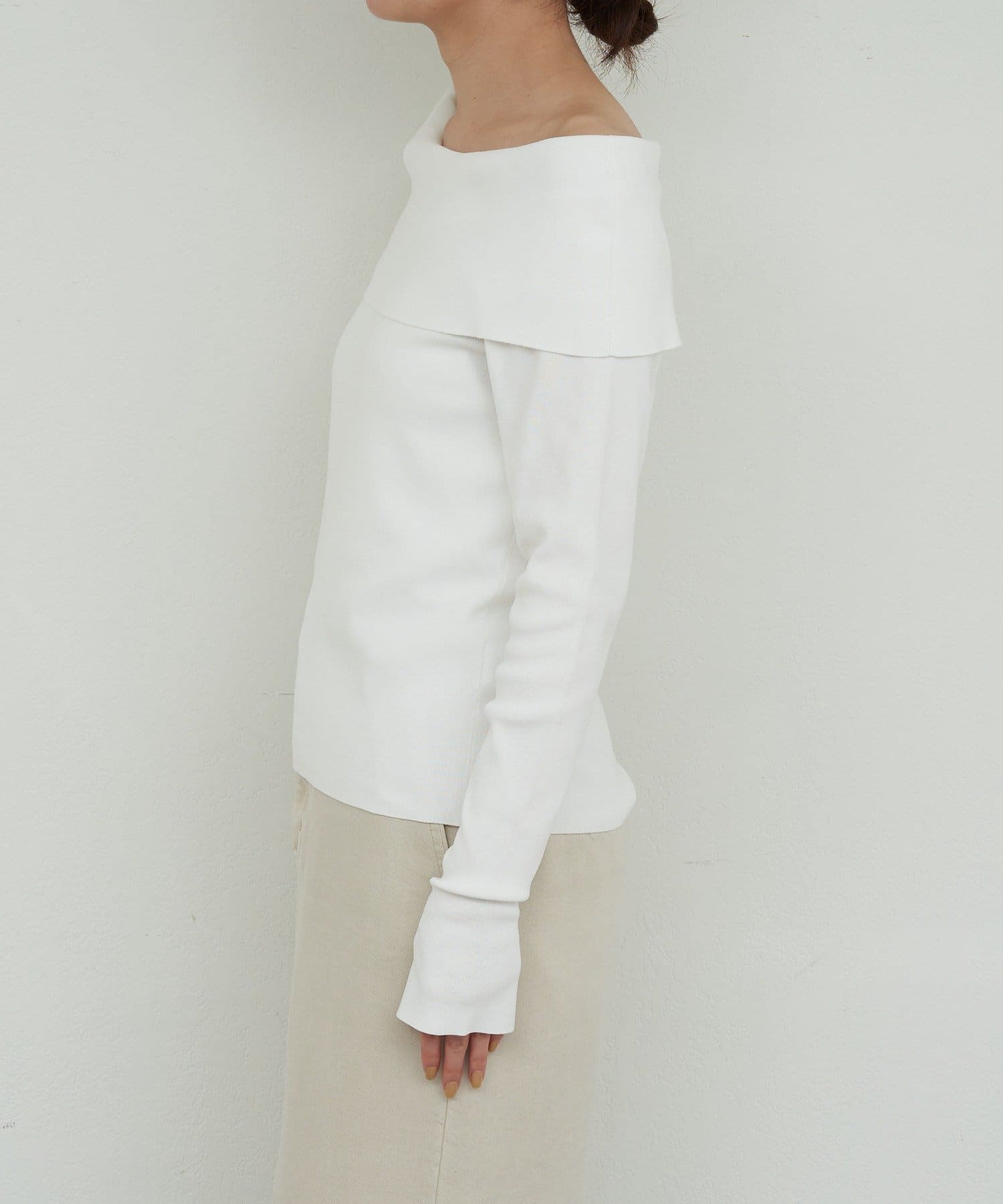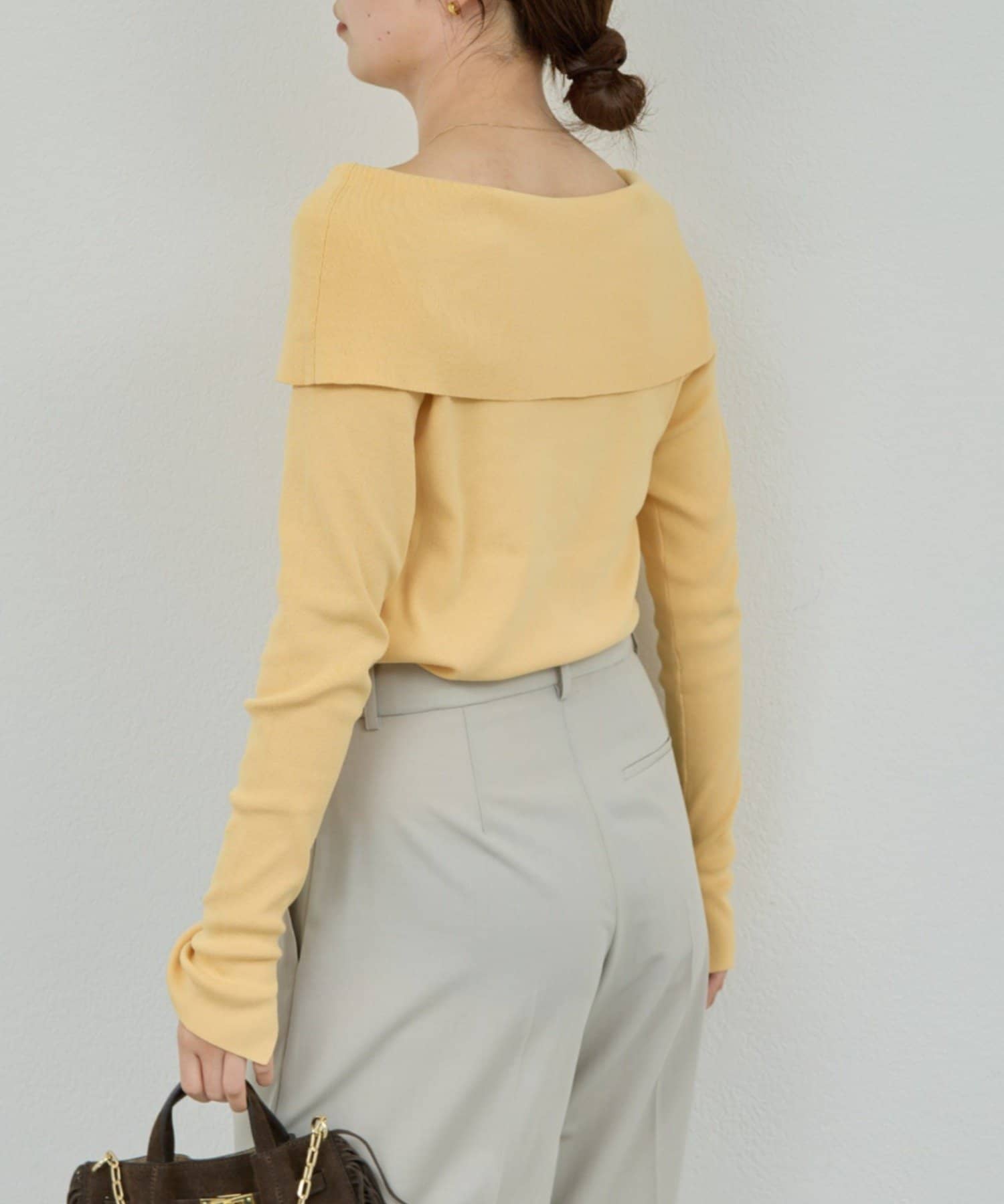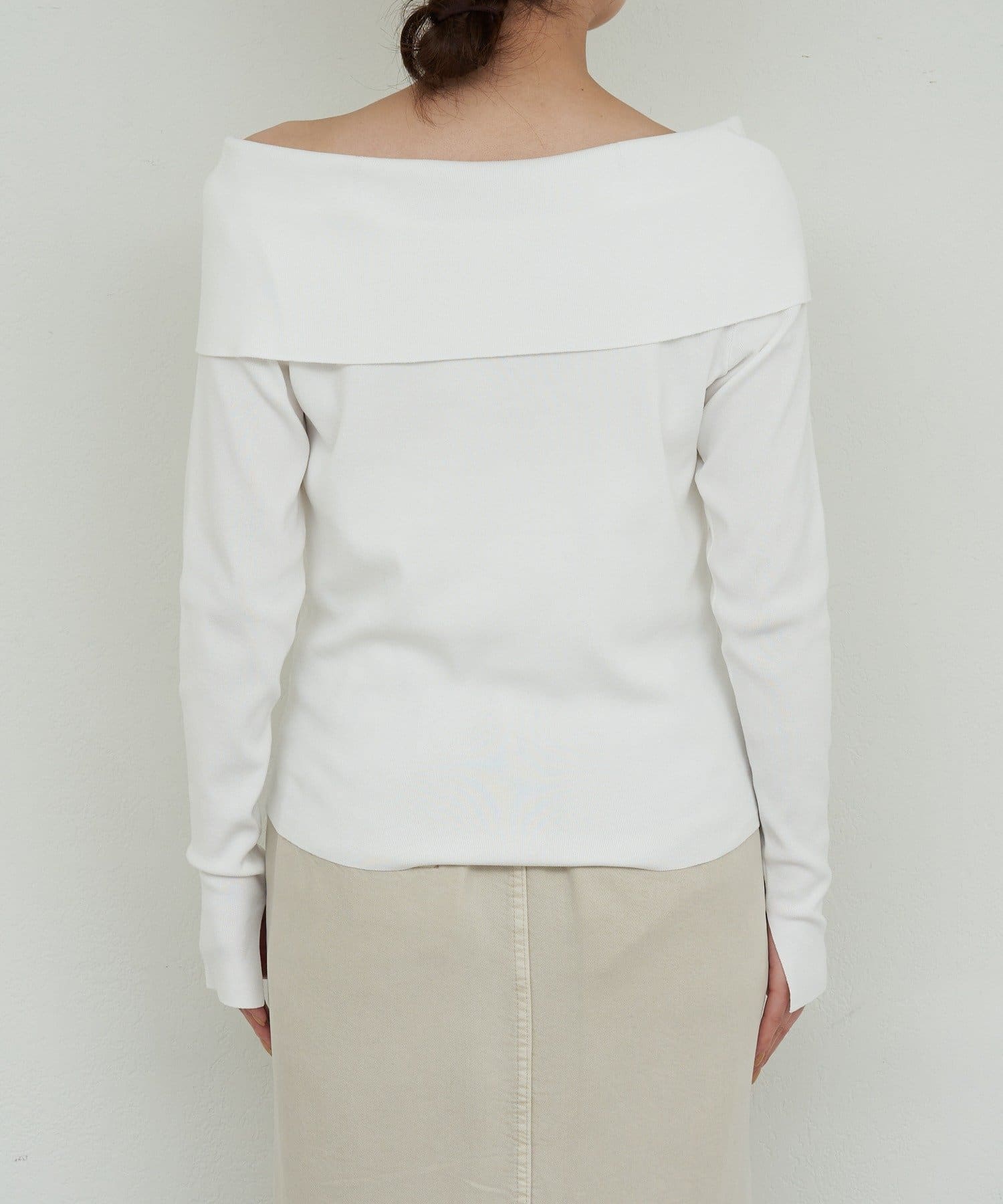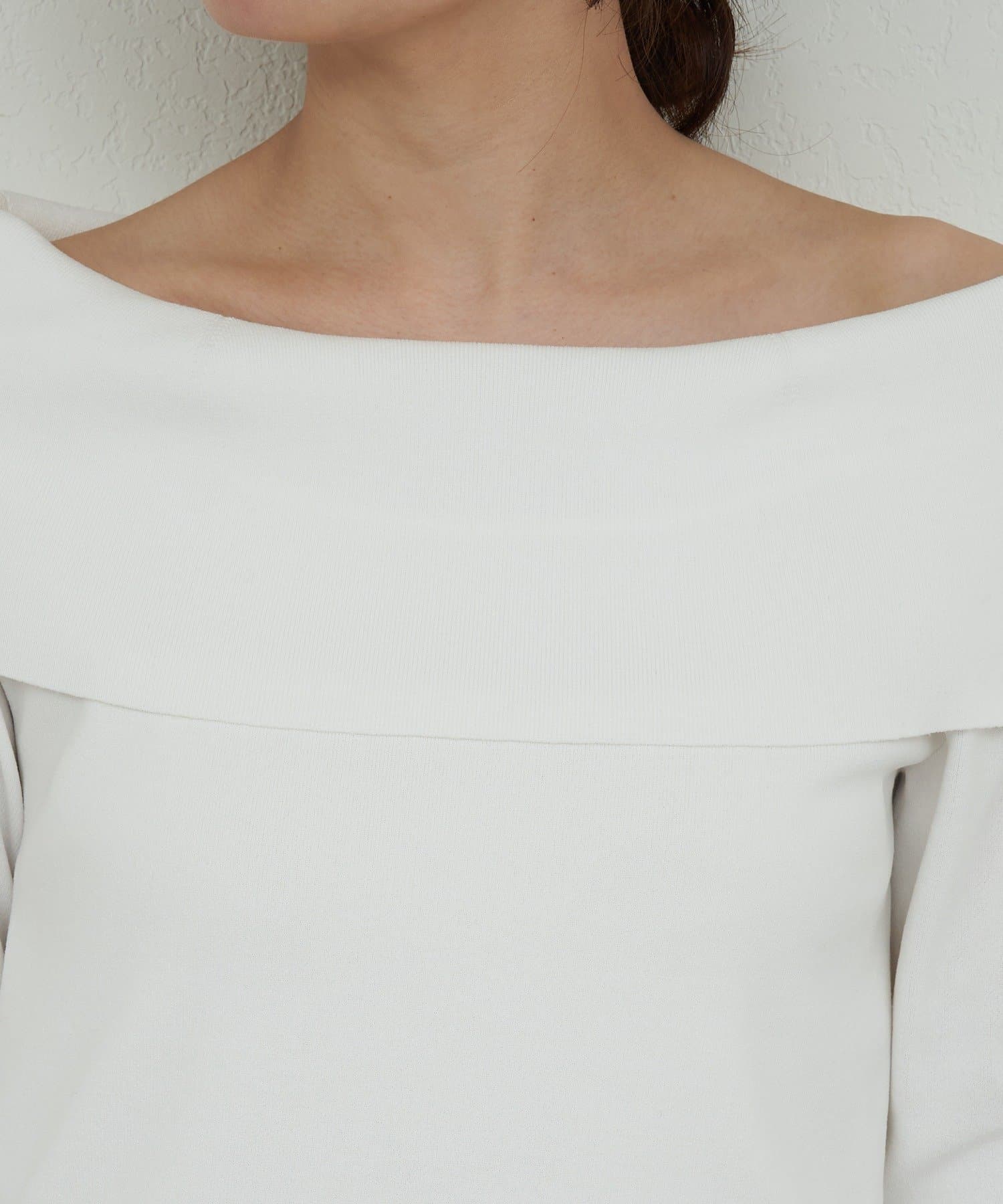 エレガントな雰囲気を纏ったオフショルニット