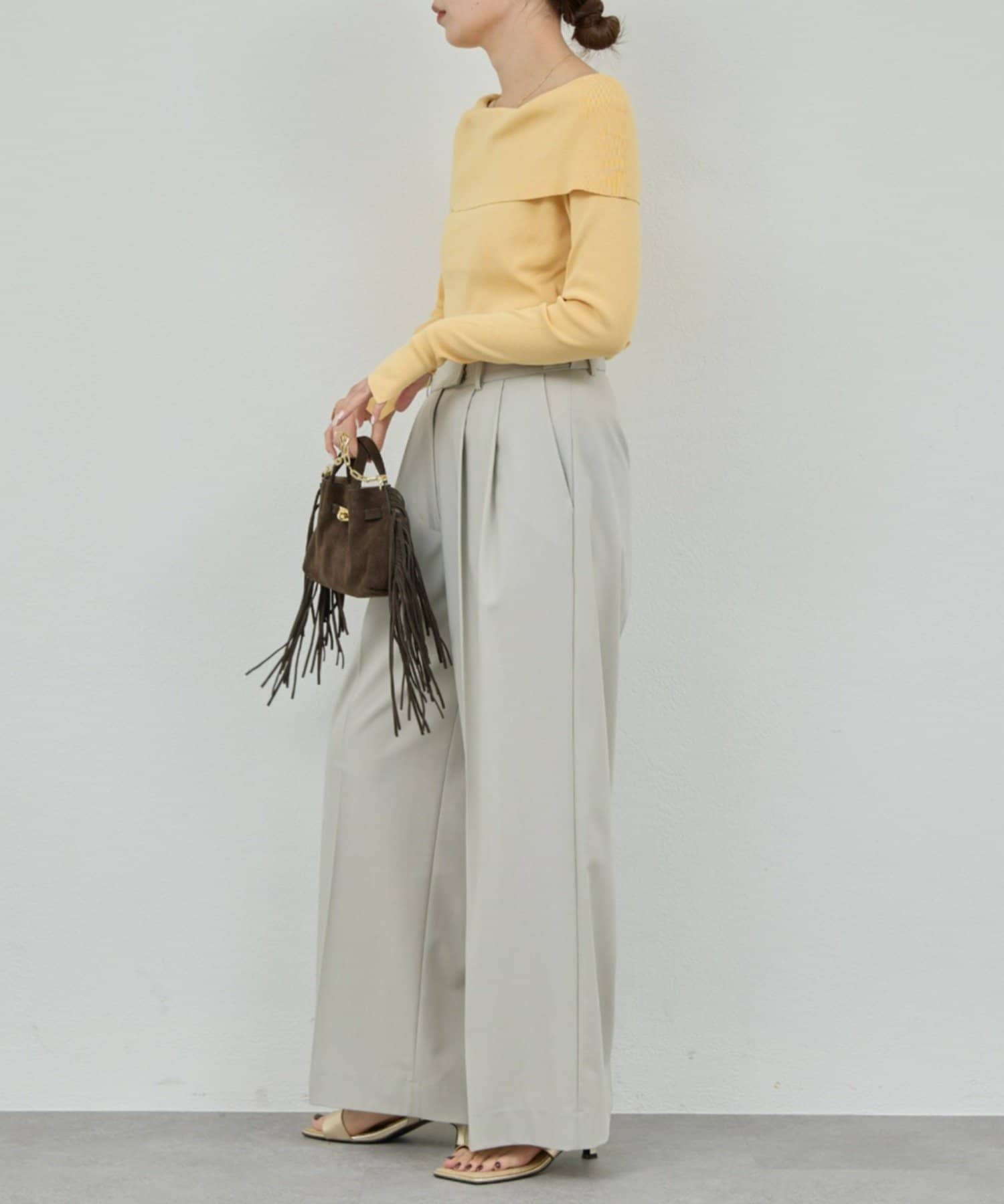 ●ワイドパンツやスカートと合わせてトレンド感あるコーディネートに。