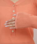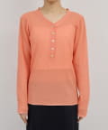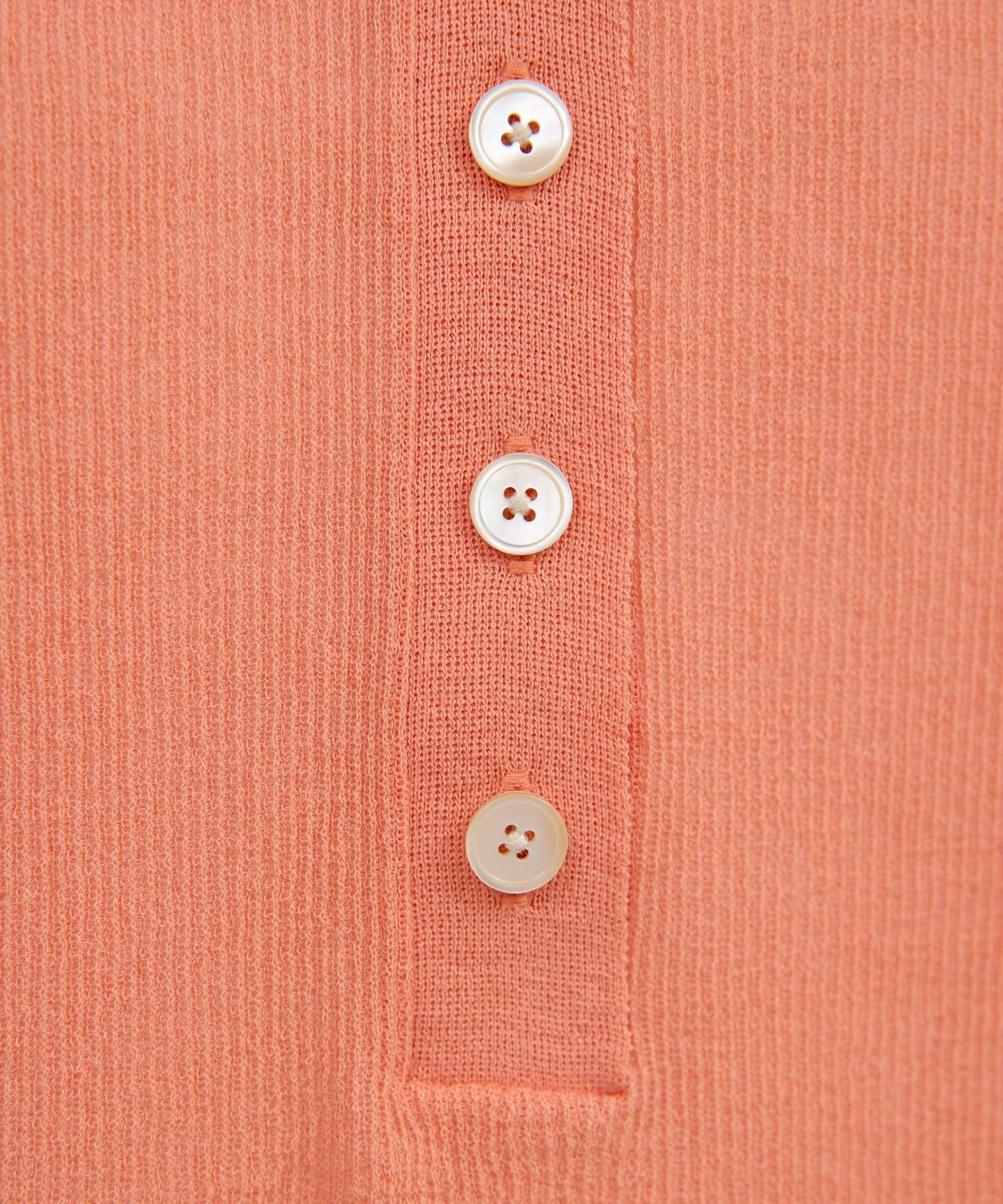 ●鎖骨が美しく見えるヘンリーネックデザイン。