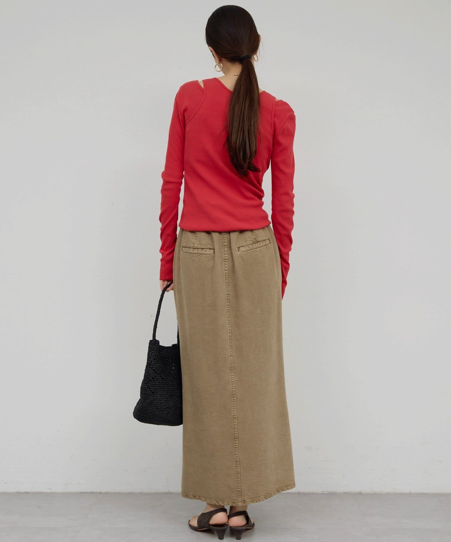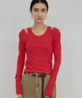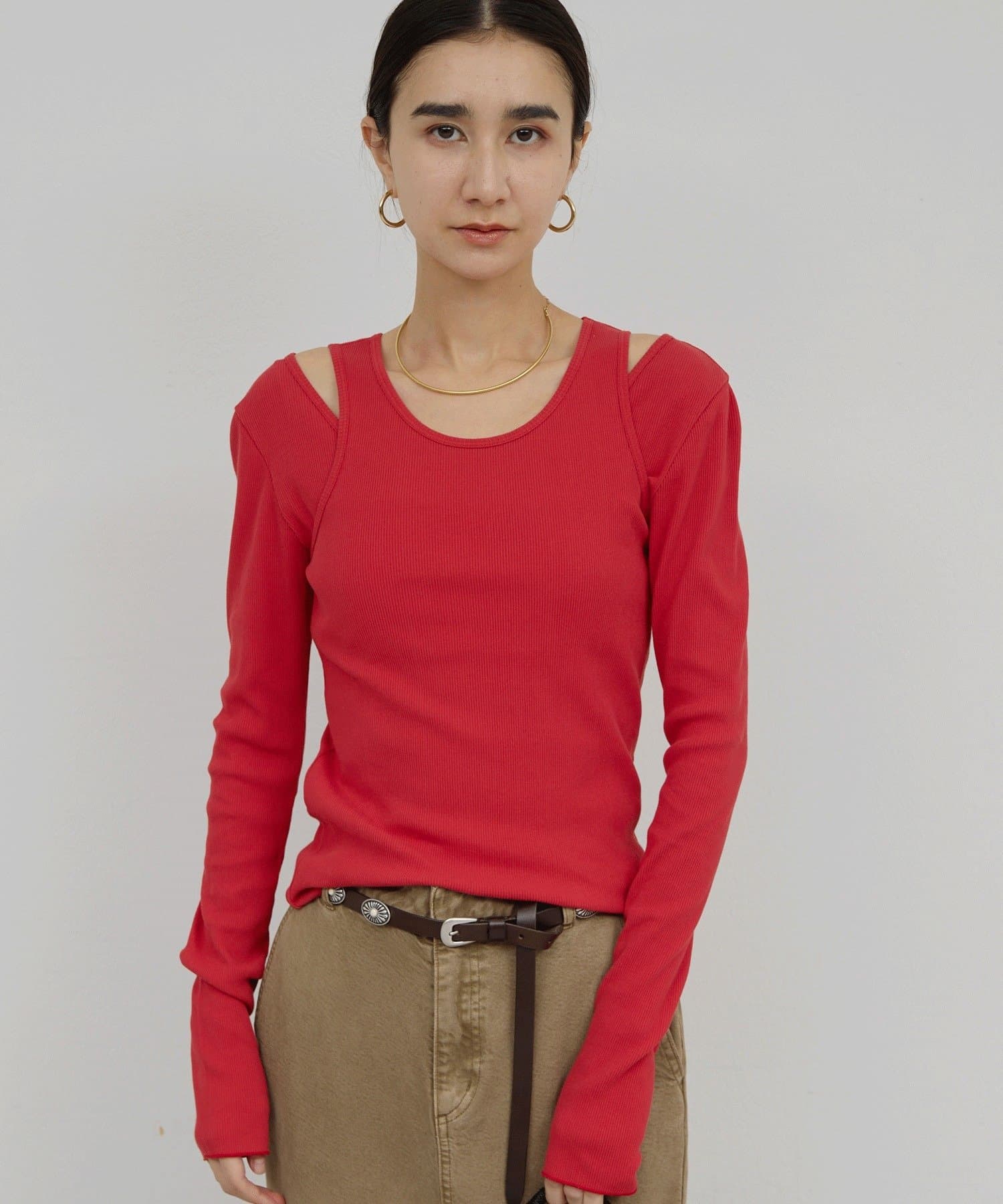 ●程よくえぐれたショルダーデザインはヘルシーな印象をプラス。