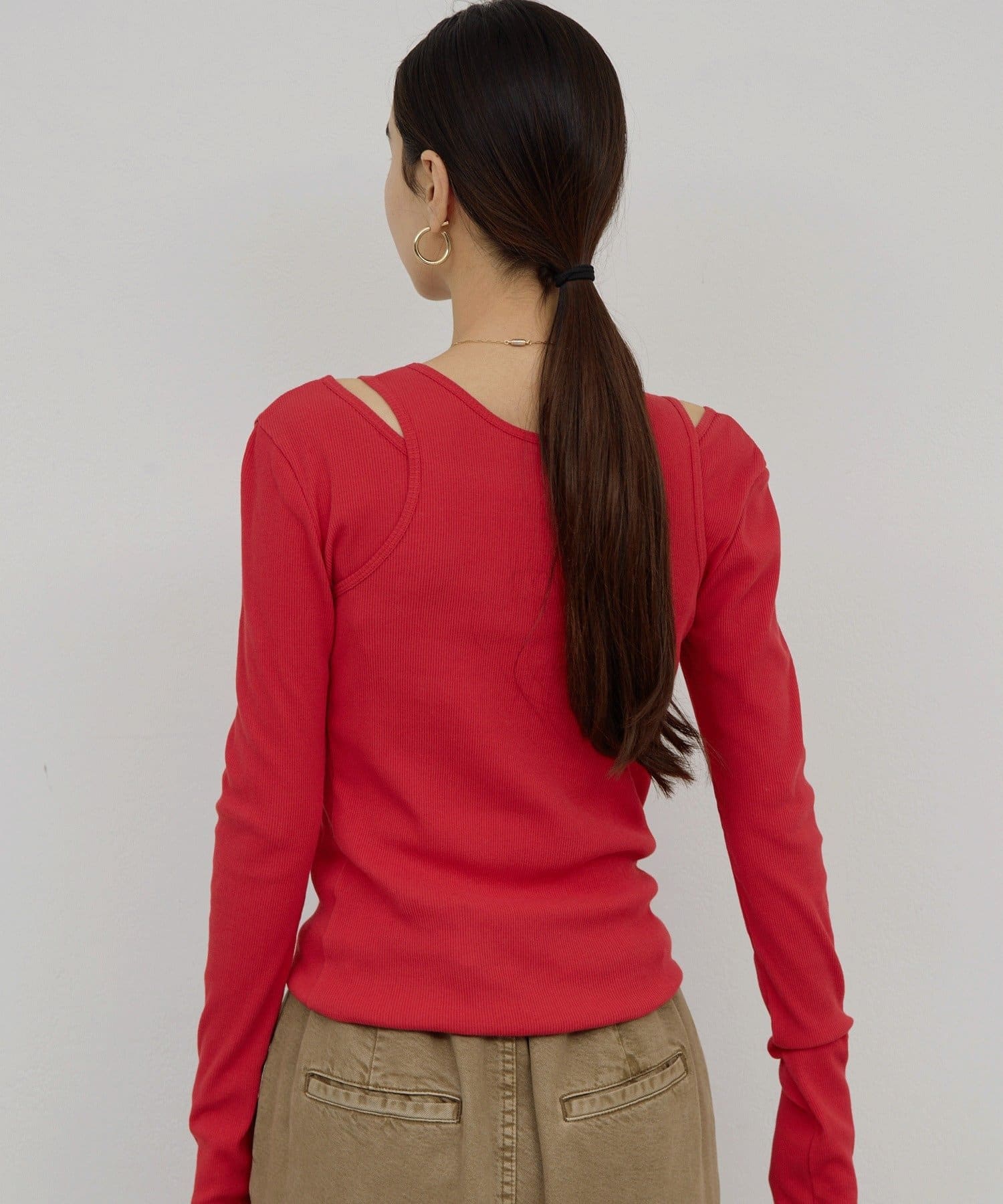 ●1枚でもインナーとしても活躍するコンパクトなシルエット。