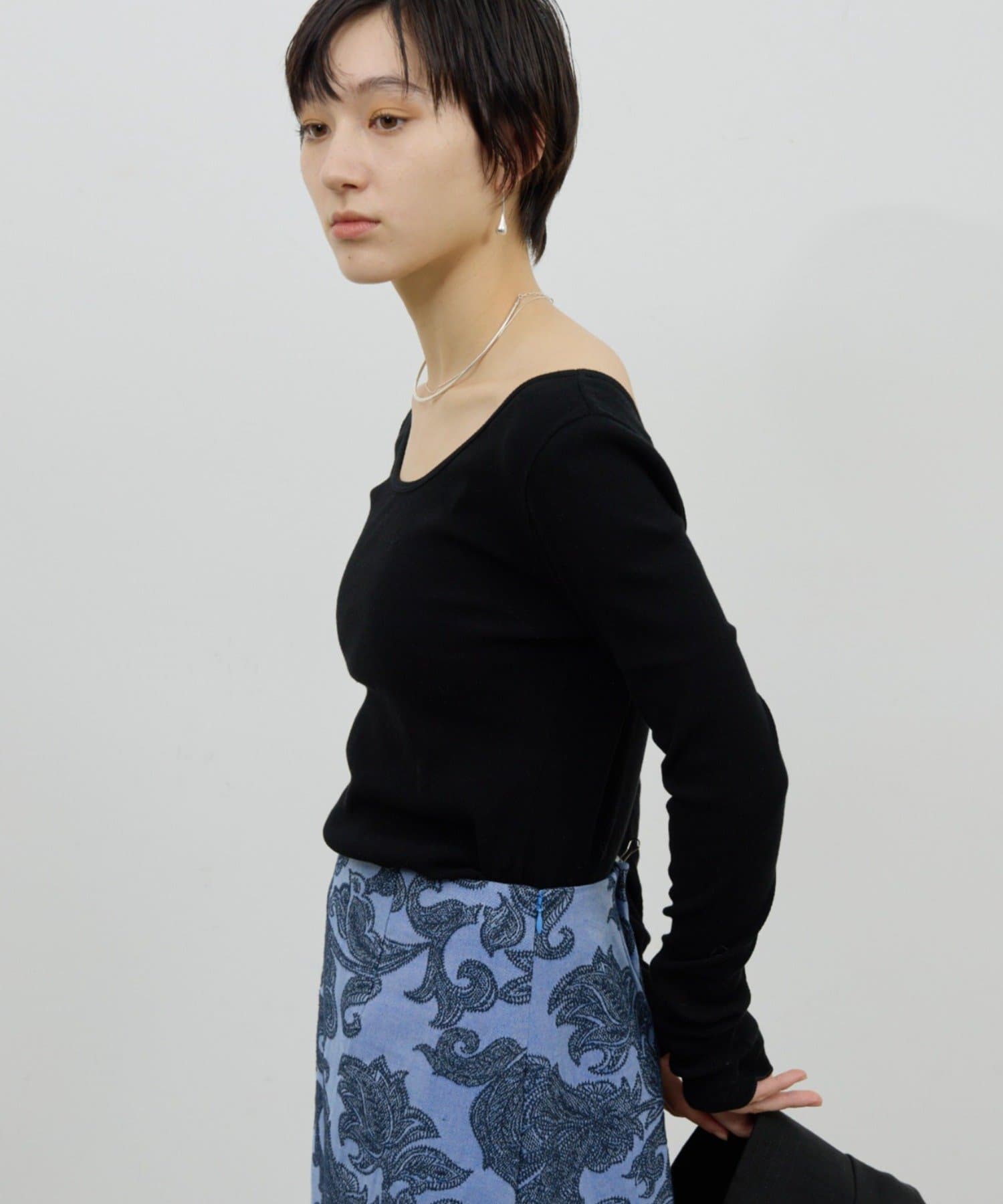 ●女性らしさを引き立てる、ワイドなネックデザイン。