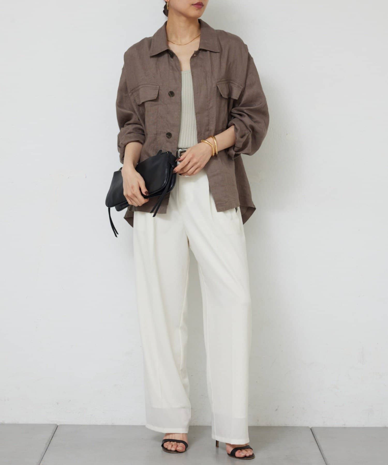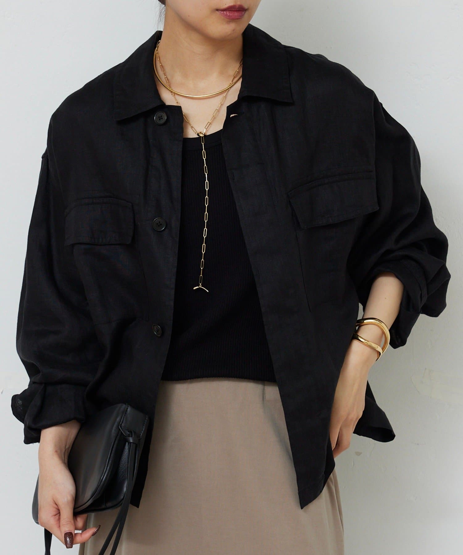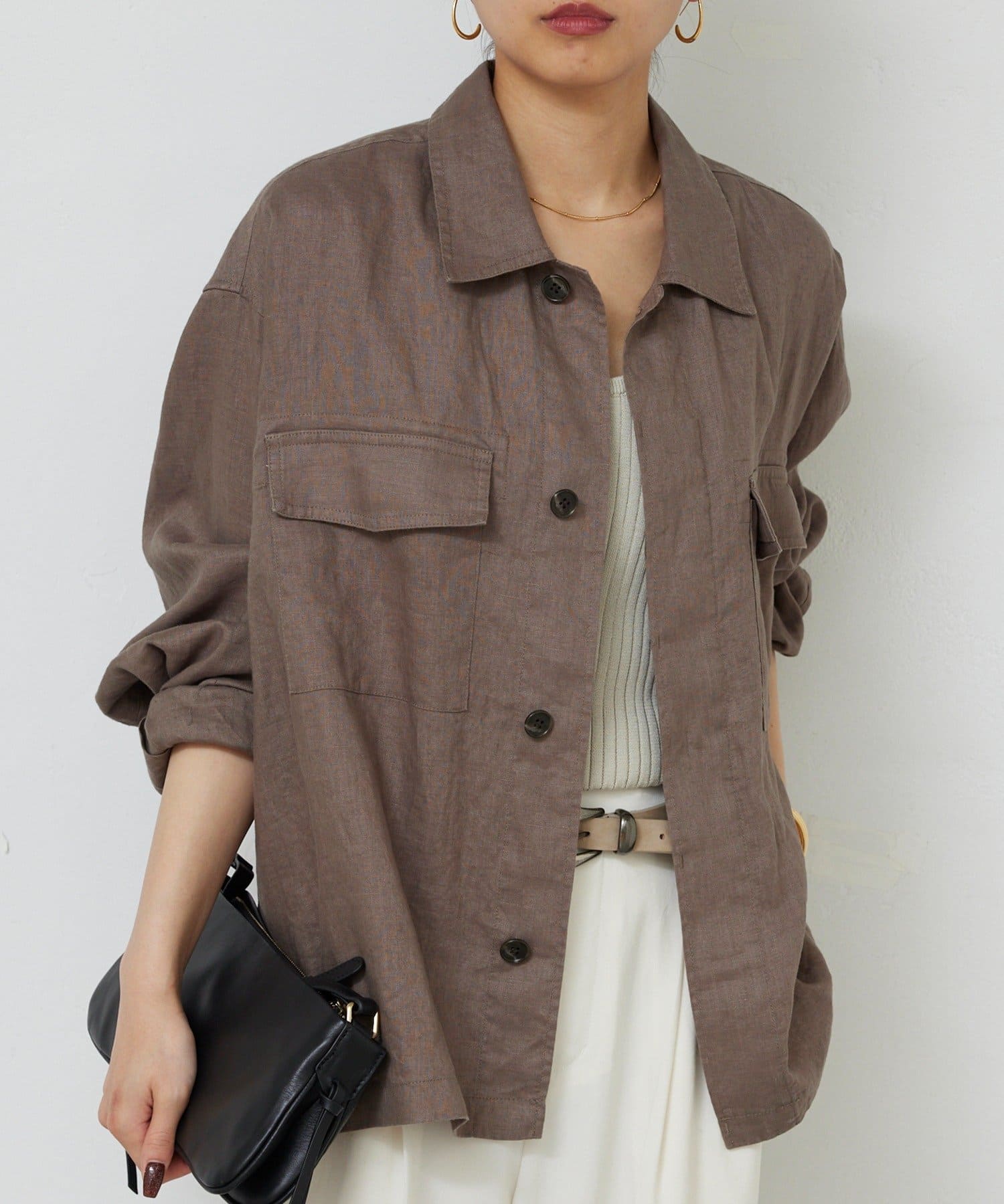 • GALLARDAGALANTE(ガリャルダガランテ) 【近日予約開始】リネンミリタリーシャツブルゾン