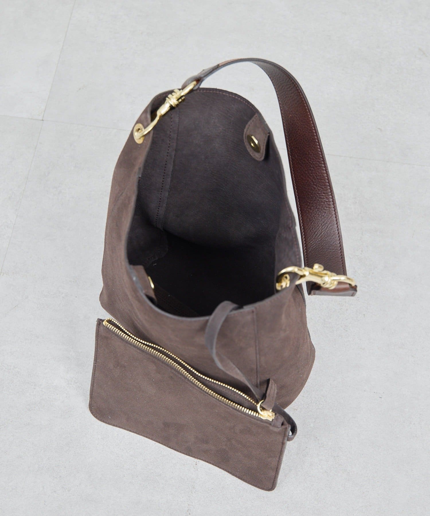 ●抜け感のある柔らかい素材のスウェードバッグ。