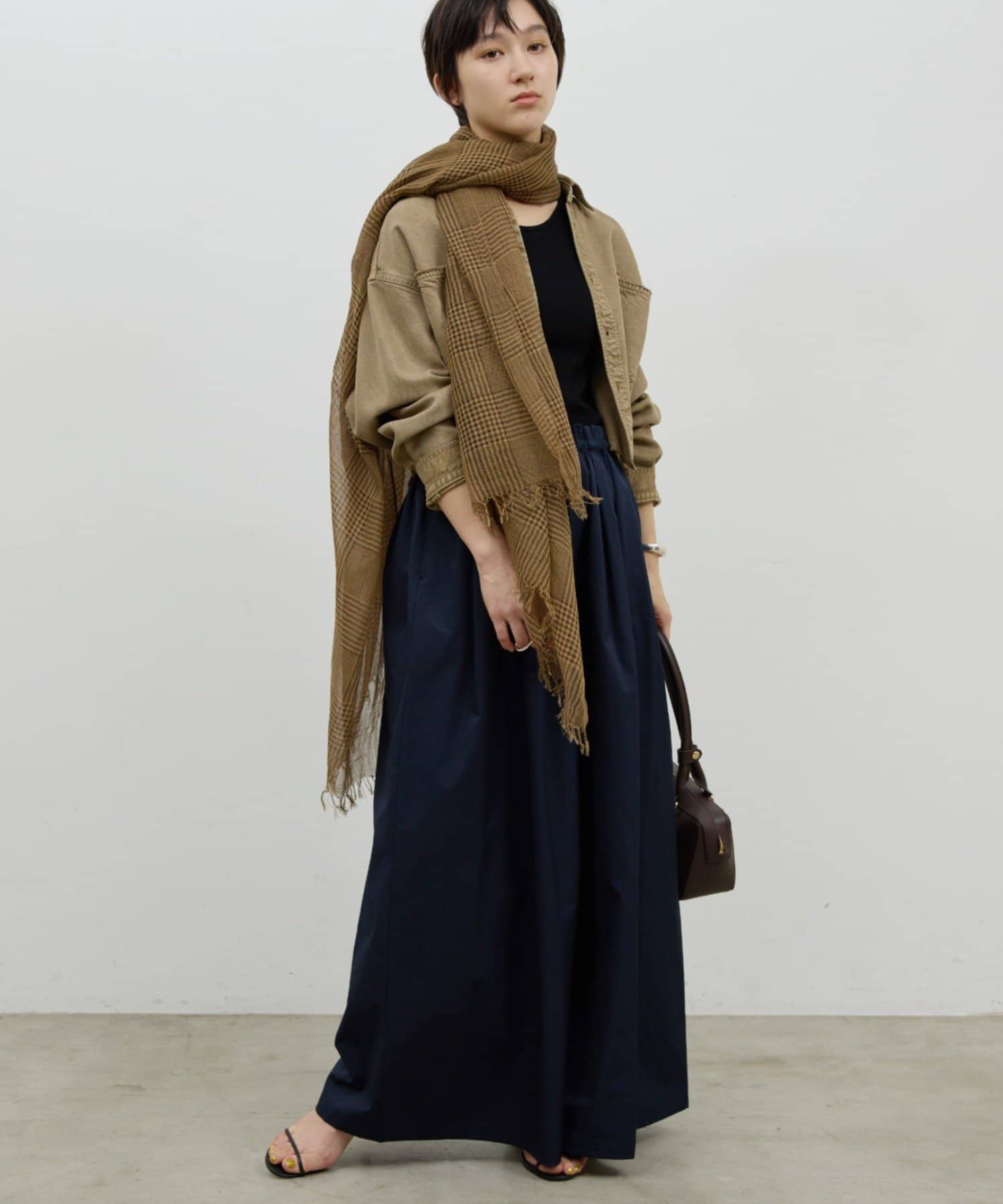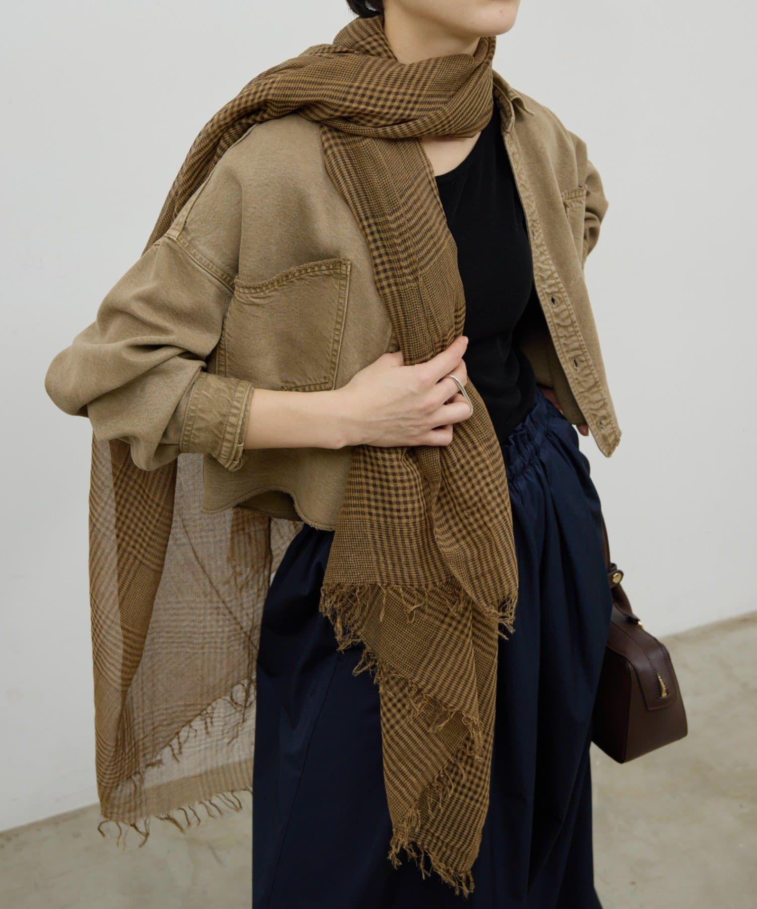 ●巻くだけでコーディネートを引き締めてくれる気品溢れる1枚。