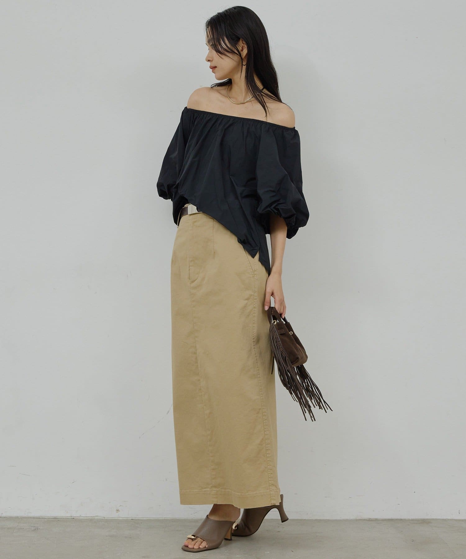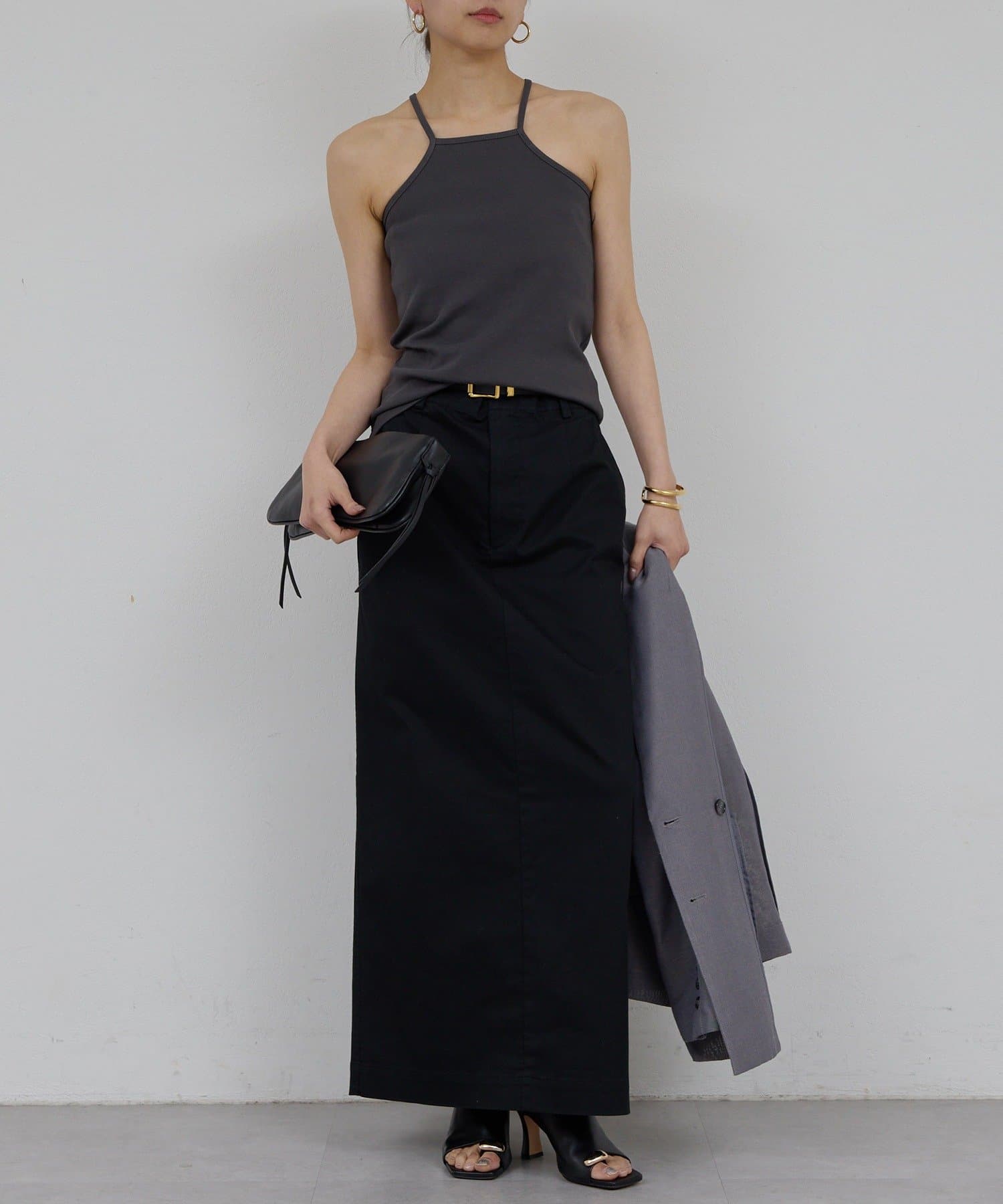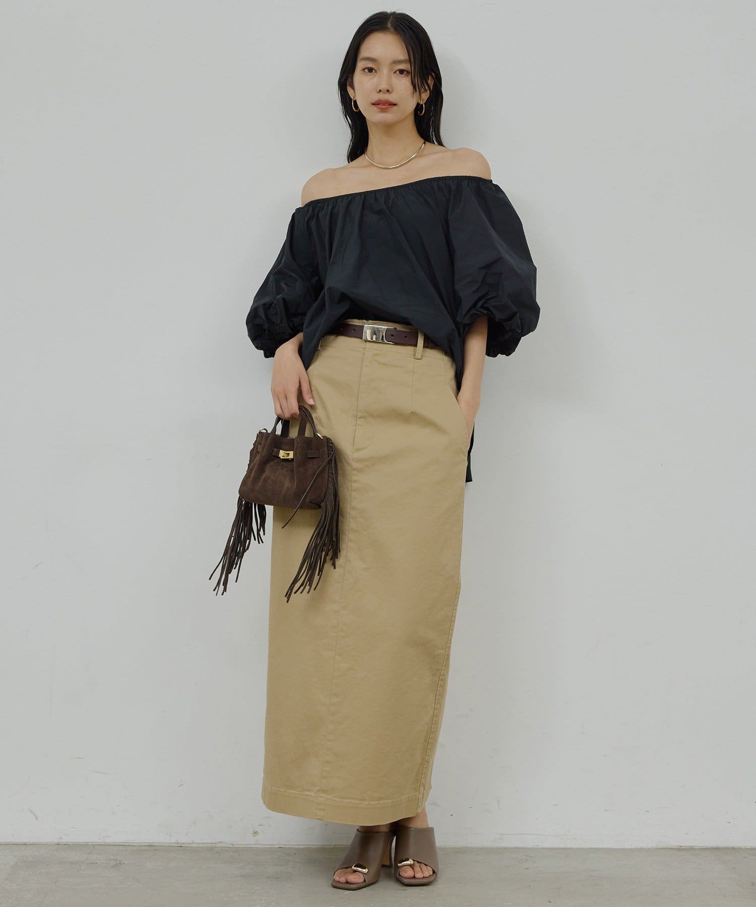 カジュアルさと女性らしさを融合したチノストレッチスカート