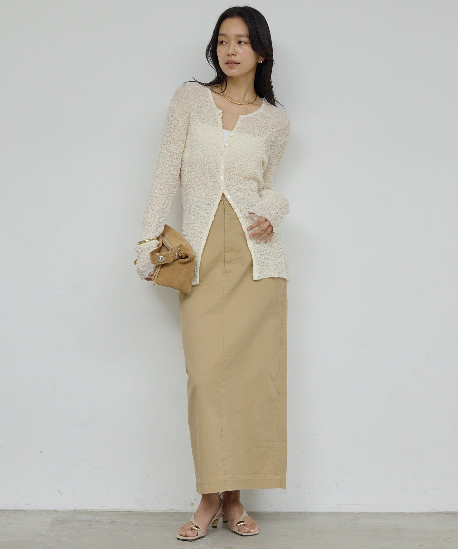 カジュアルさと女性らしさを融合したチノストレッチスカート