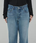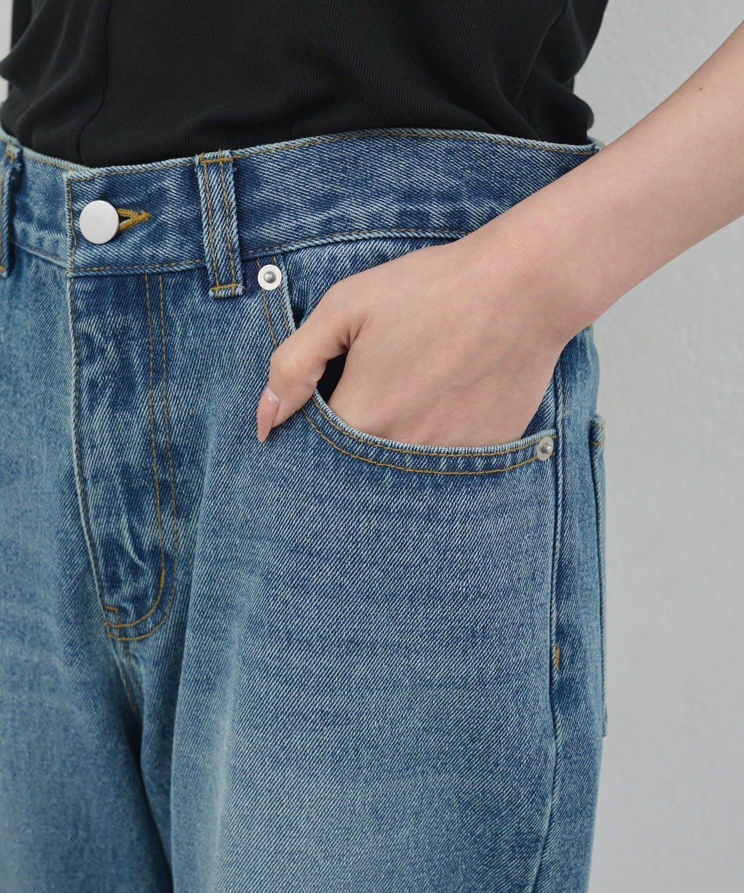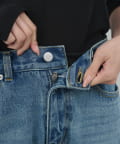 ●高めのウエスト位置が脚長効果を演出し、トップスインも綺麗に決まるシルエット。