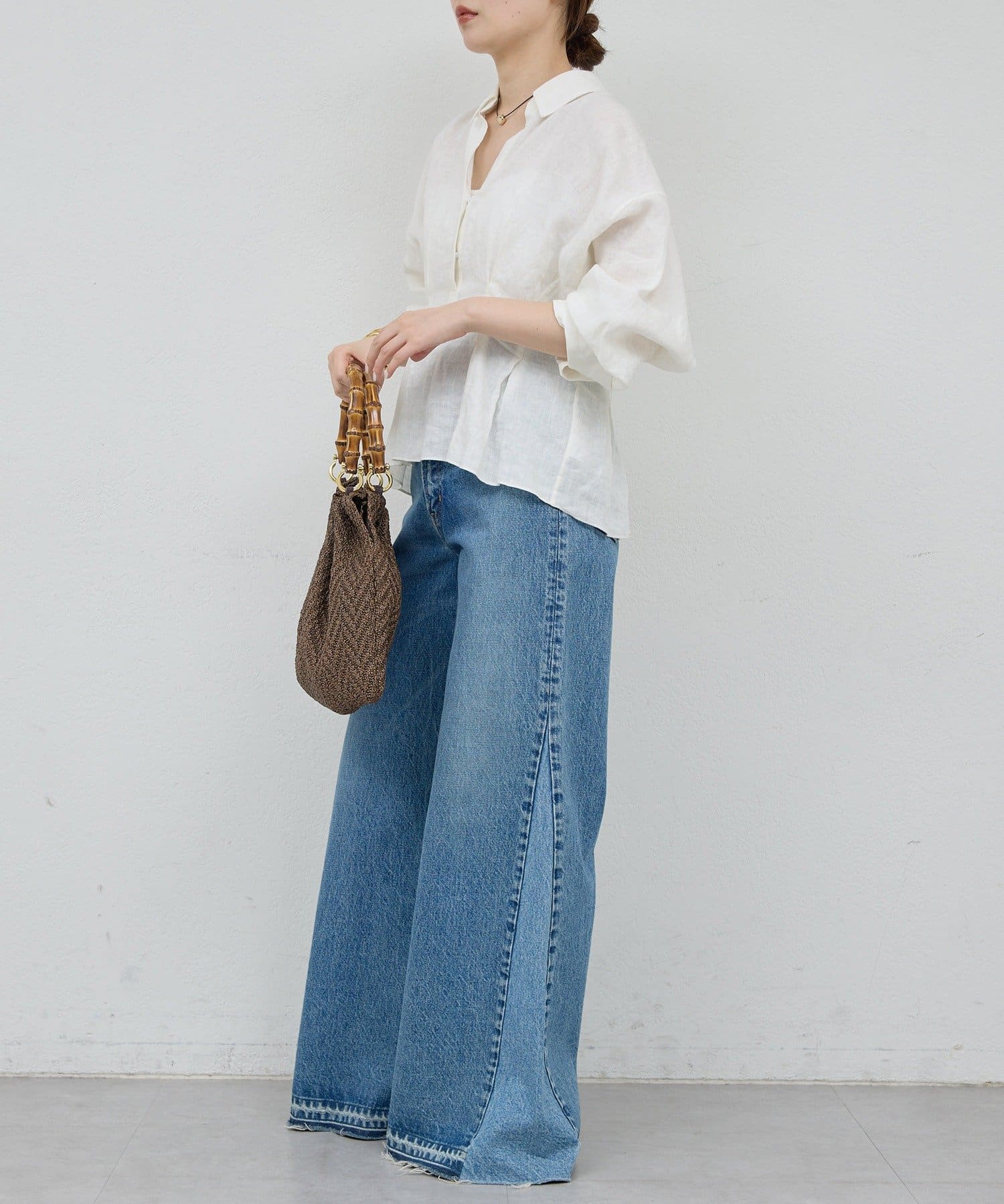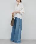 ●カジュアルにデニムやきれいめなワイドパンツなどテイストレスでマッチ。