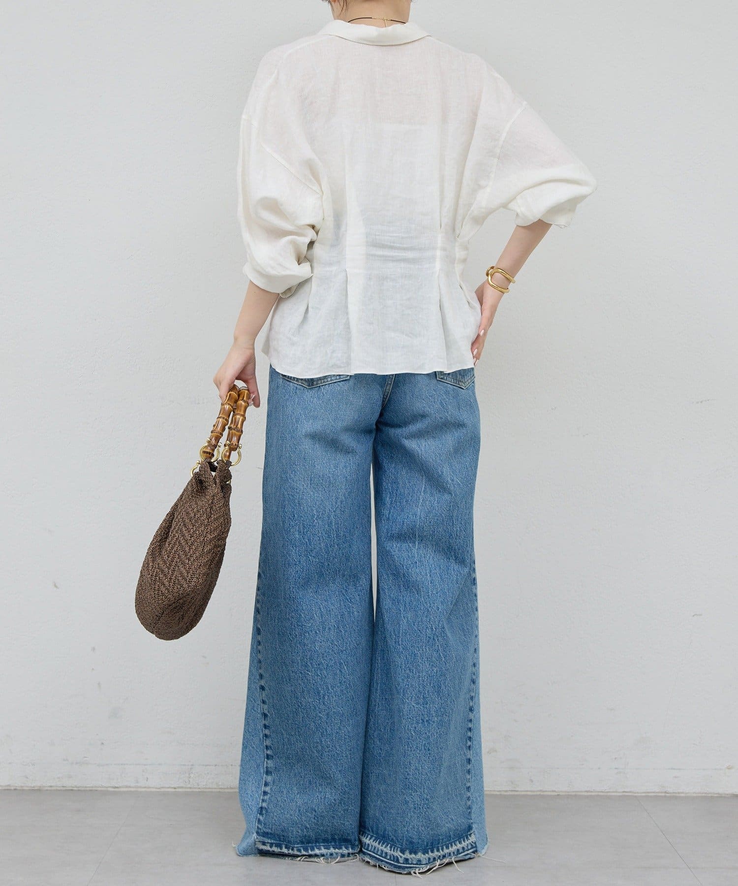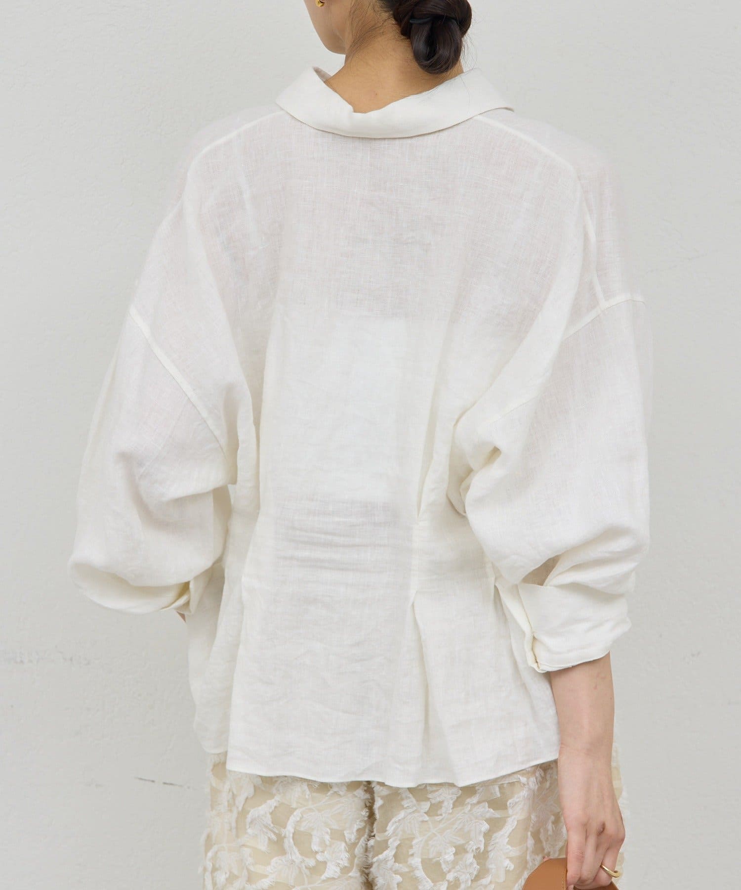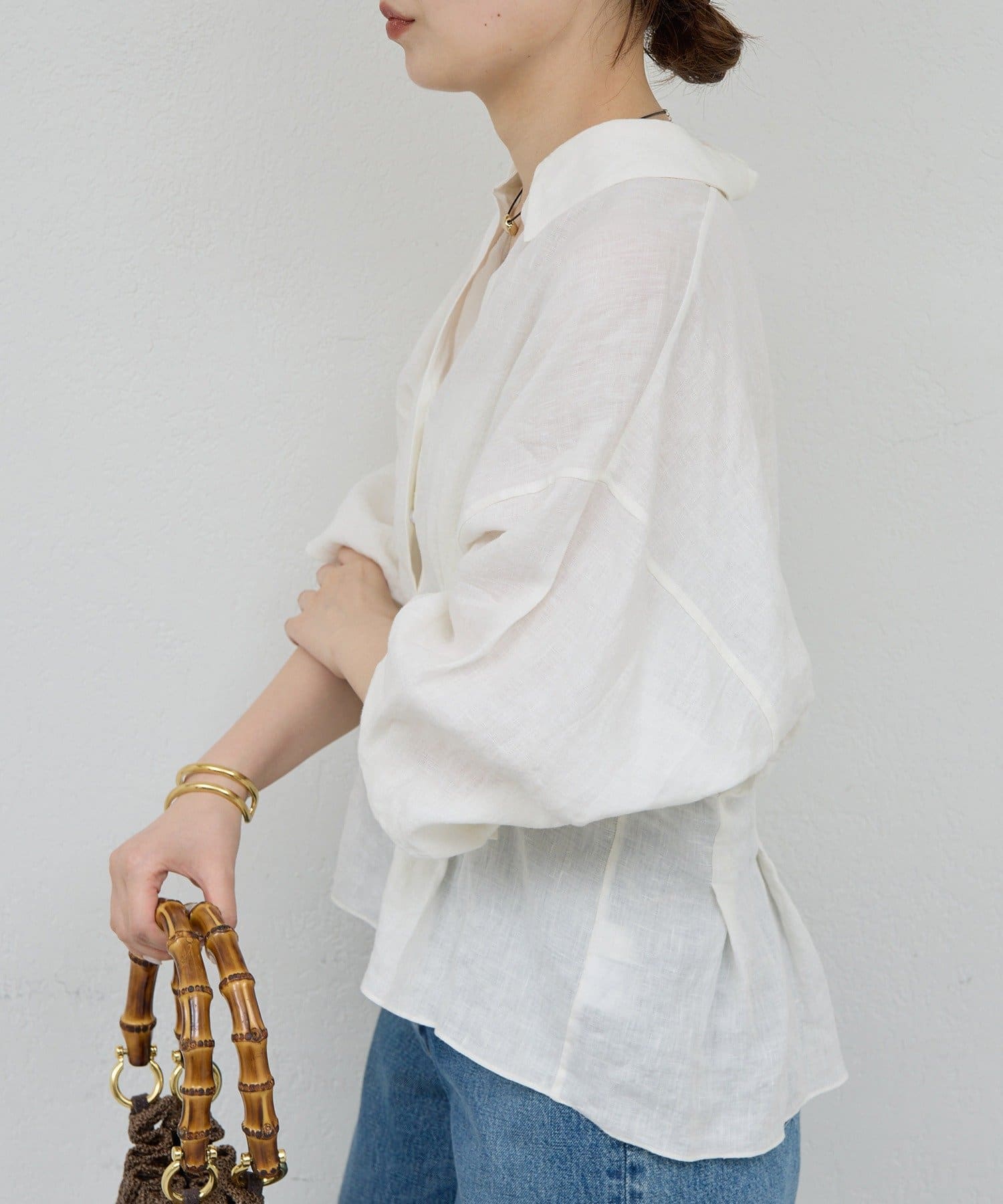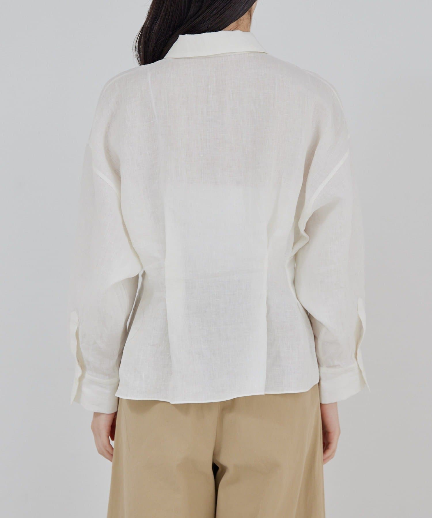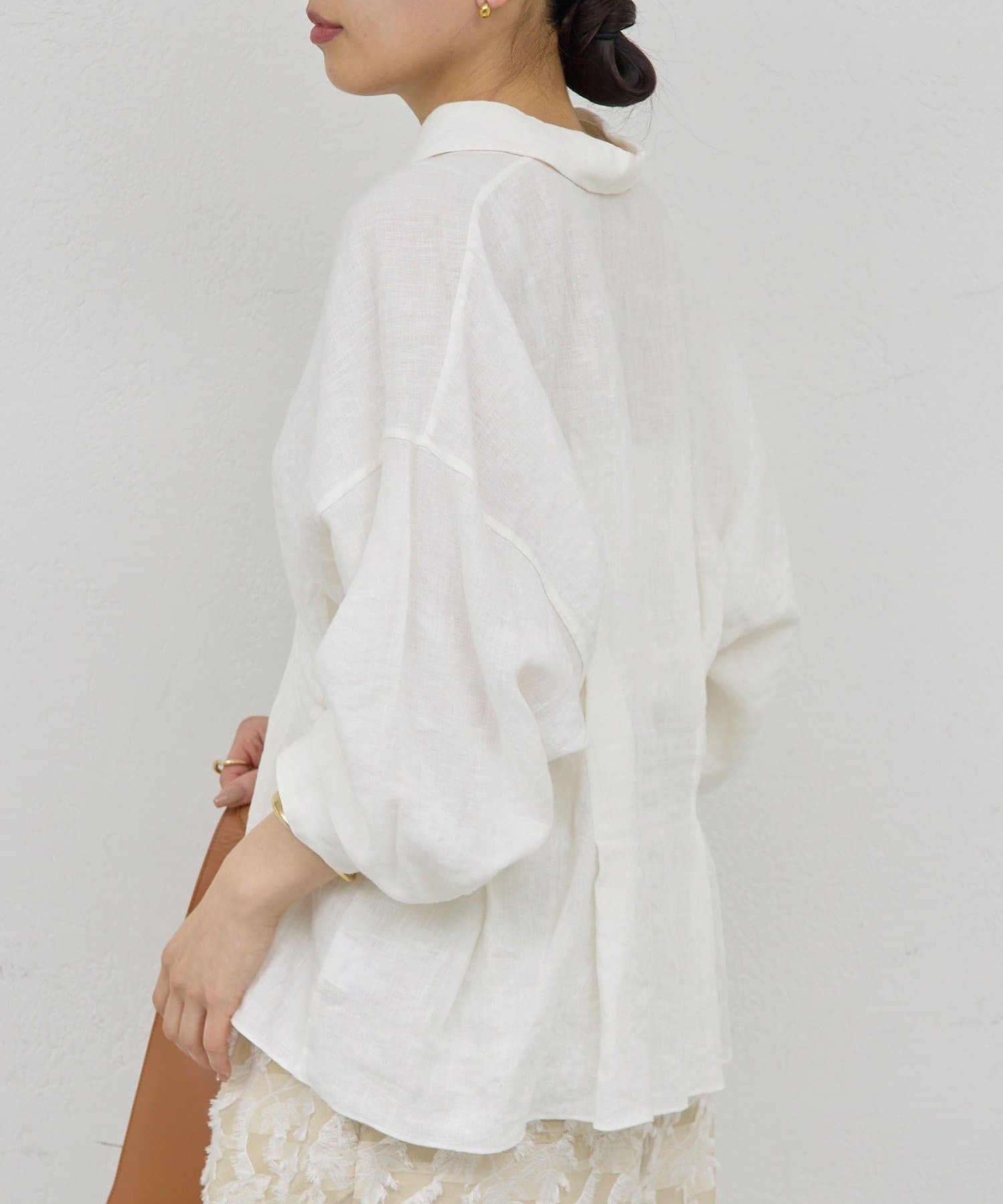 ウエストの絞りが可愛いです。パンツにもスカートにも合わせやすいです。リネン素材でも綺麗系になるのが嬉しいです。