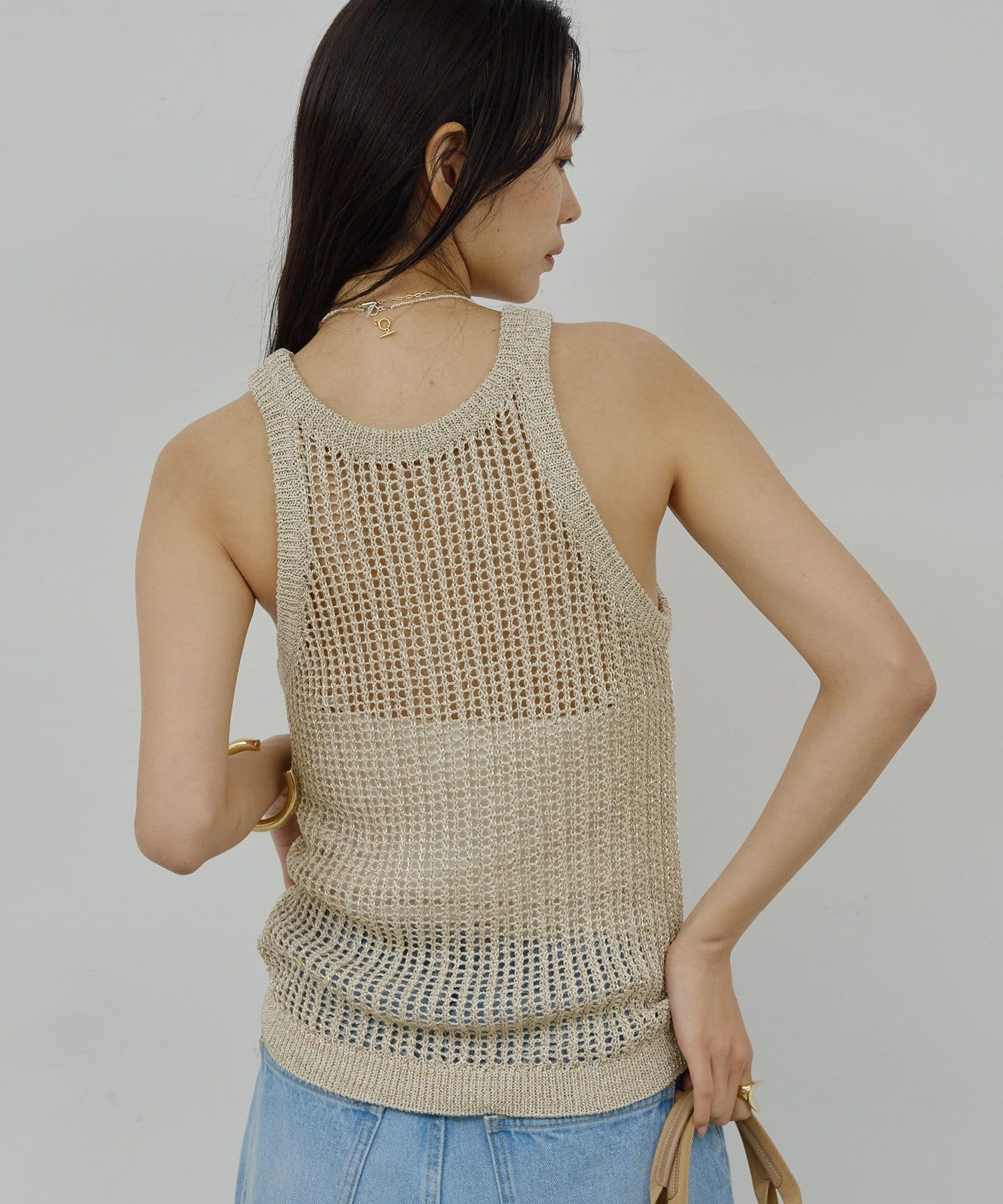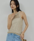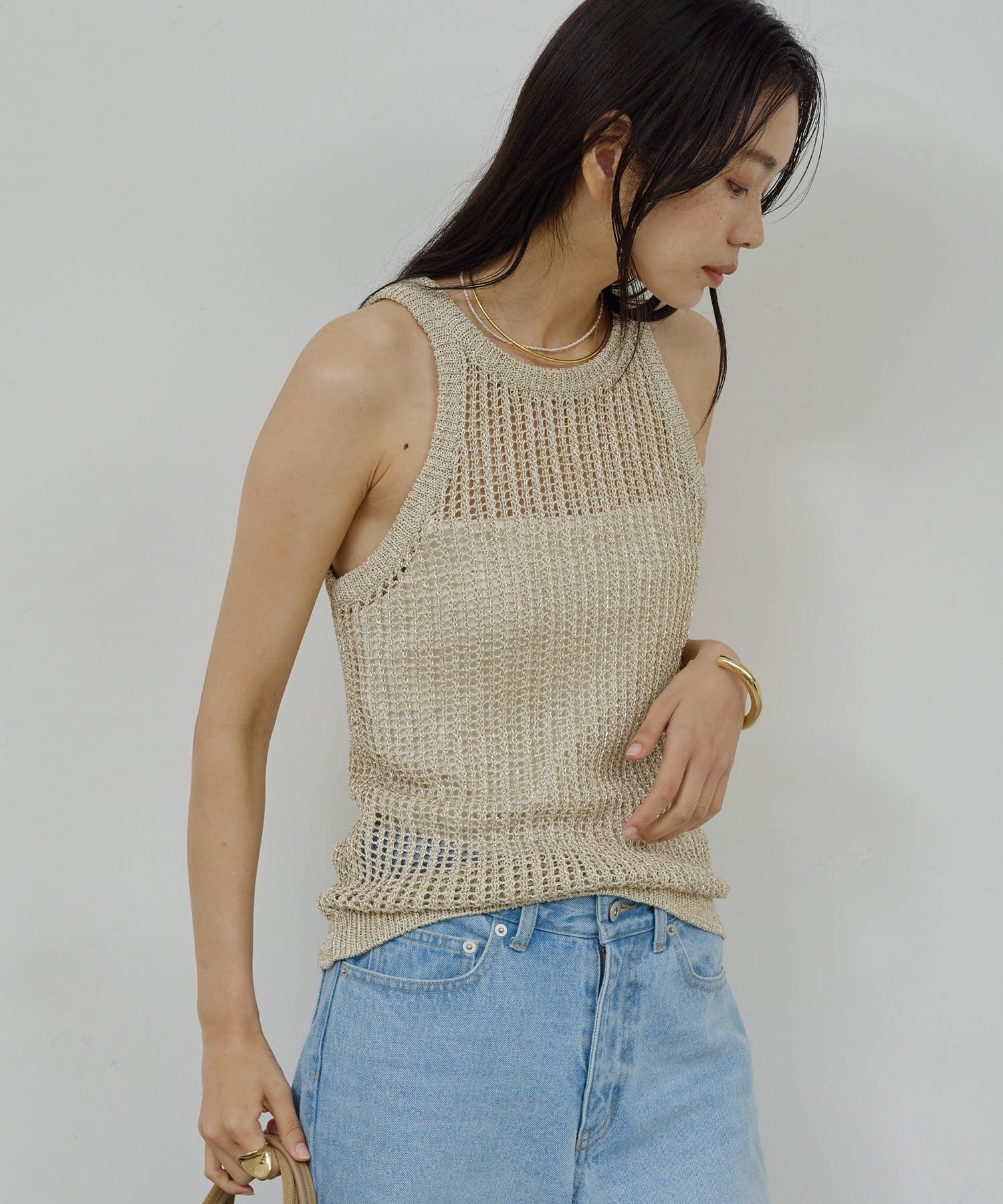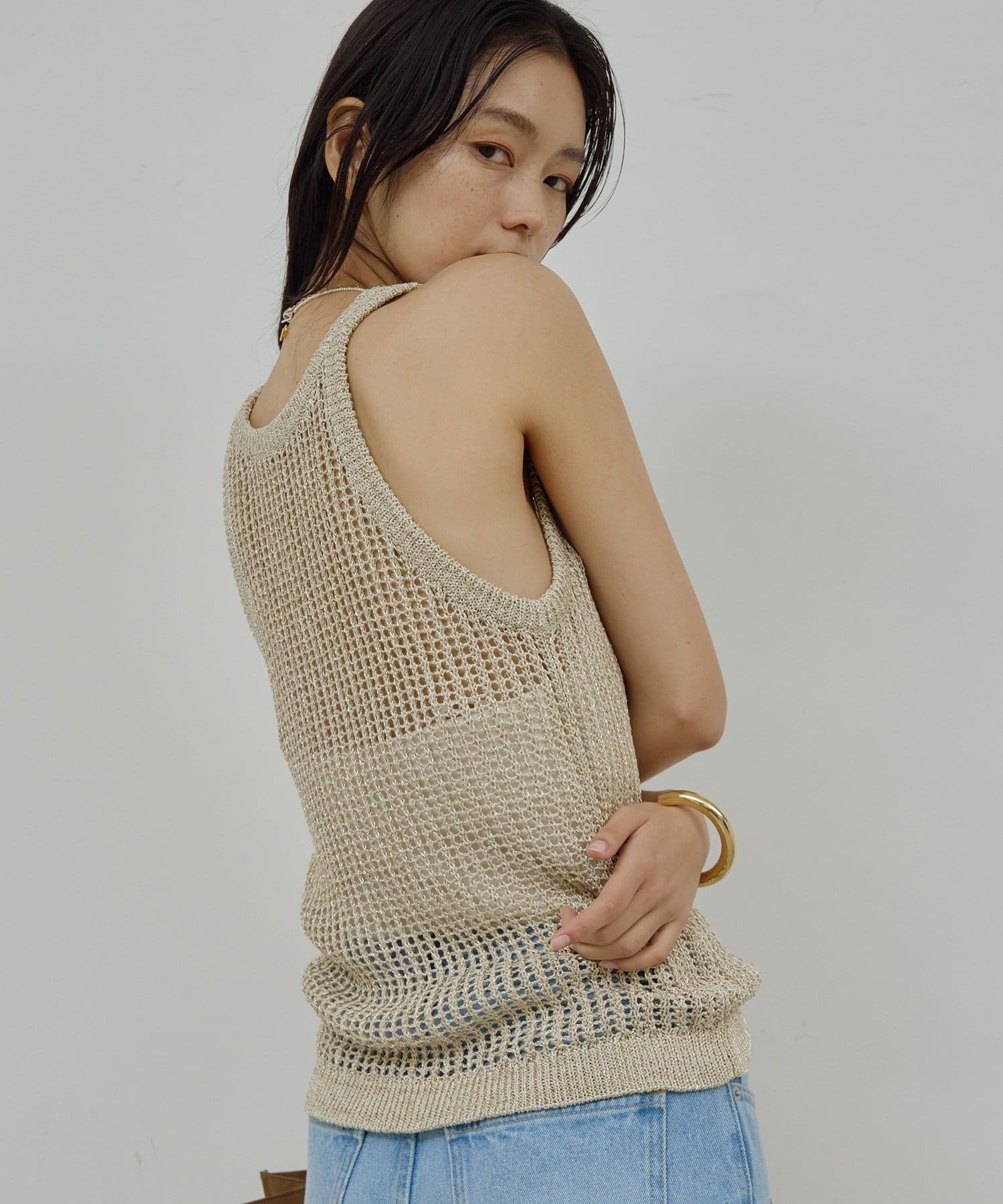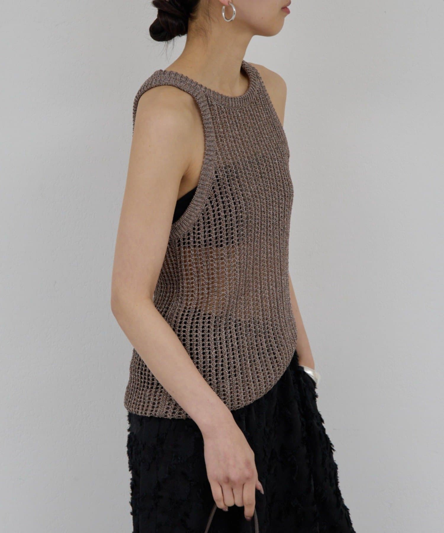 ●控えめなラメ糸の輝きが魅力のアメリカンノースリーブニット。