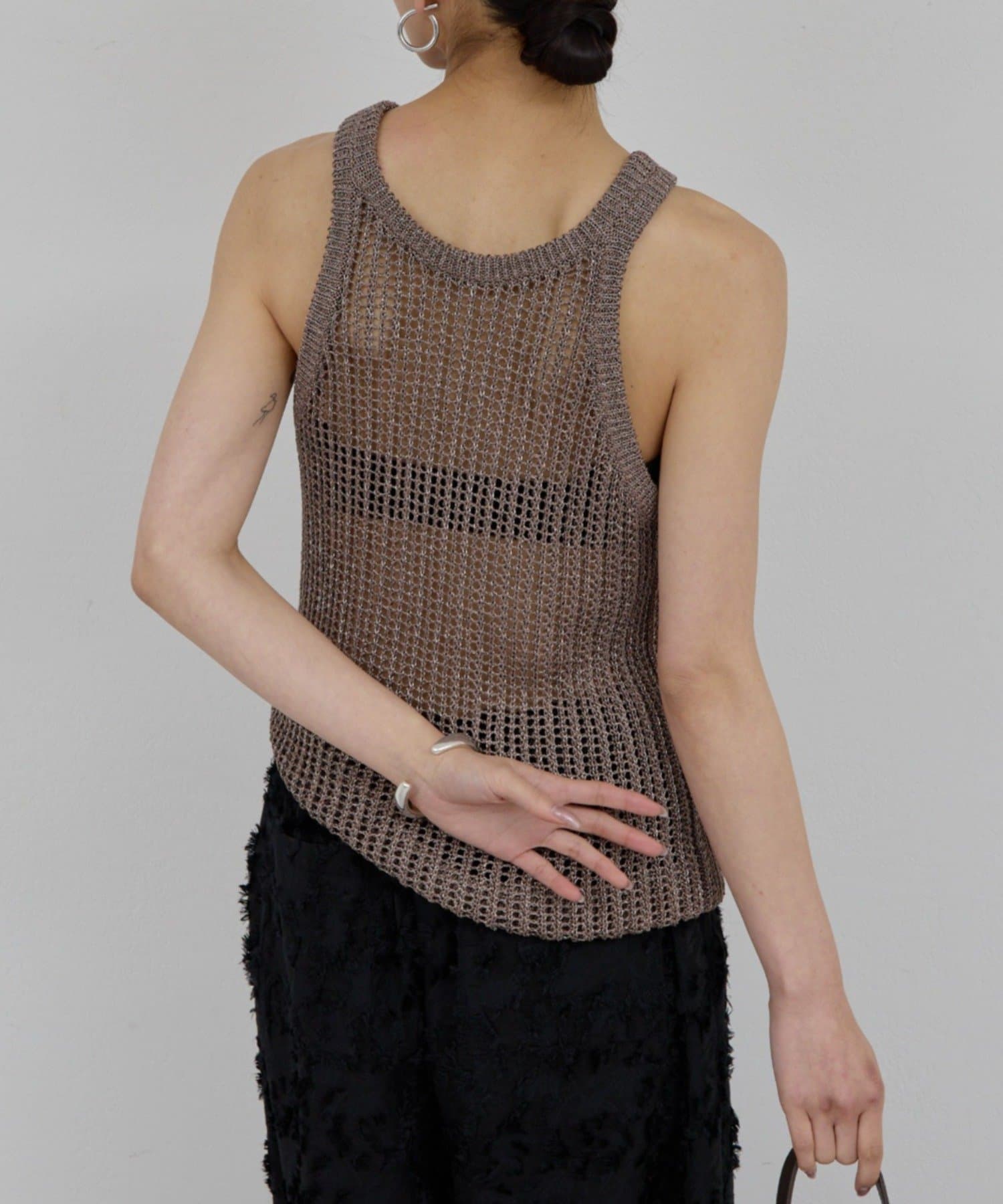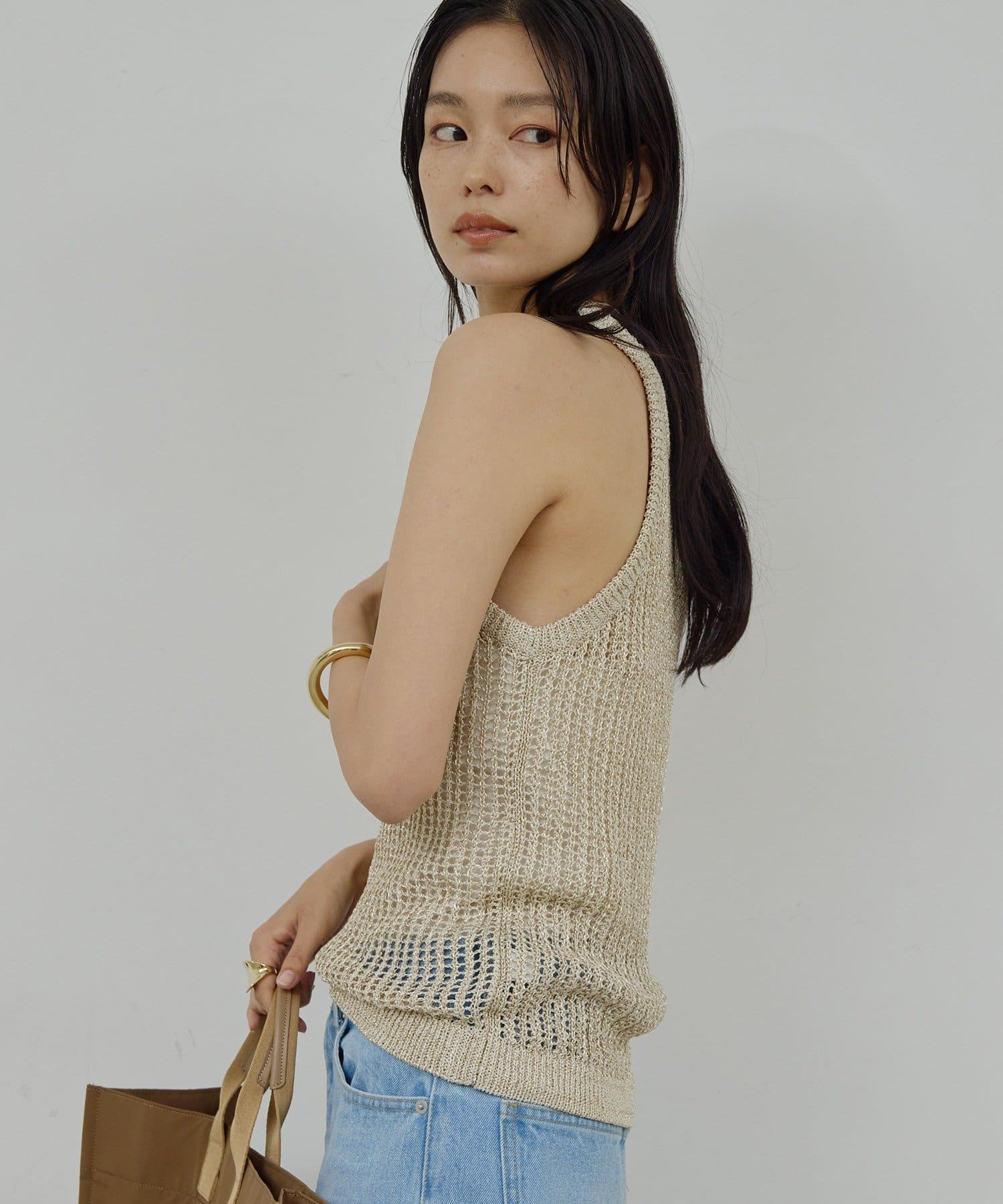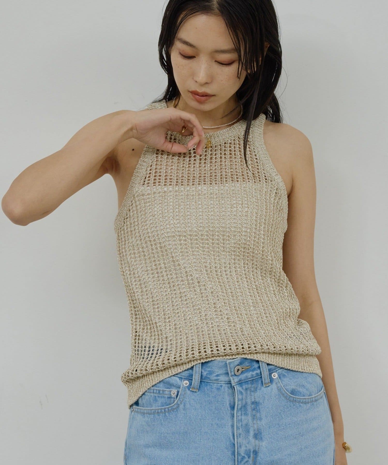 ●控えめなラメ糸の輝きが魅力のアメリカンノースリーブニット。