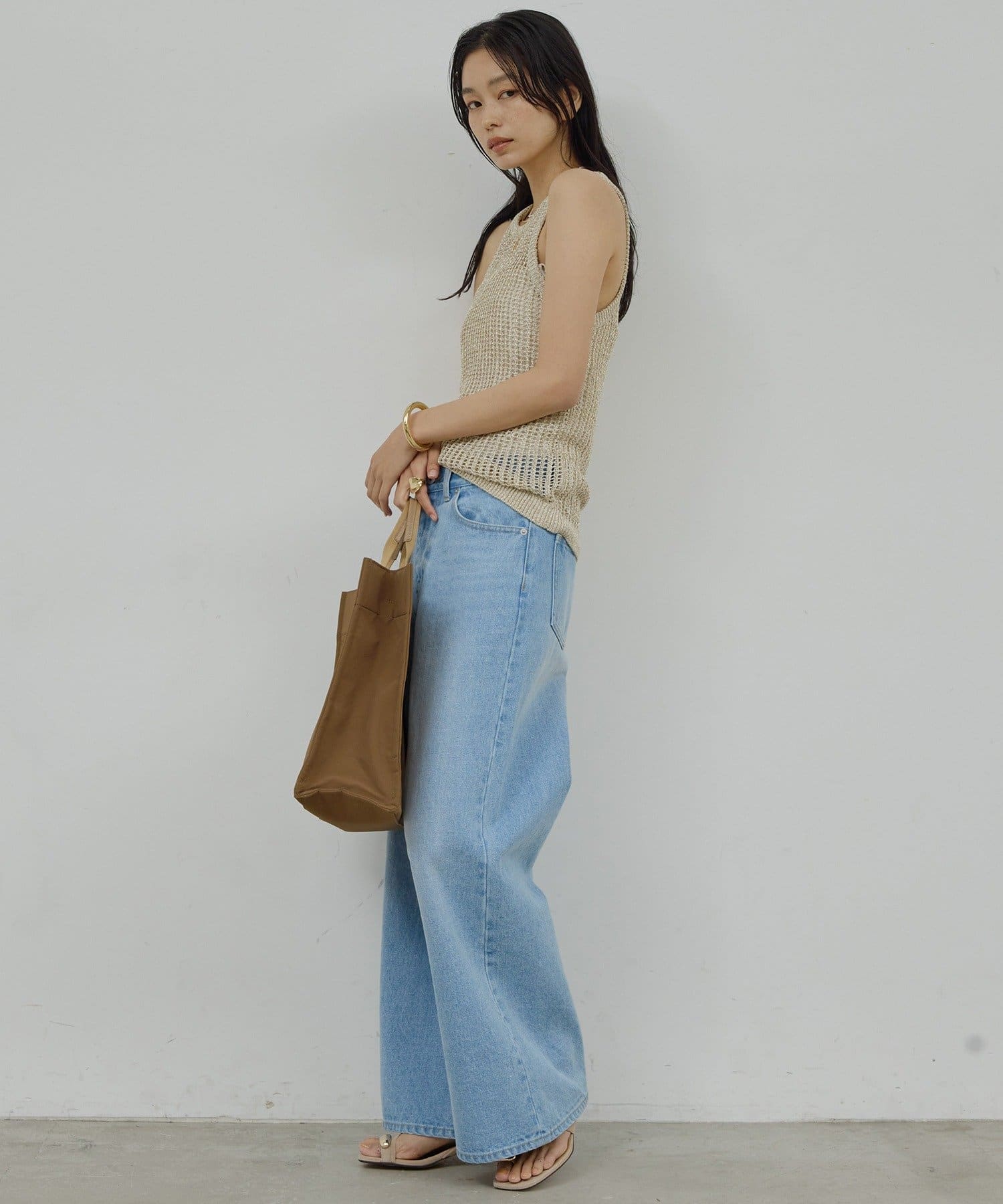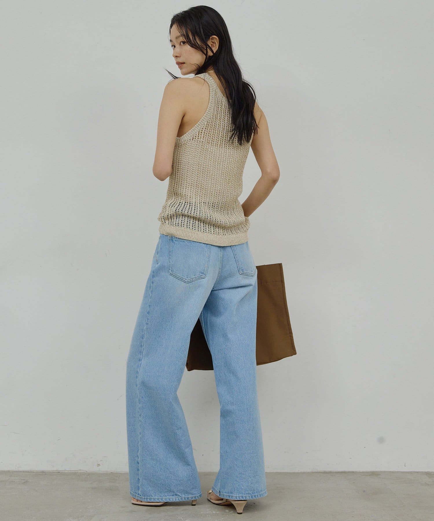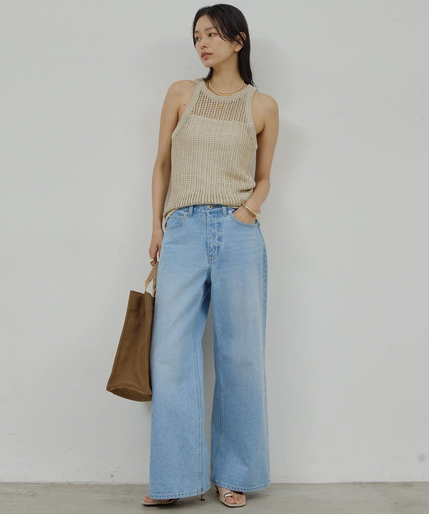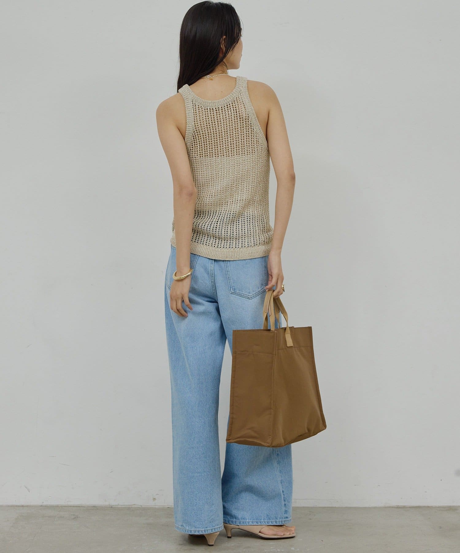 ●控えめなラメ糸の輝きが魅力のアメリカンノースリーブニット。