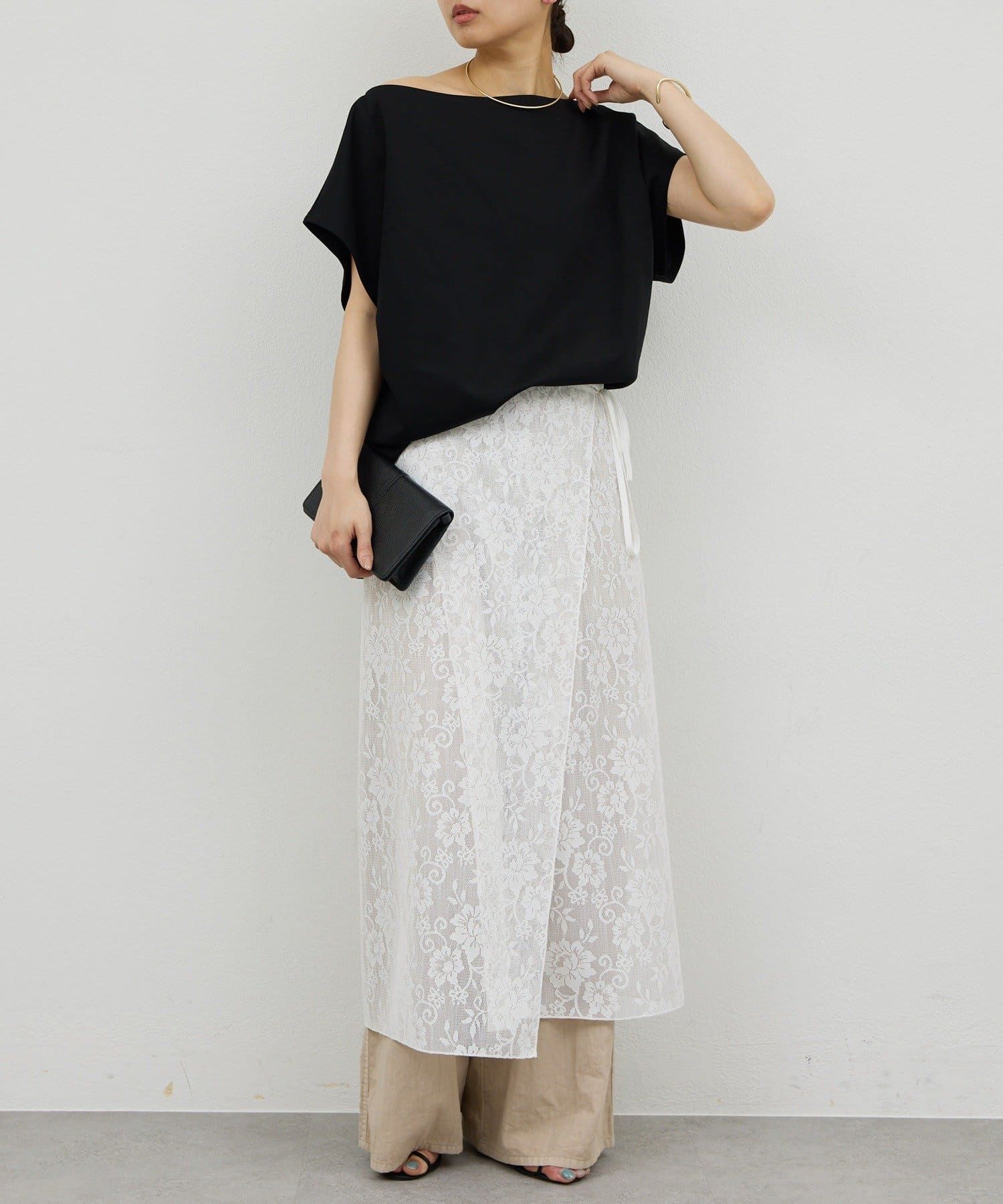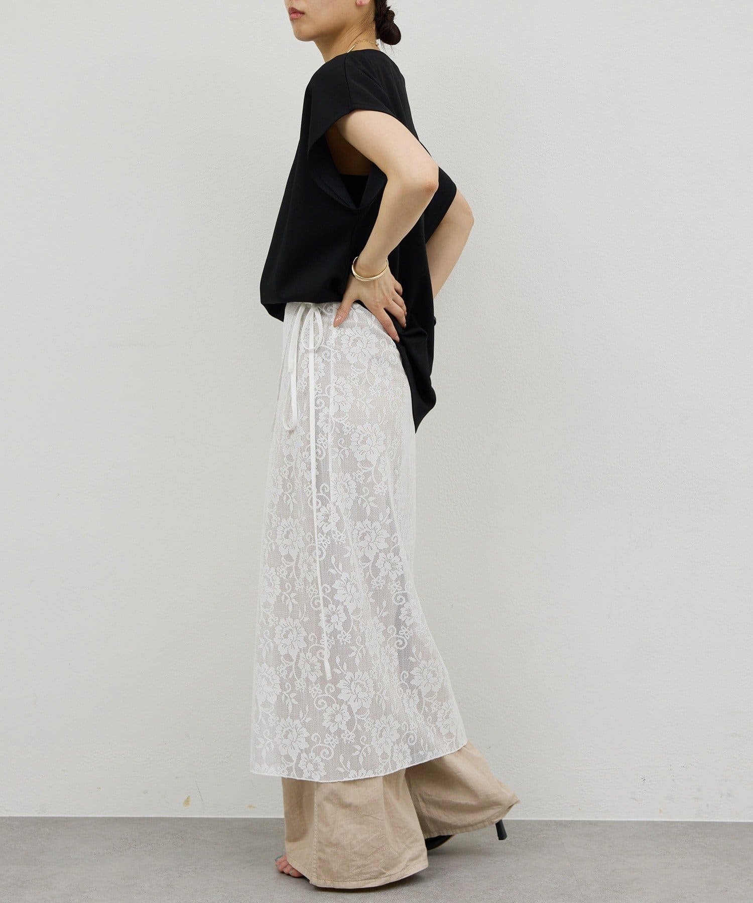 簡単レイヤードスタイルが叶う、レースラップスカート