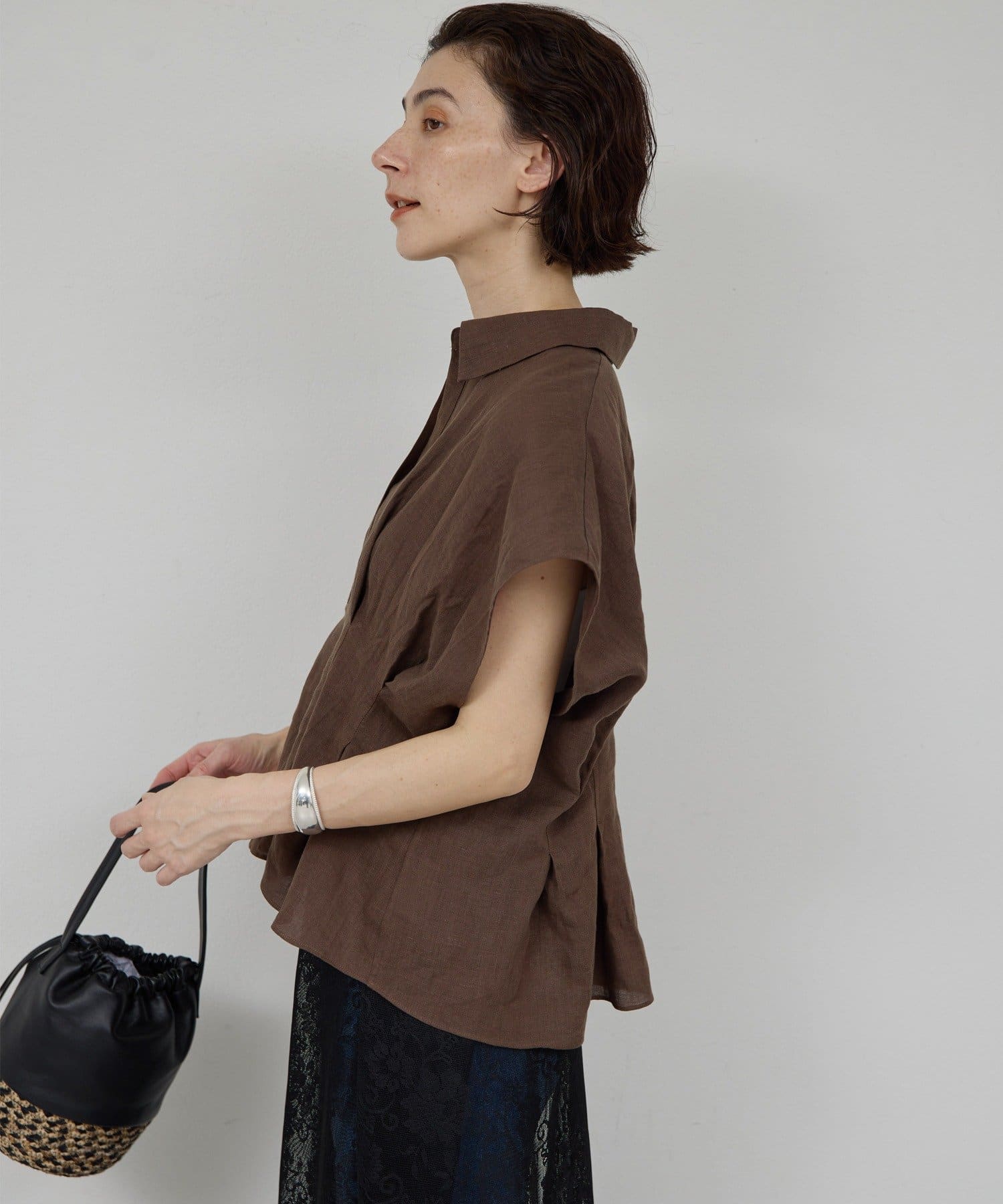 ●スキッパー仕様で顔周りをすっきりと見せる仕上がり。
