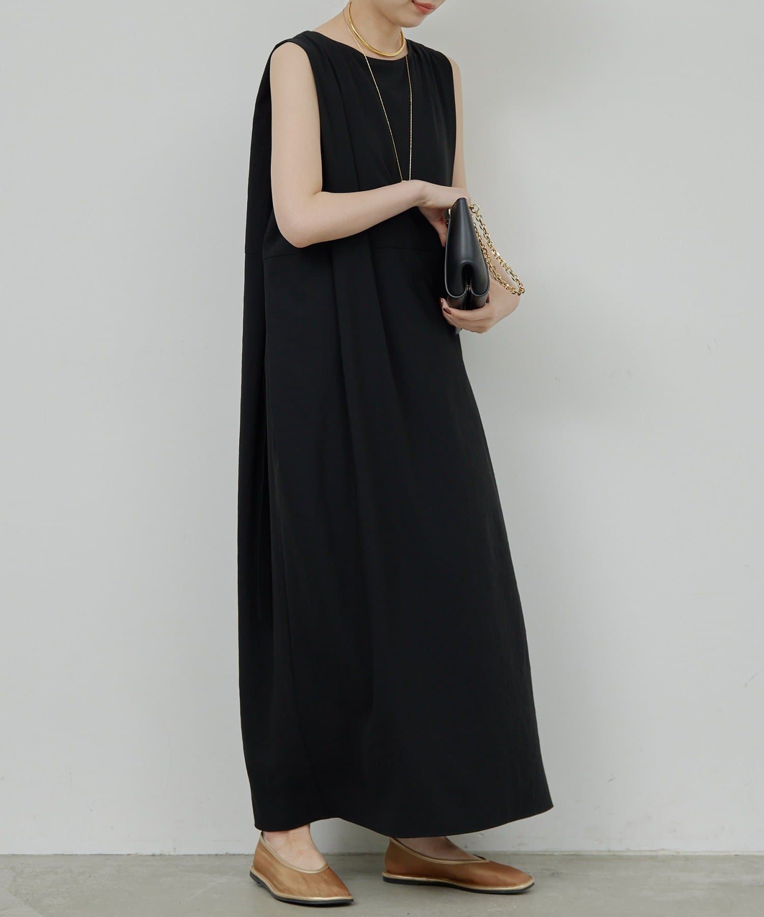 ●程よいドレープが上品な雰囲気を引き立てる一着。