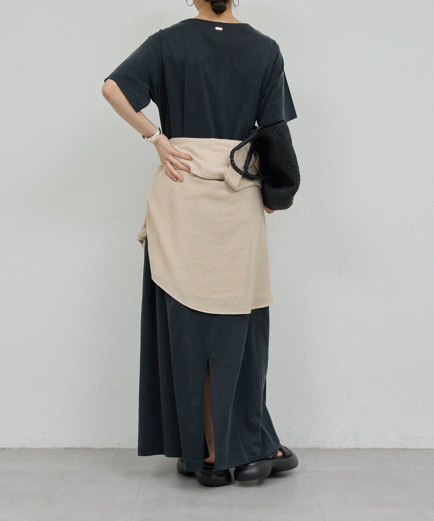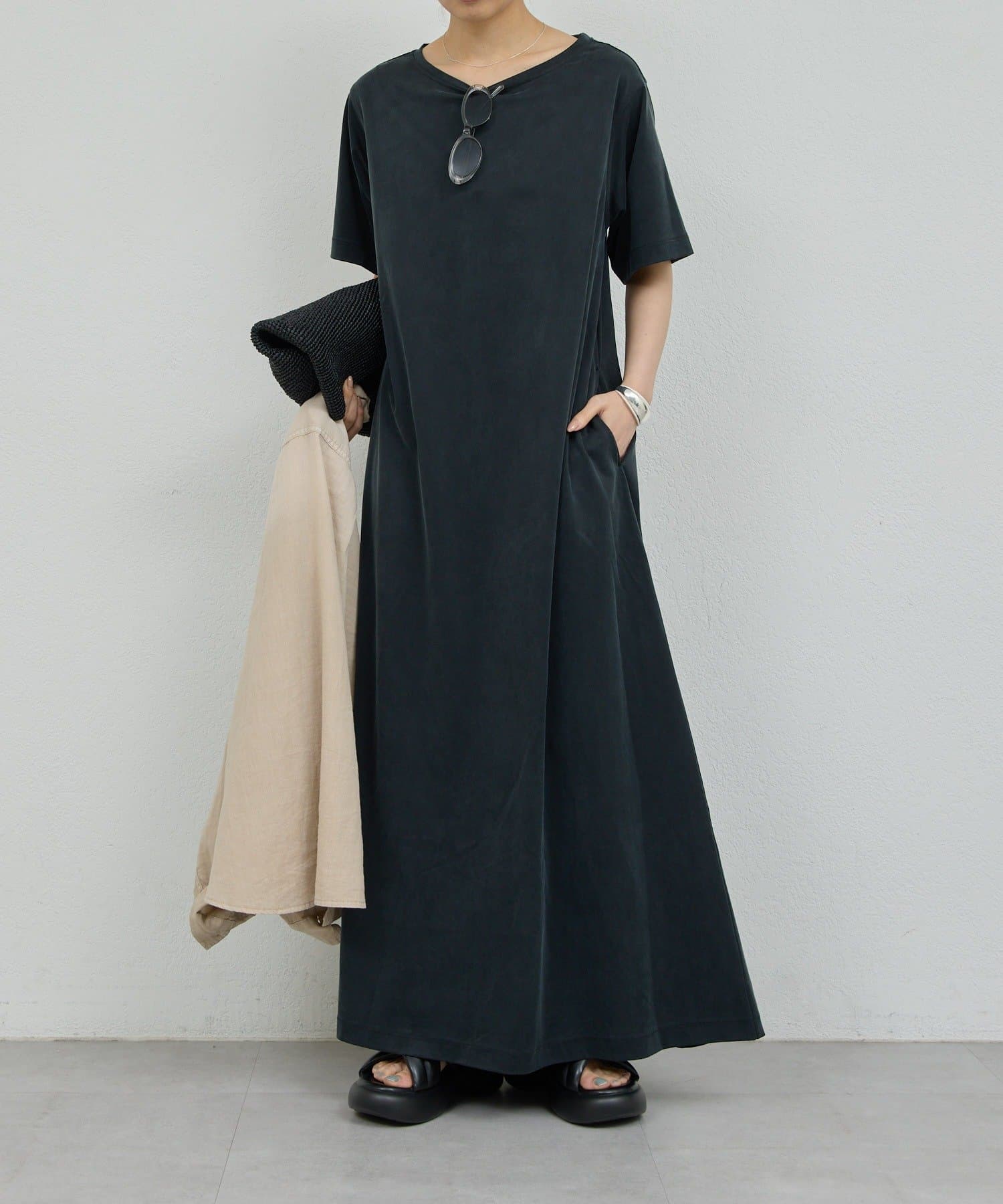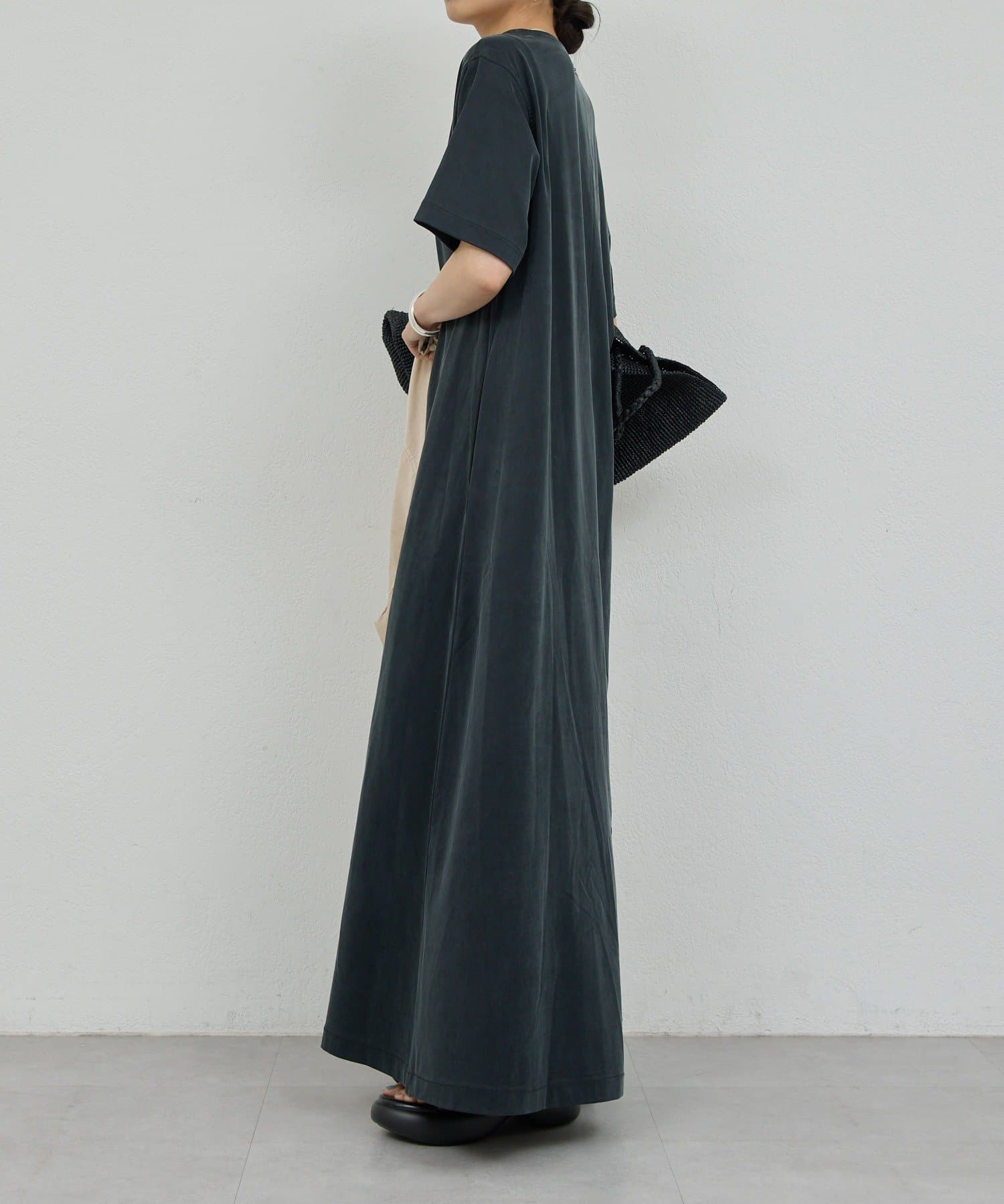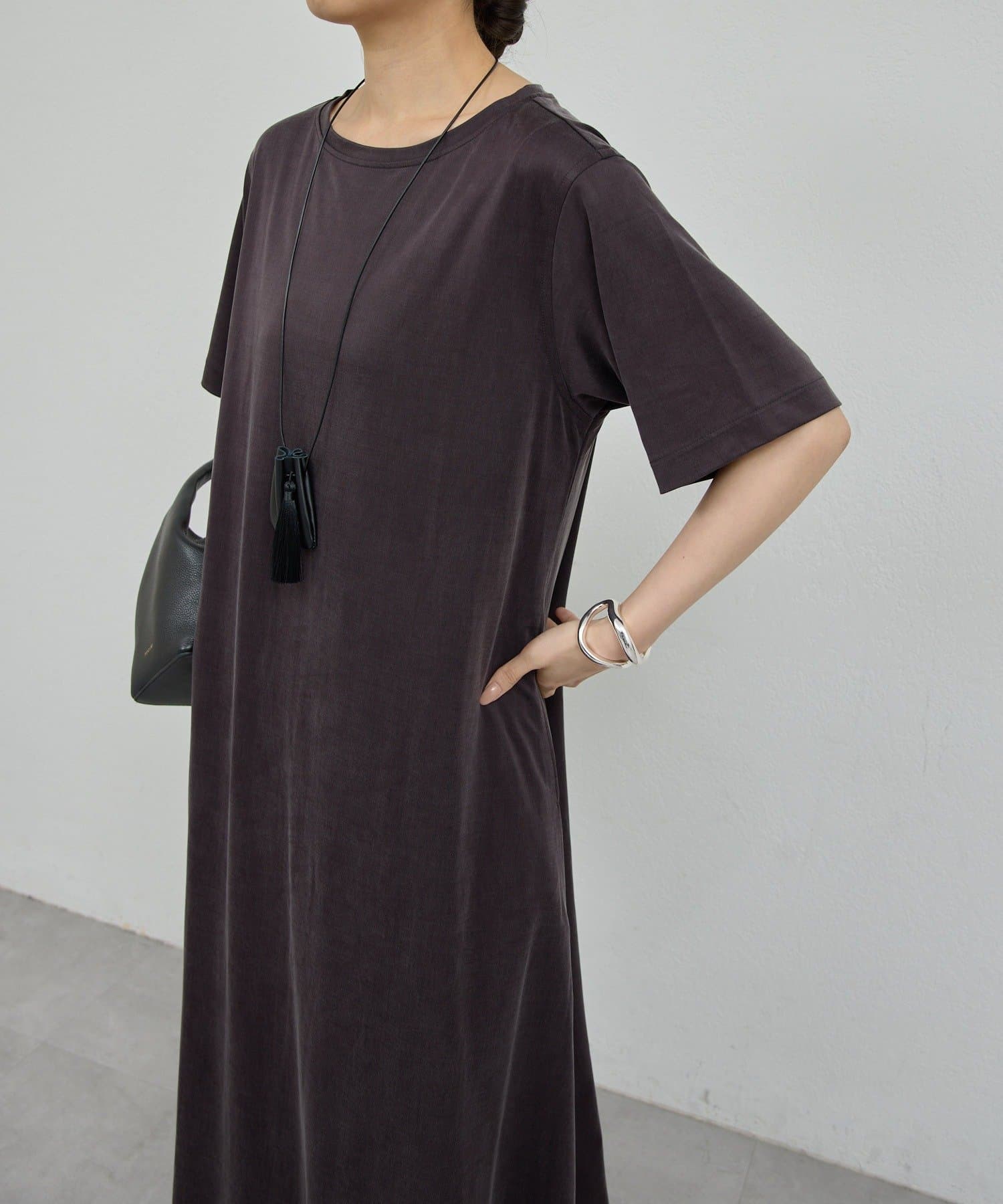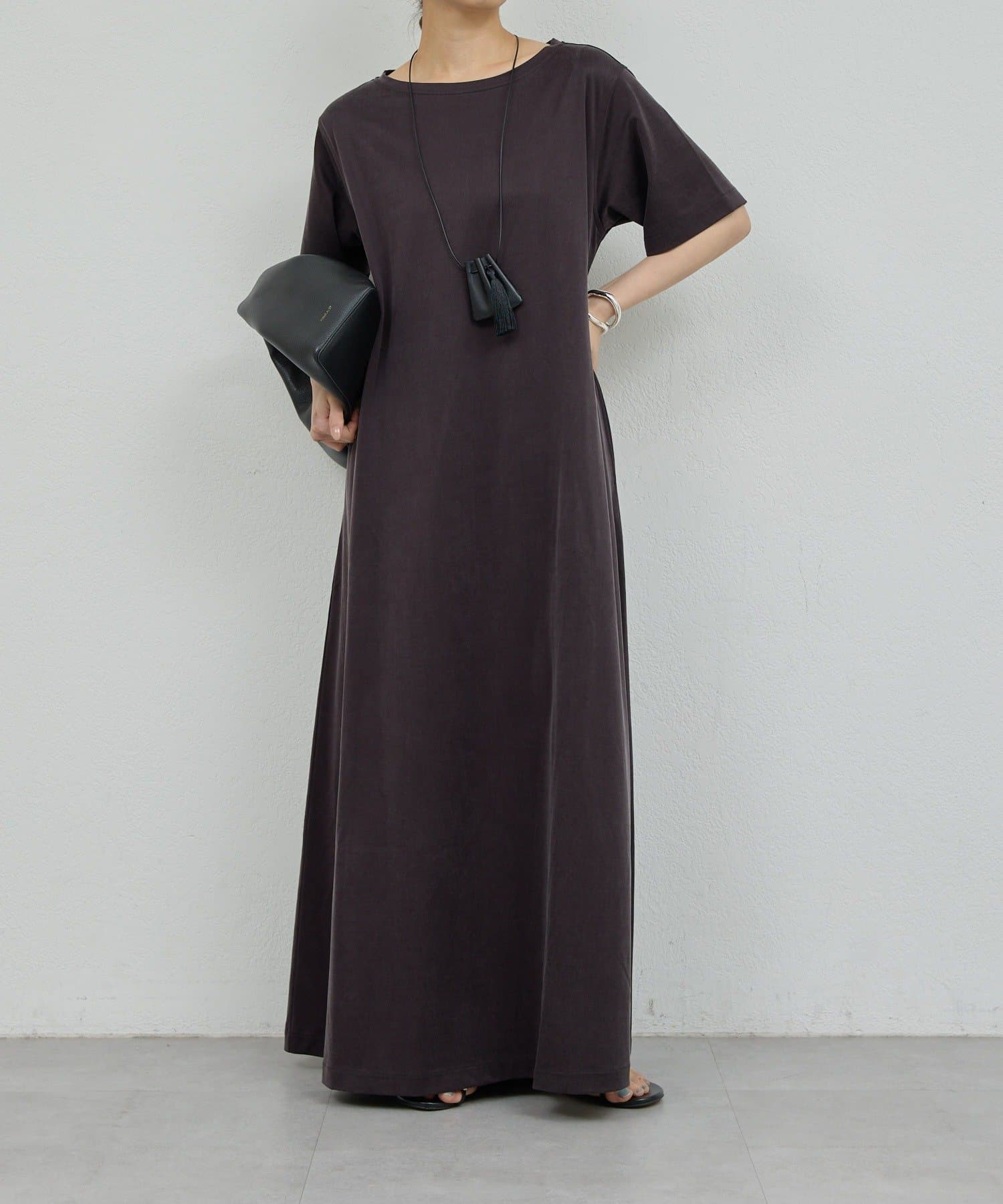 大人の雰囲気を醸し出す、ジャージーワンピ