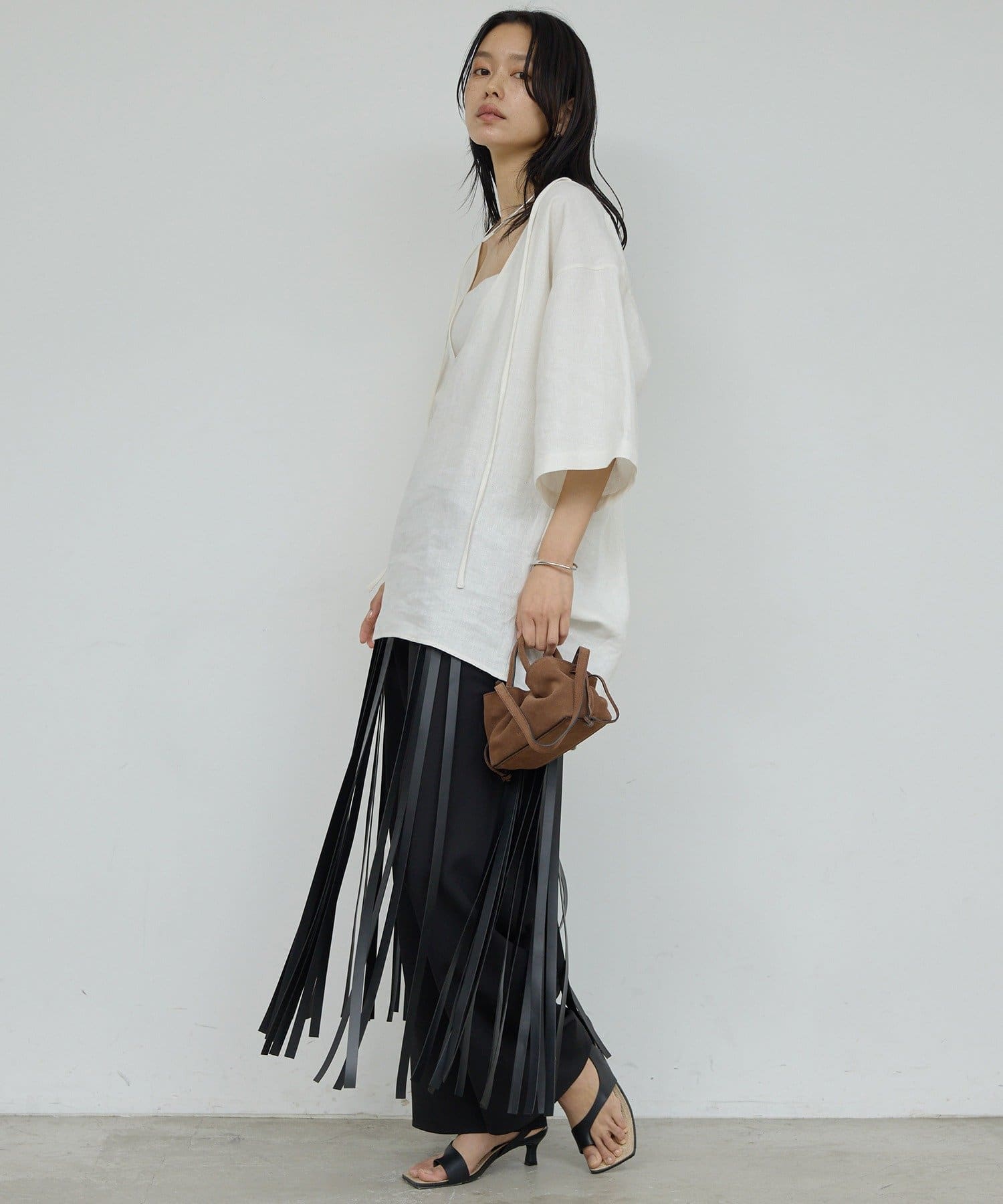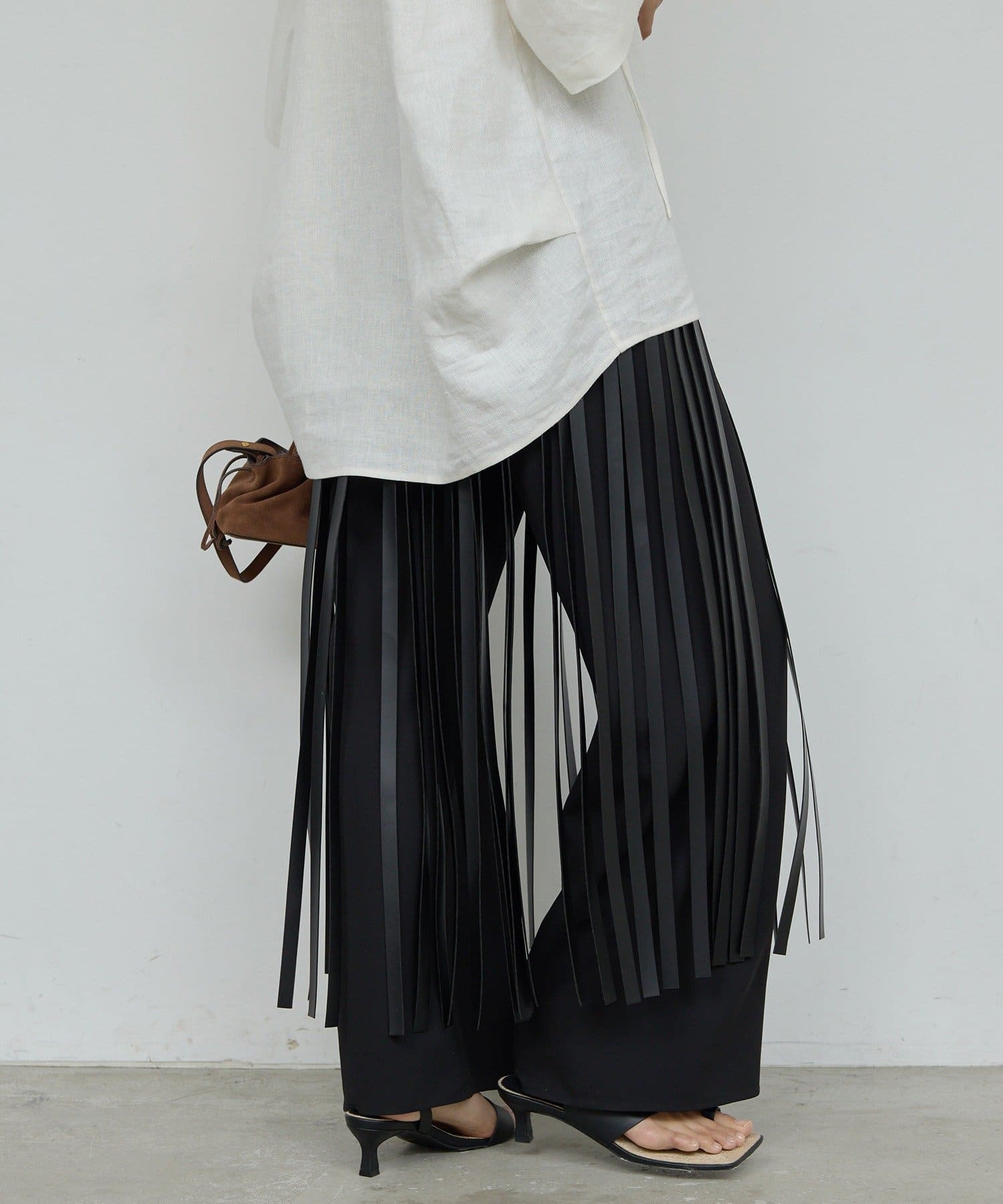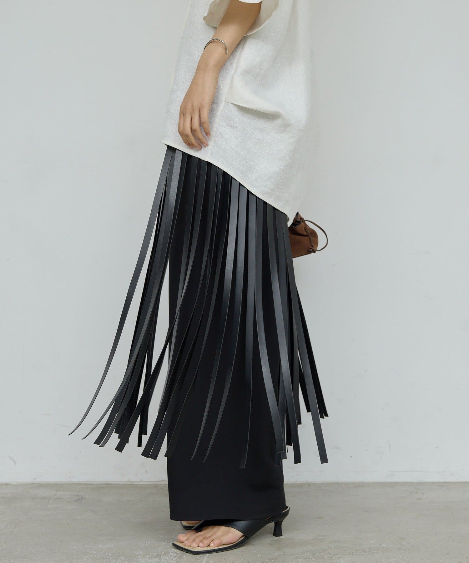 プラスワンでモードさを演出する、レザーフリンジスカート