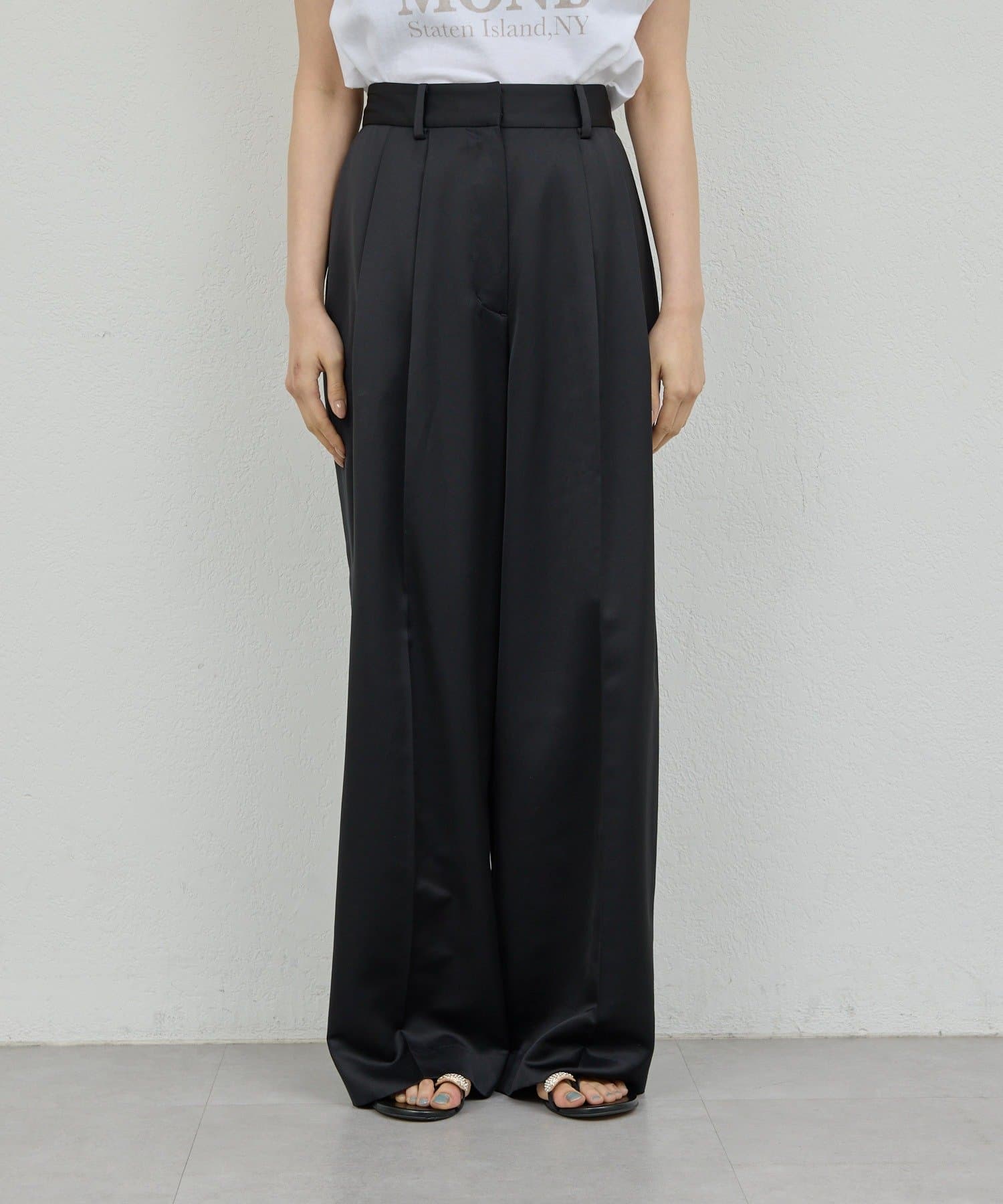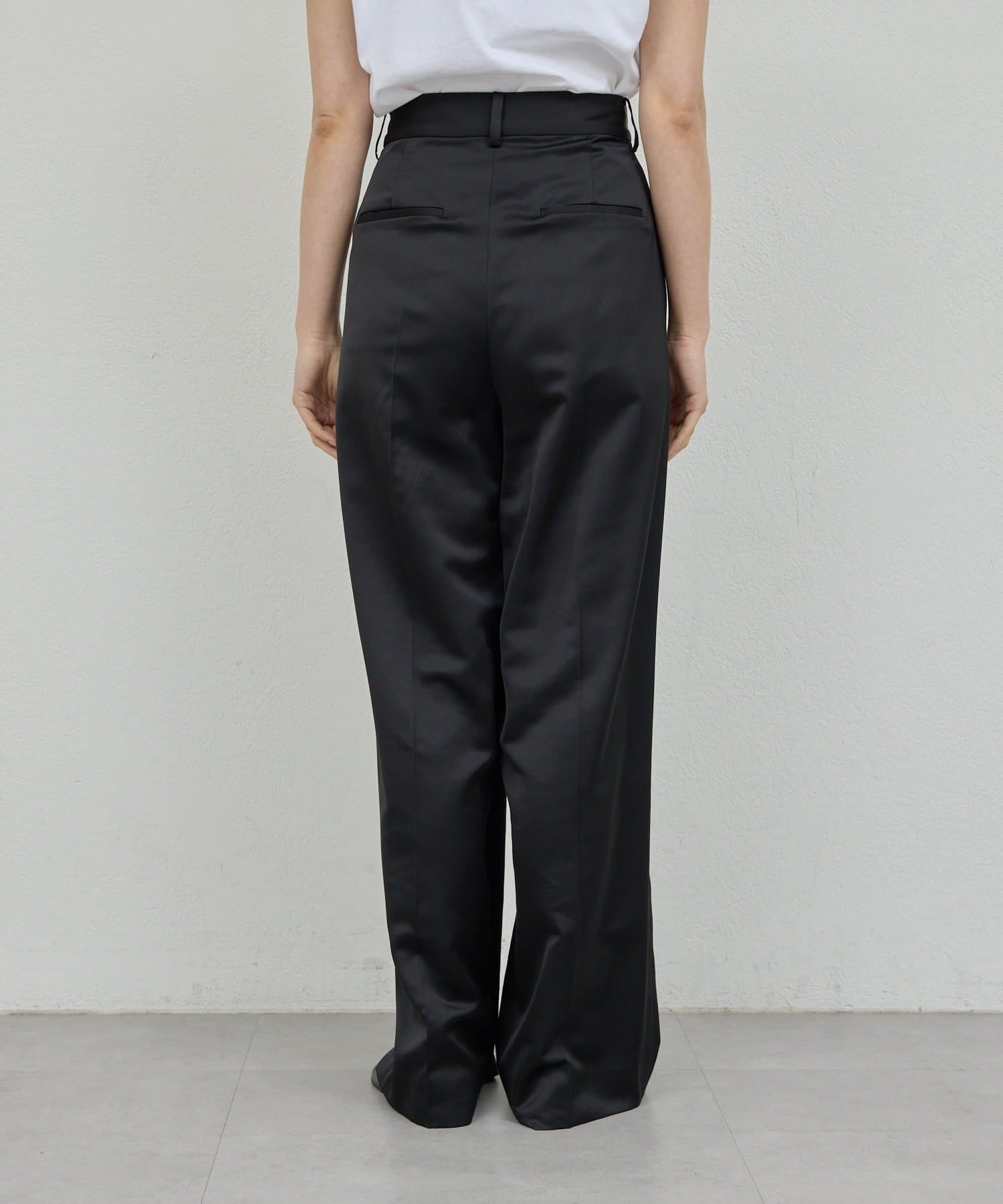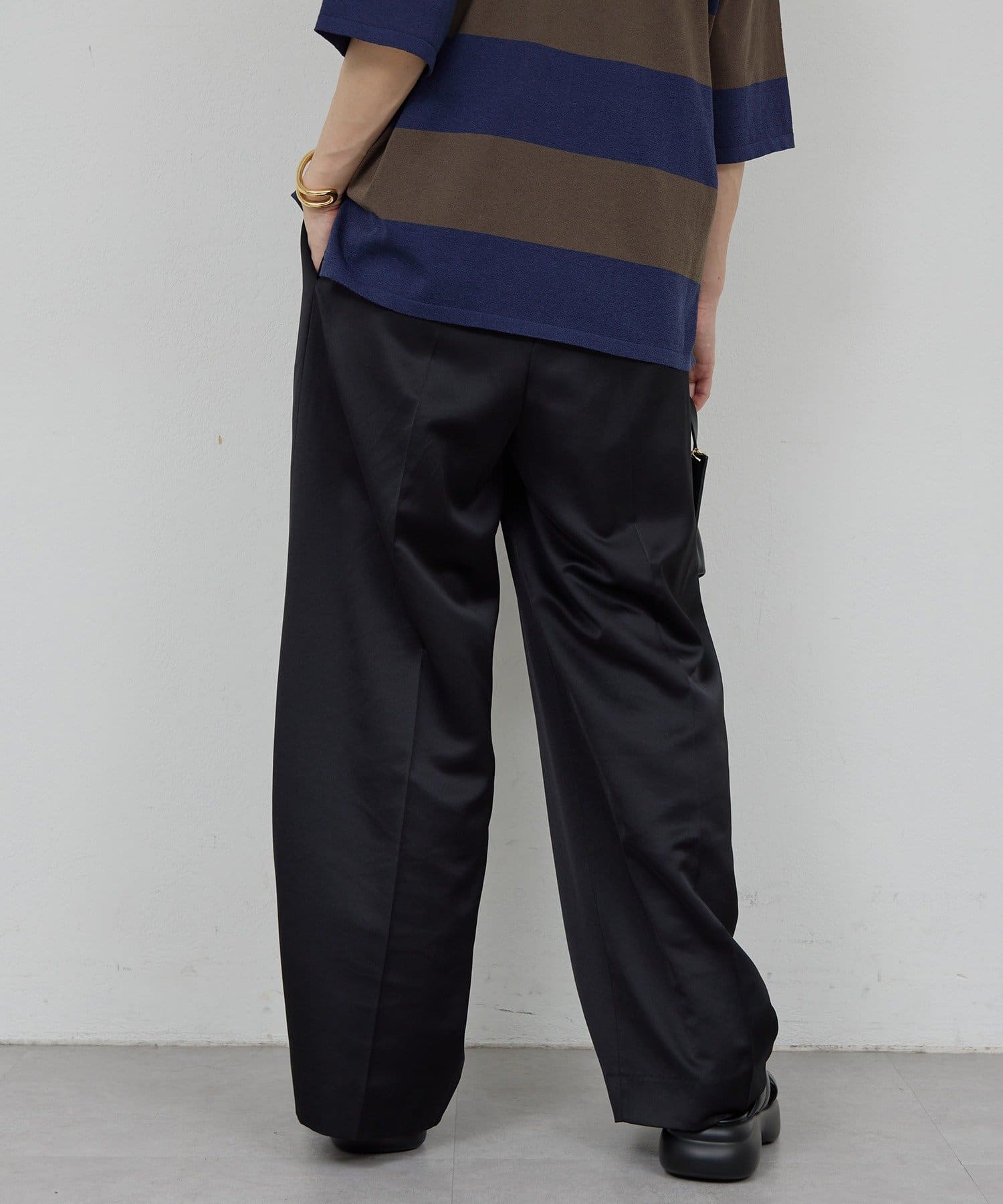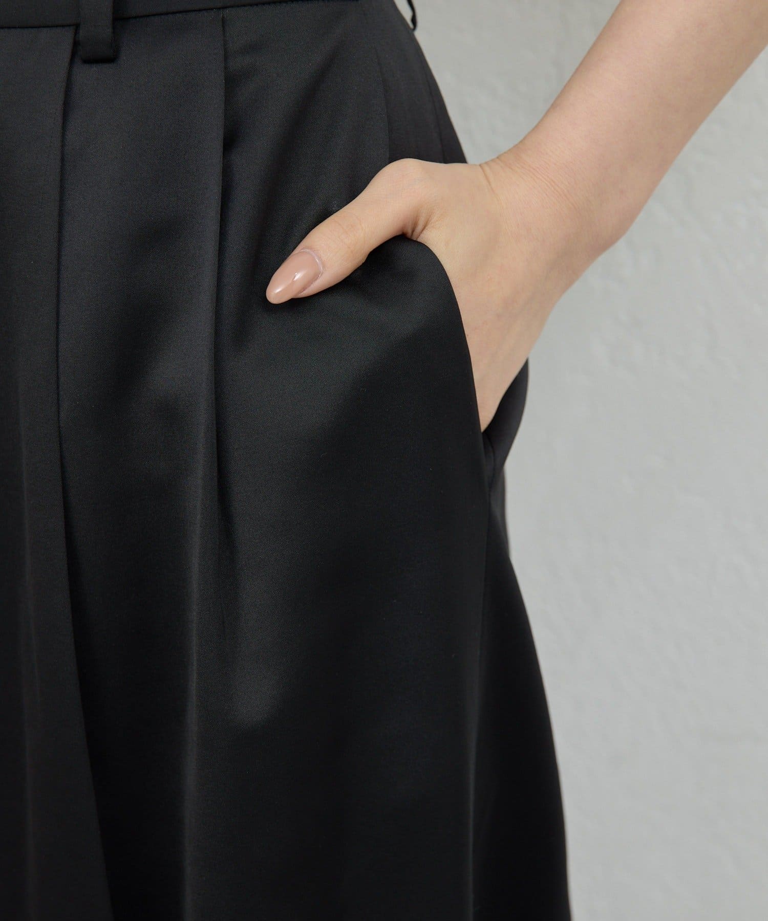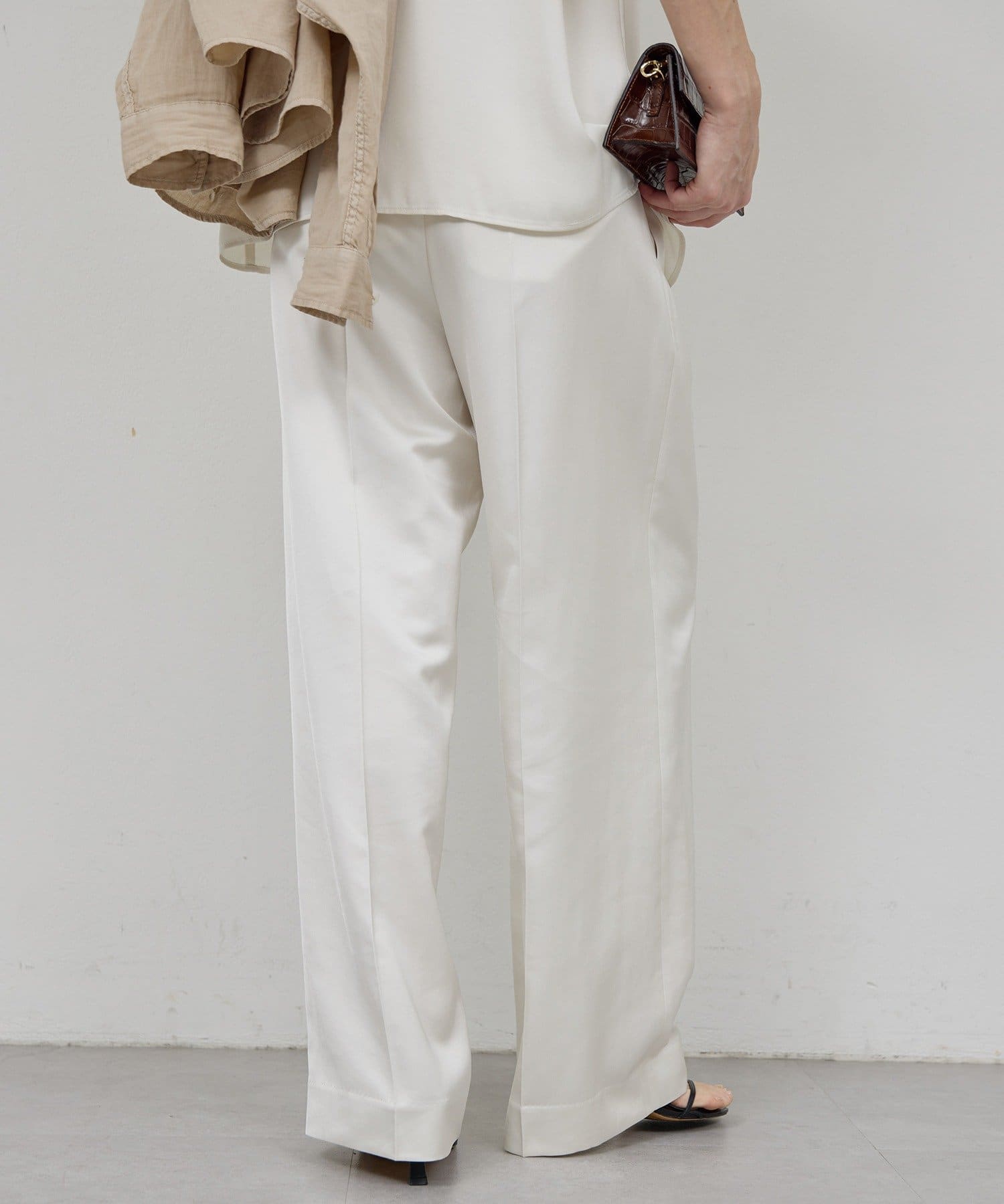 ●程よい光沢感が上品なサテンパンツ。