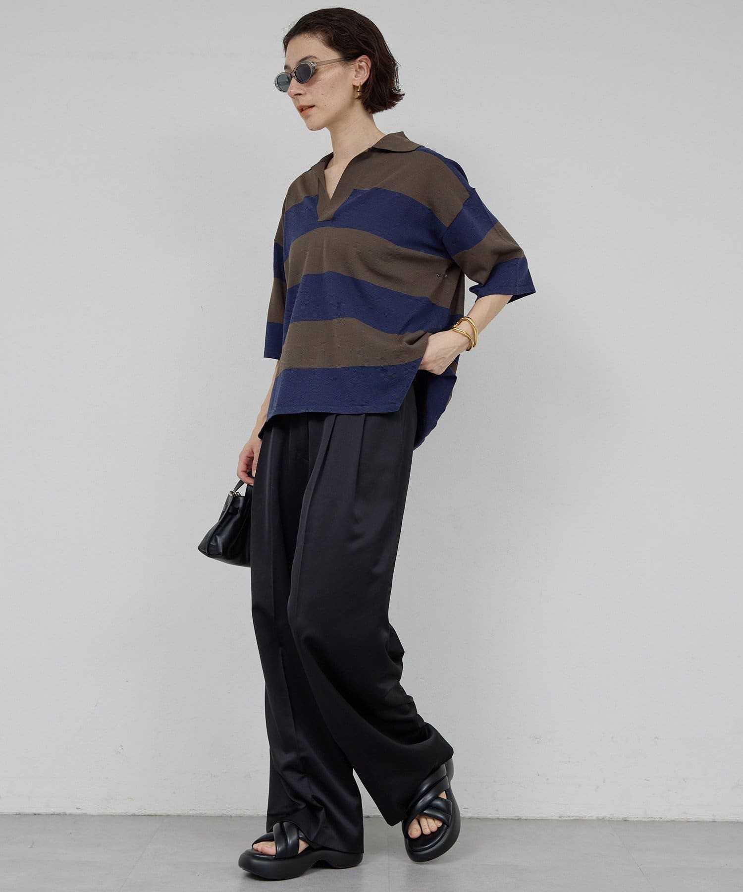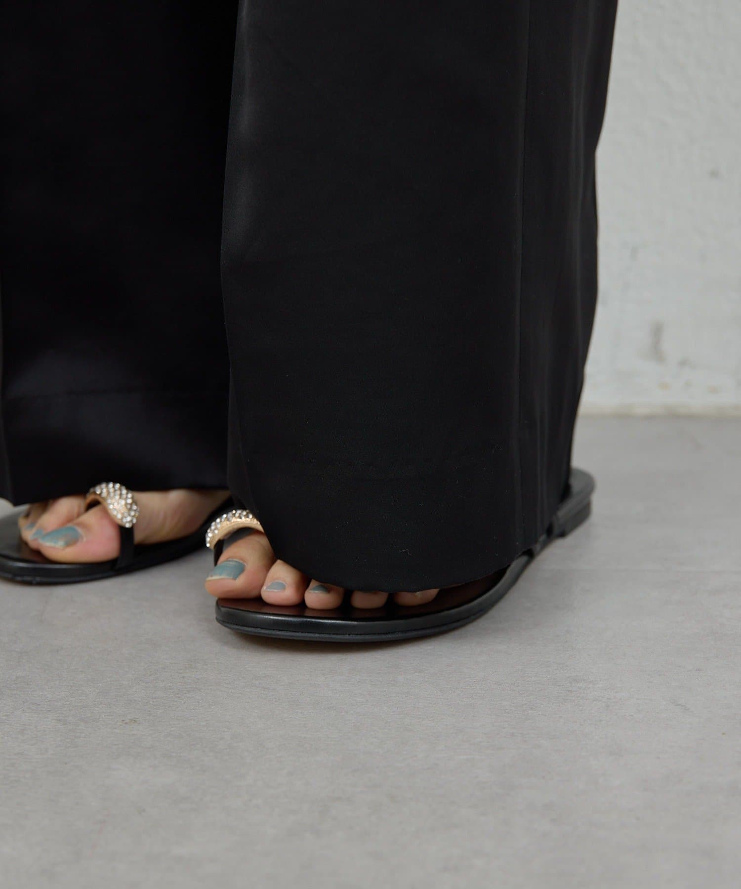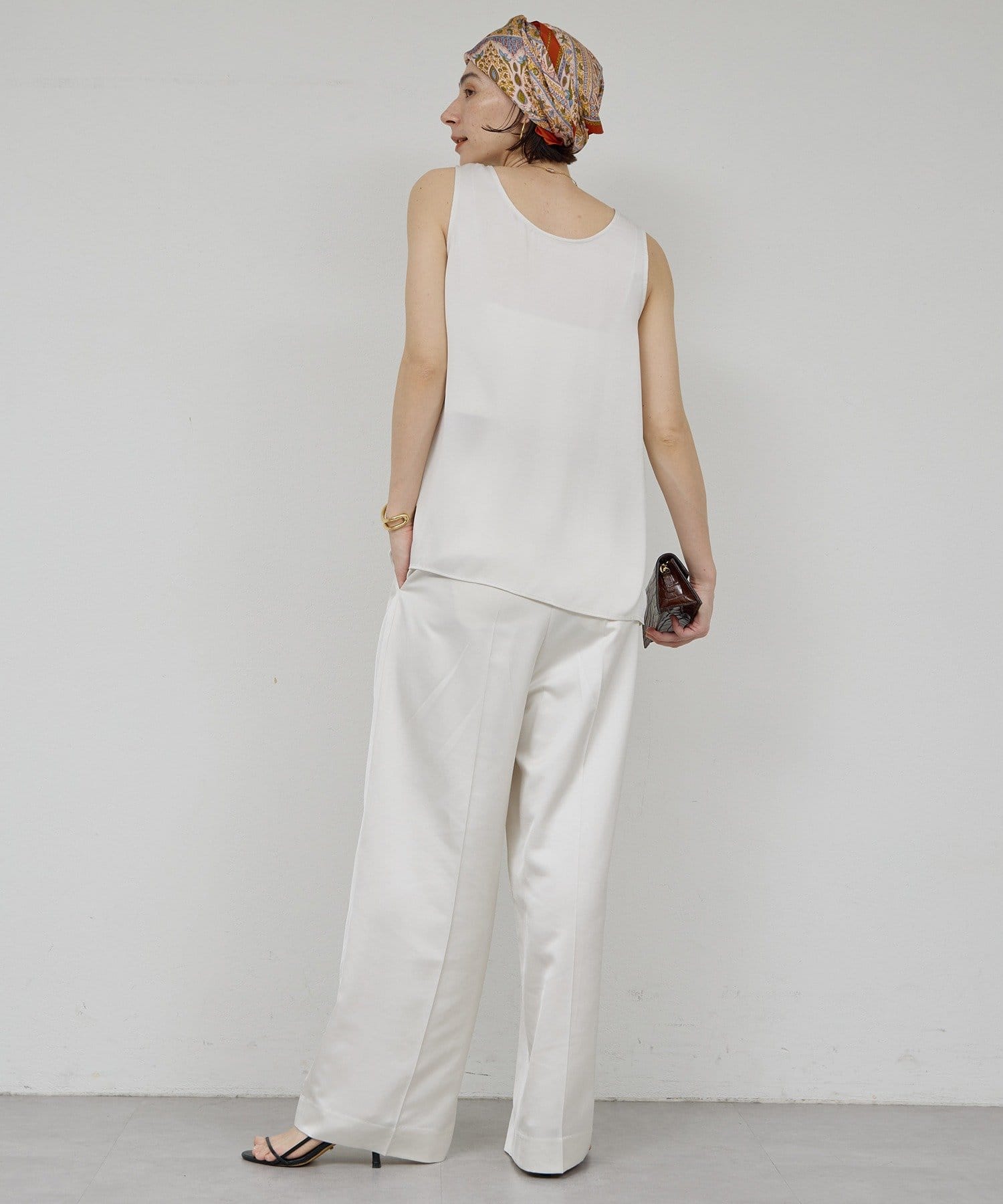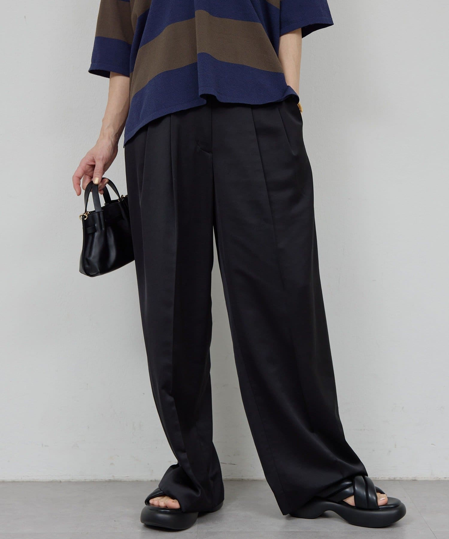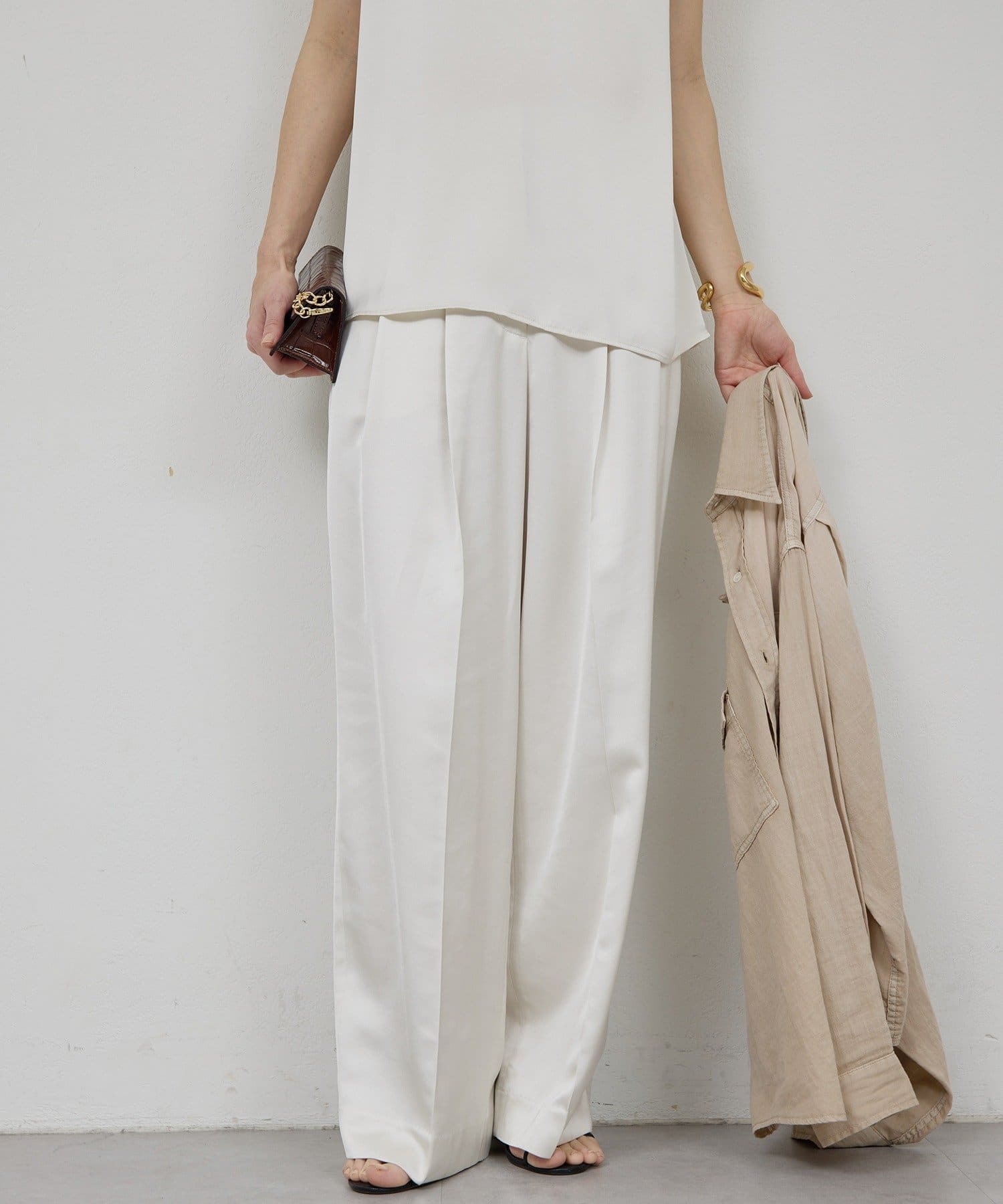 ●程よい光沢感が上品なサテンパンツ。
