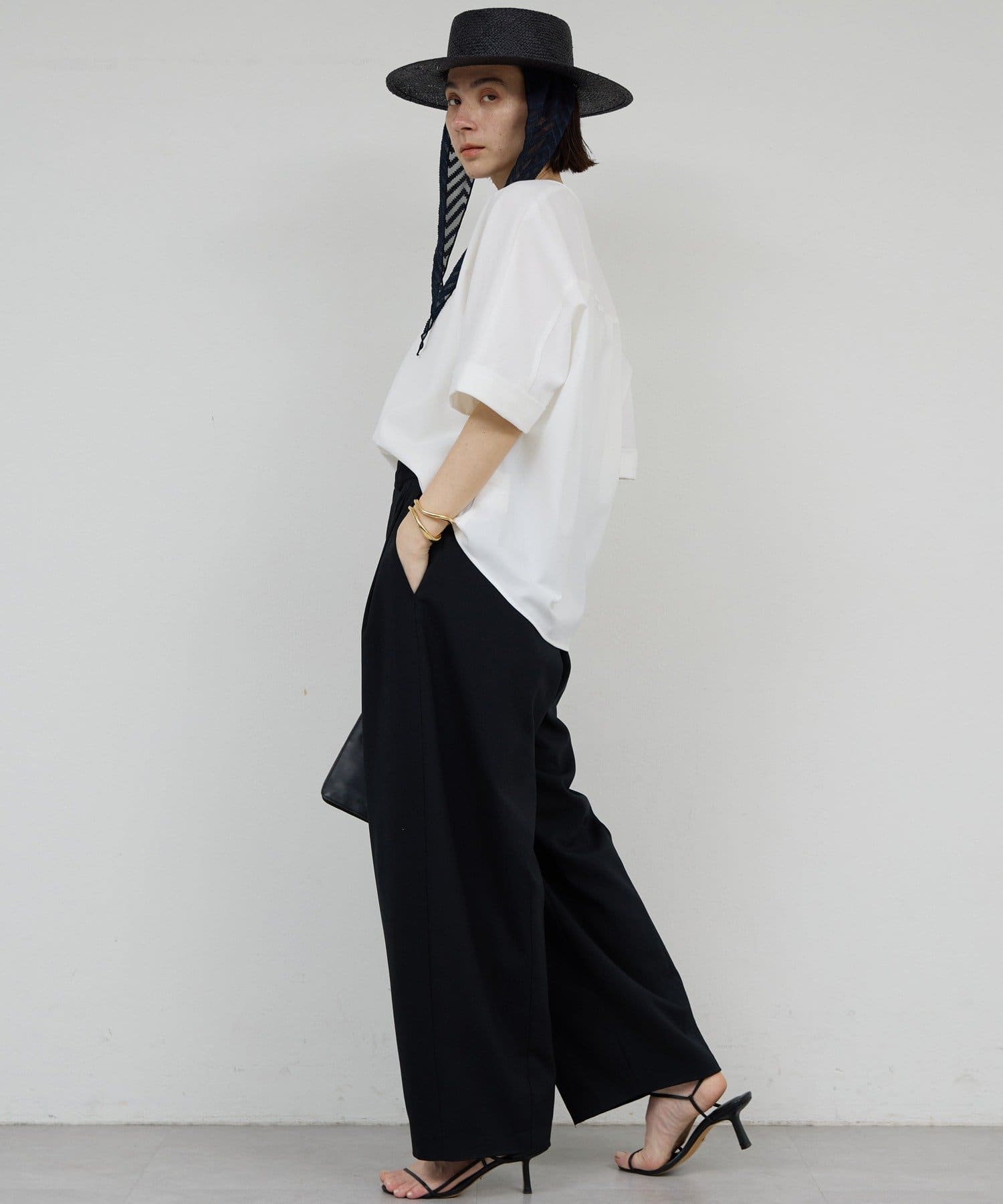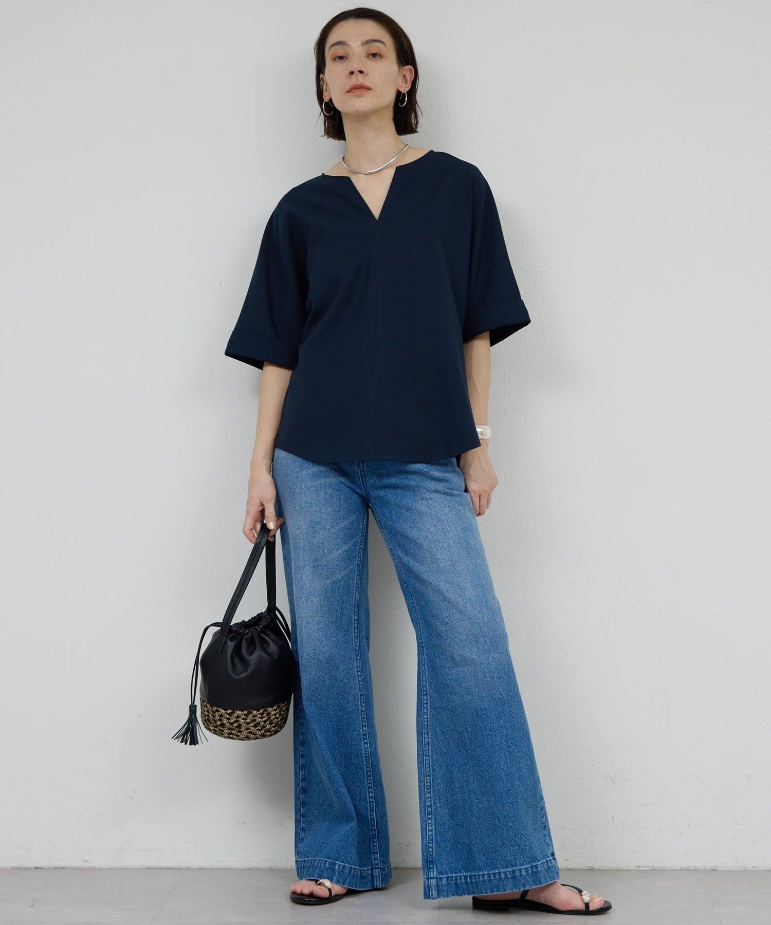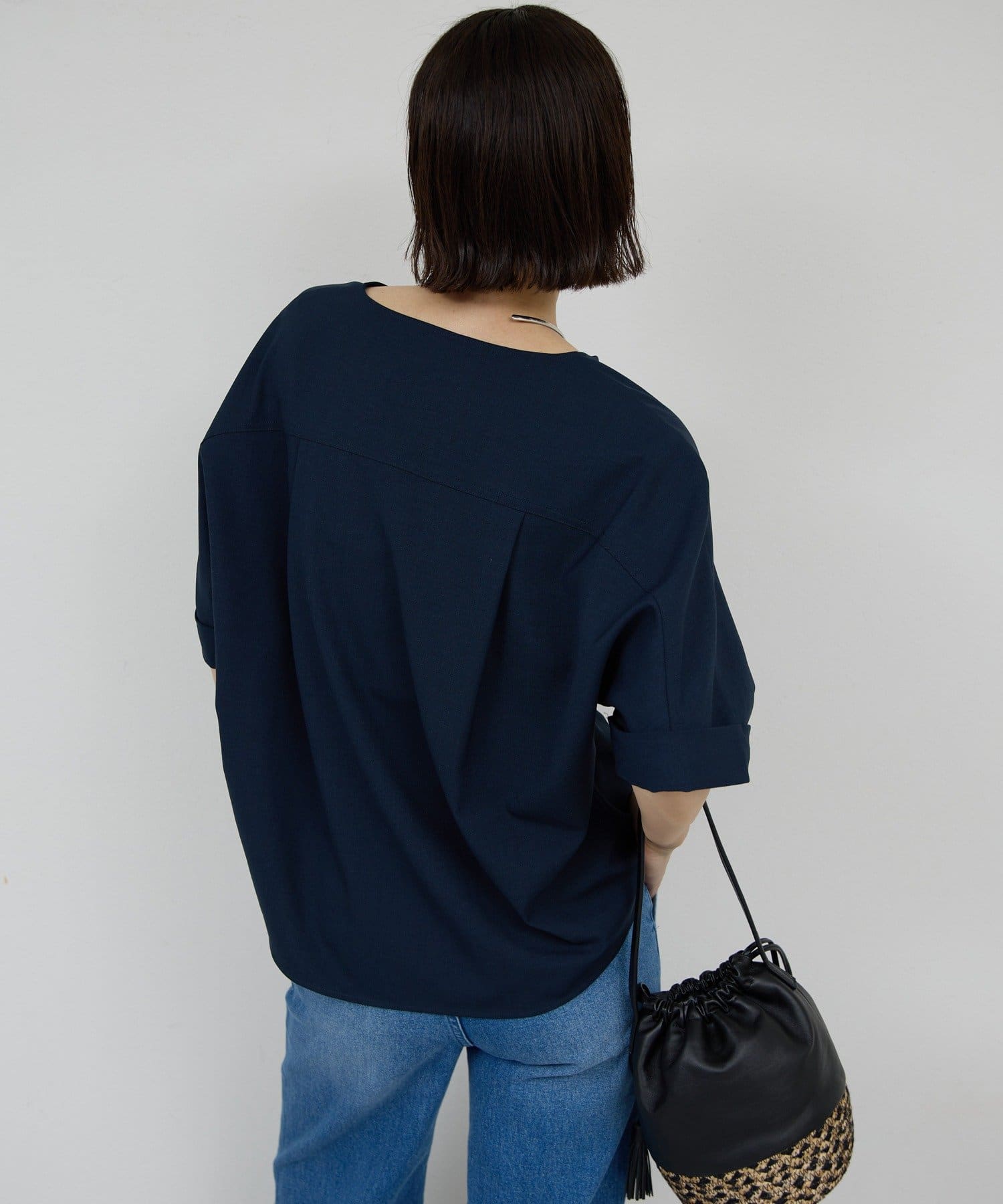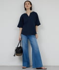 model:168cm 顔まわりがシャープに見えるスキッパーデザイン